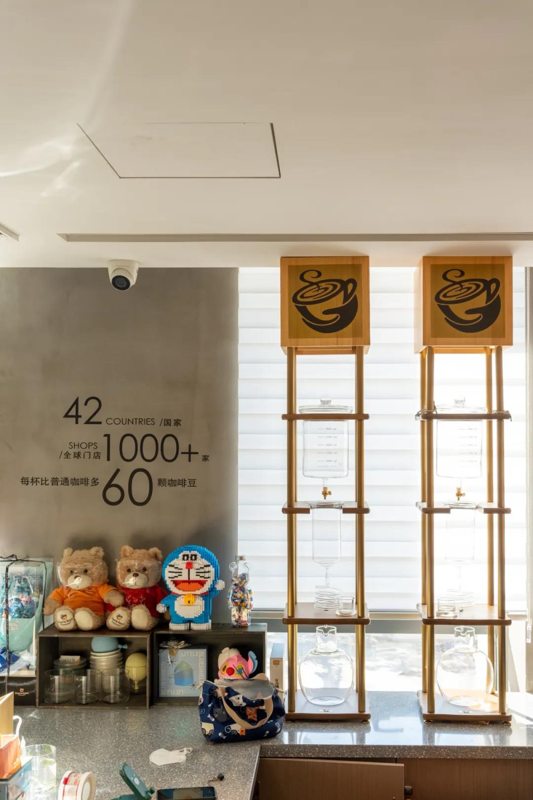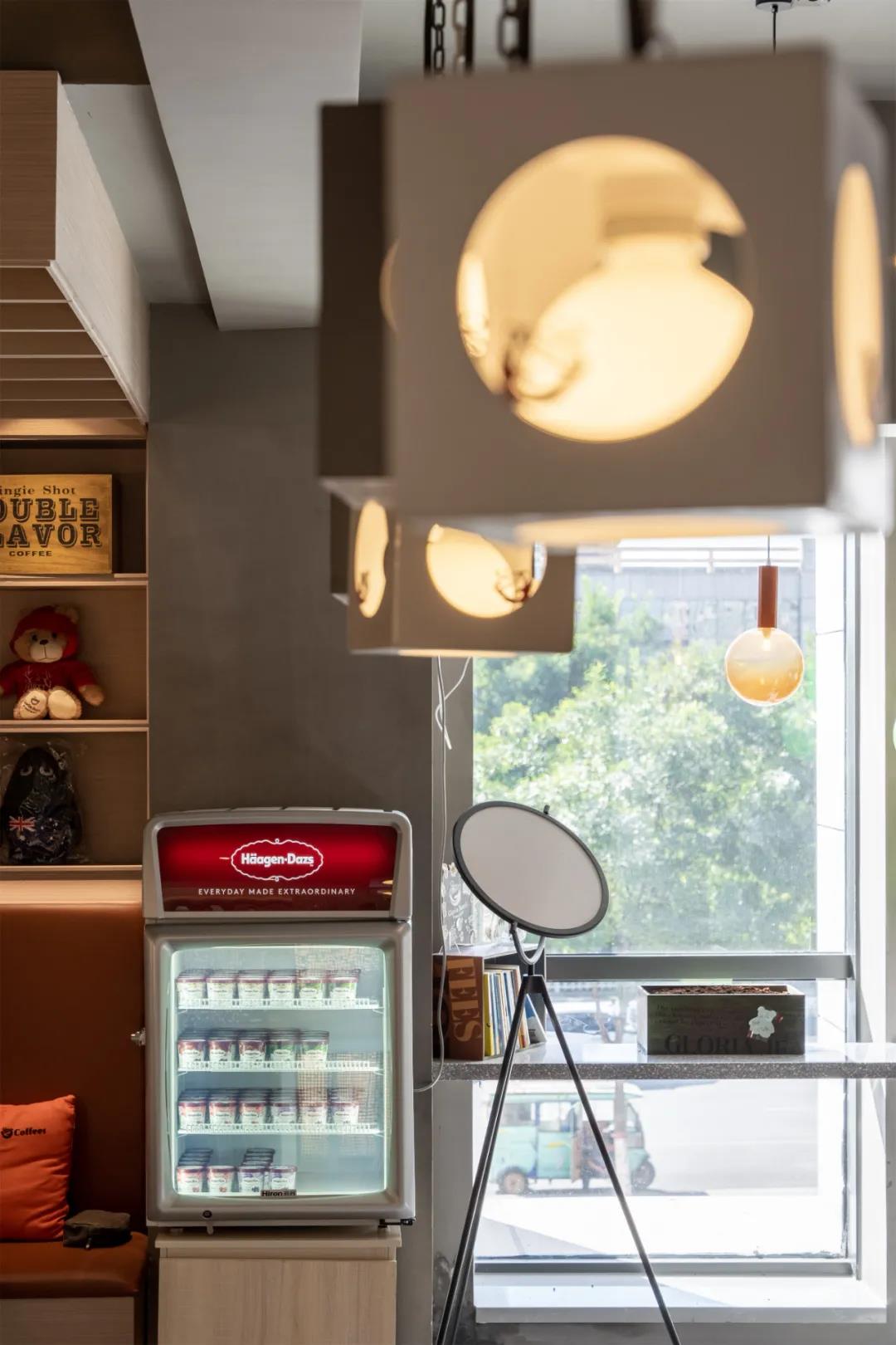 咖啡空间与其他部分的设计看似完全不同的风格,但整个空间以木质为主要的呈现,继承了整个空间的设计理念。
