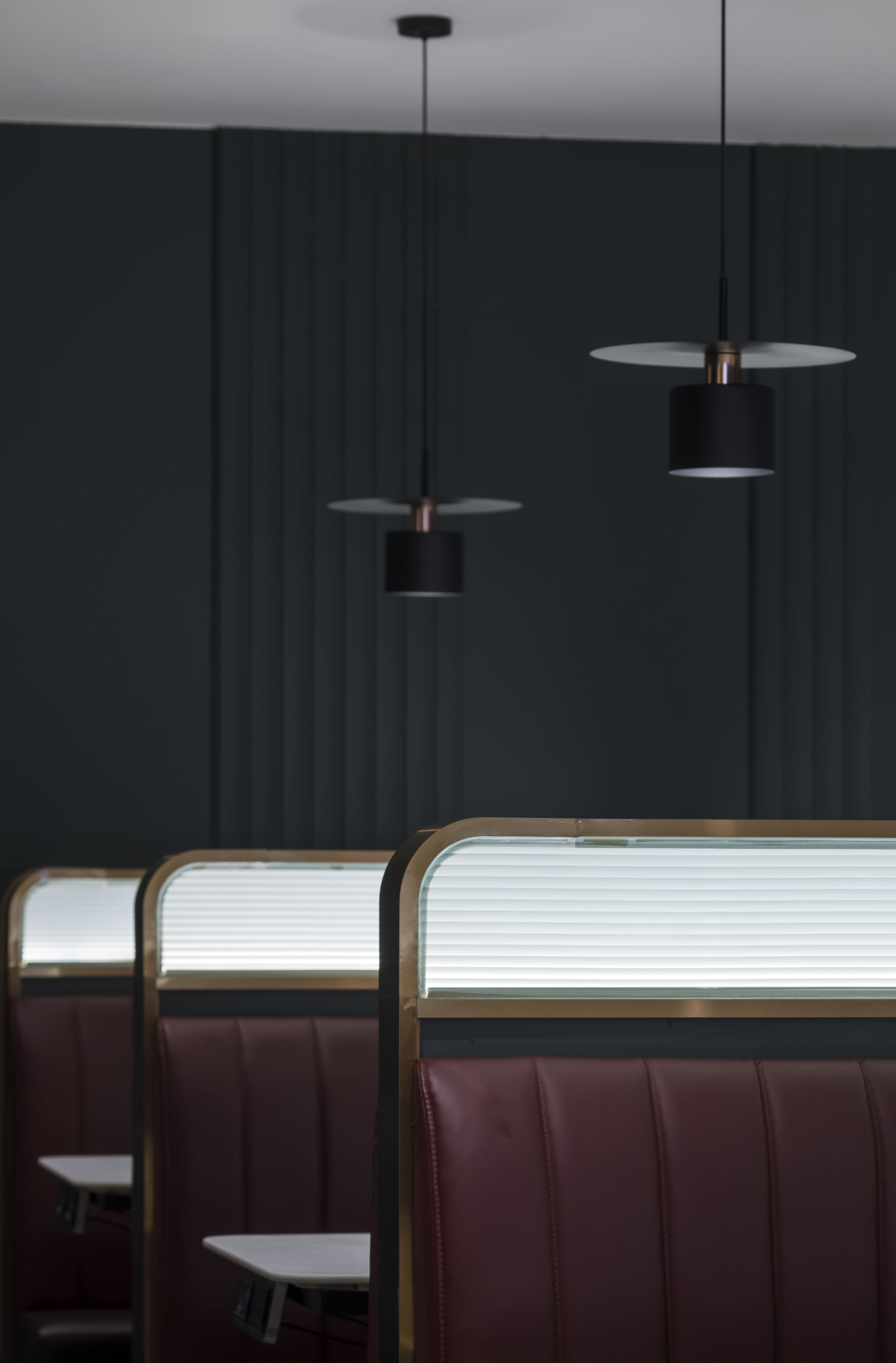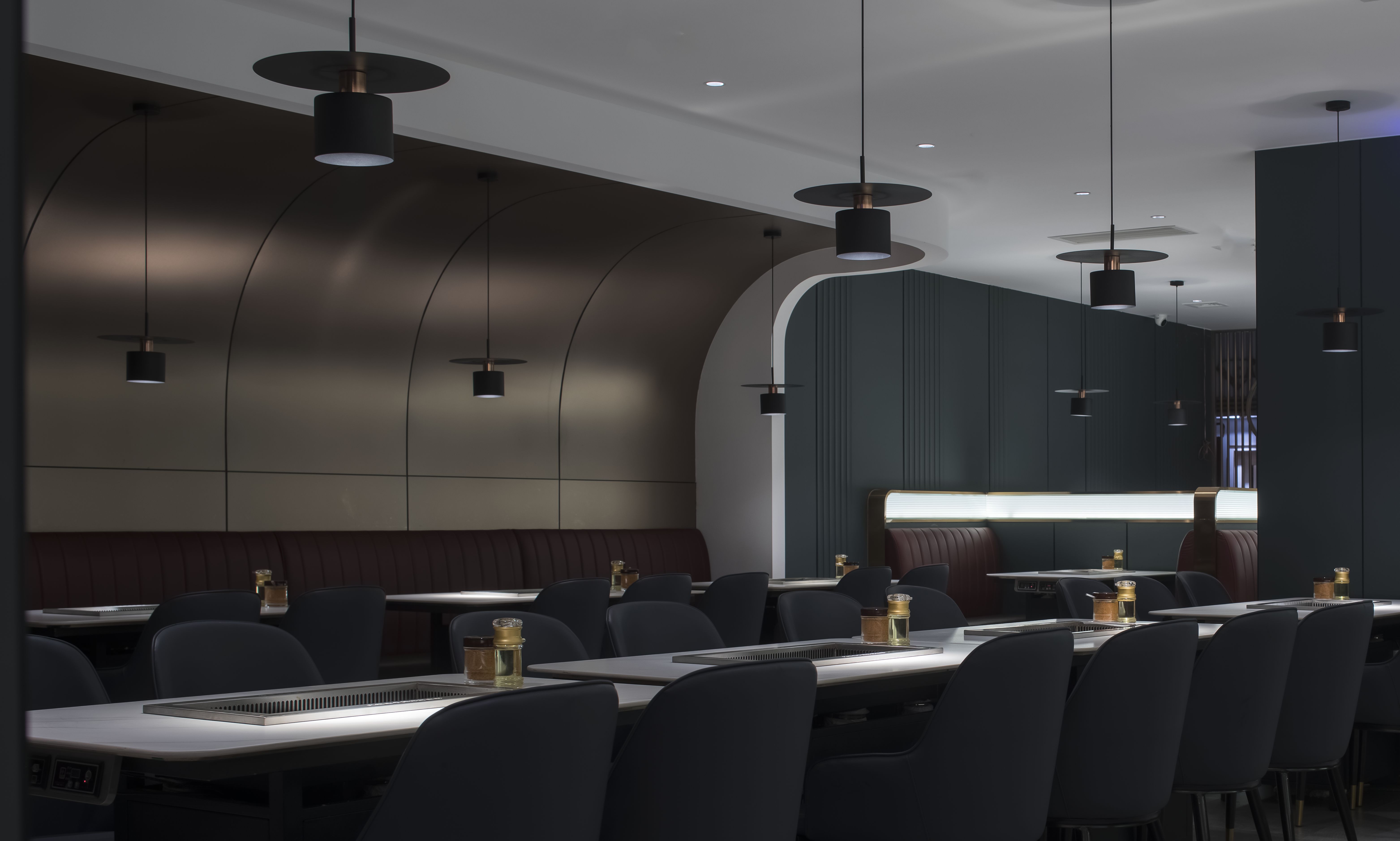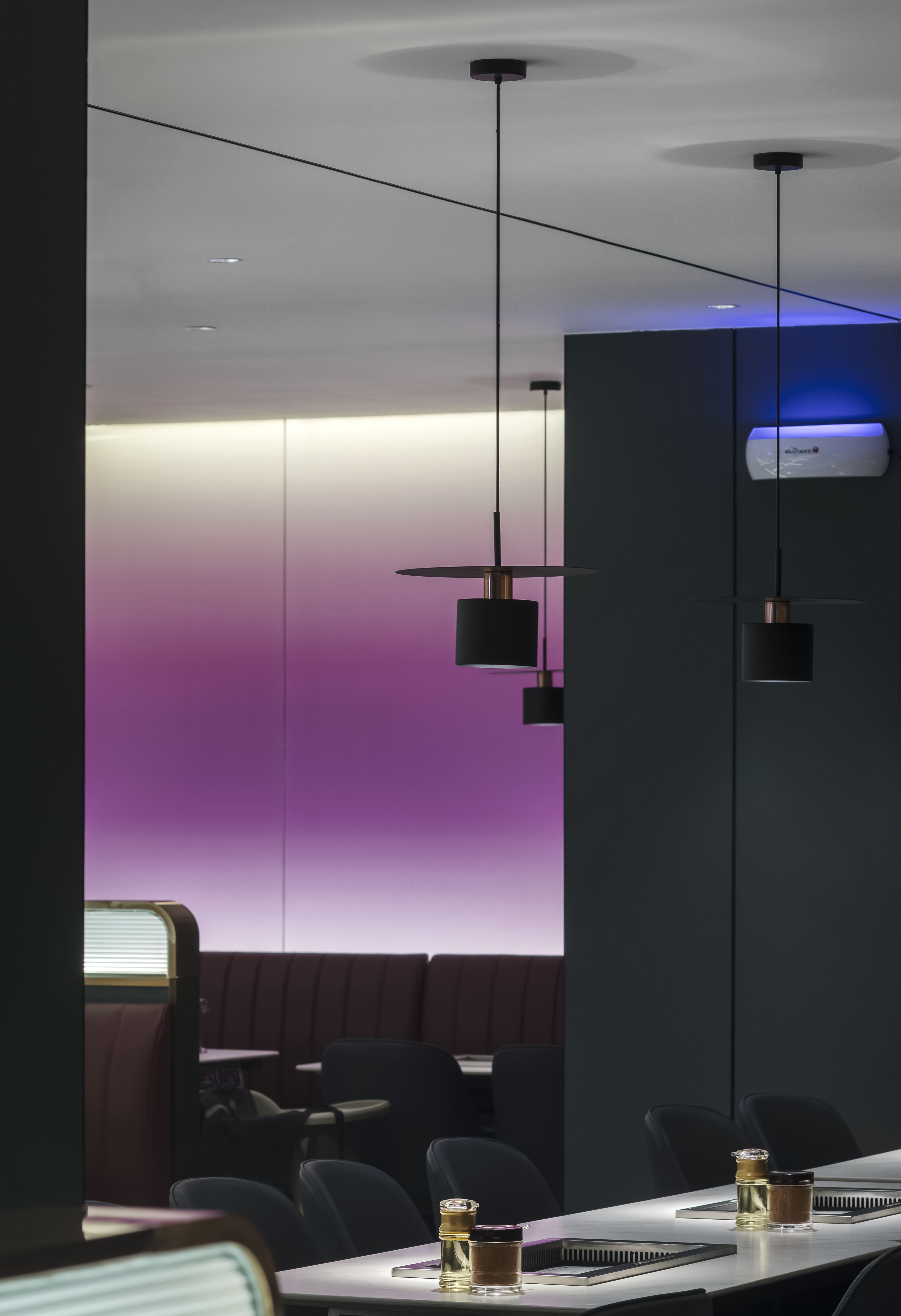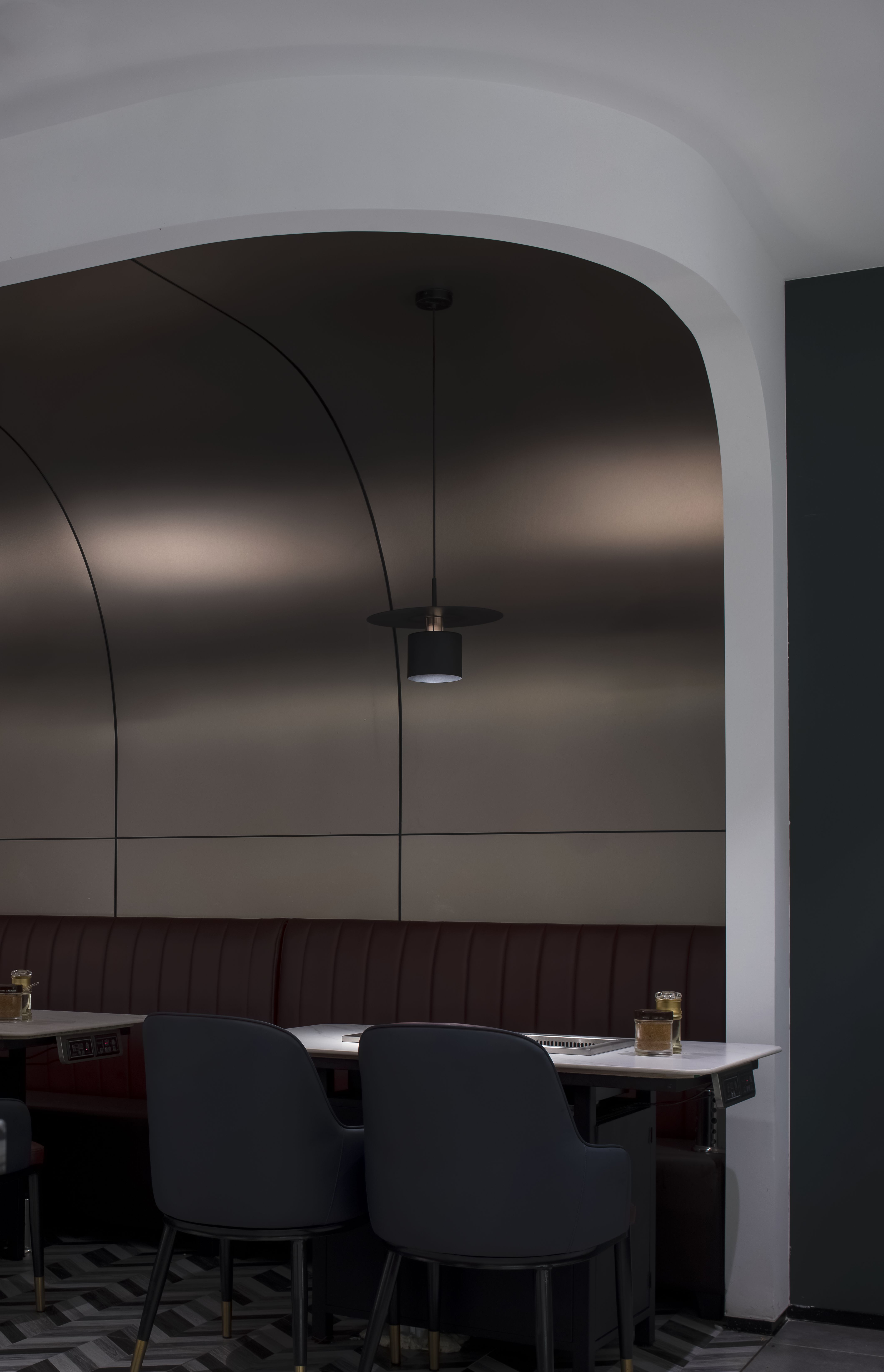 空间布局:轻松欢快的基调是设计的基础,搭配时尚的装饰元素,打造出具有当下流行特点的前卫化风格餐厅