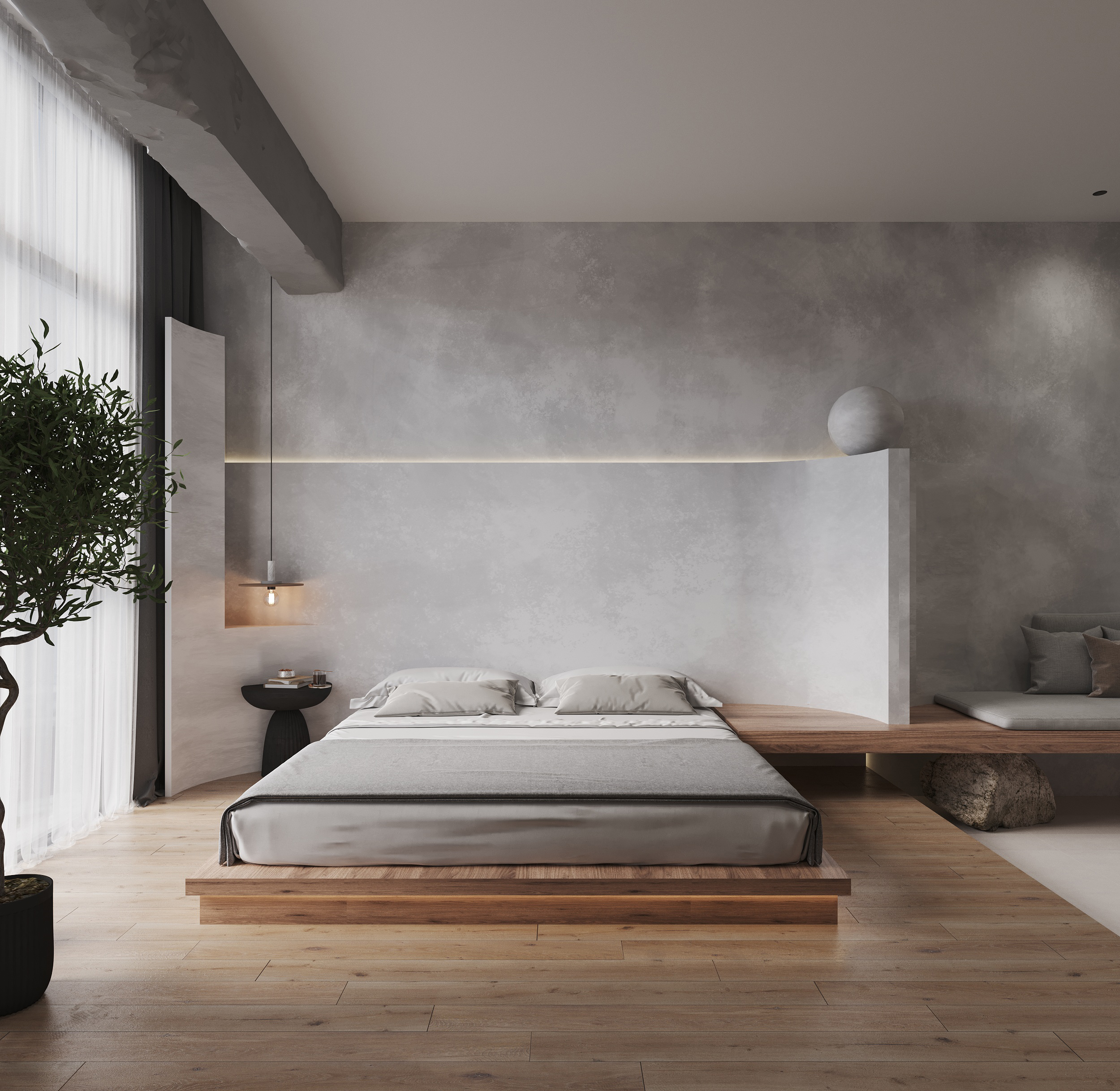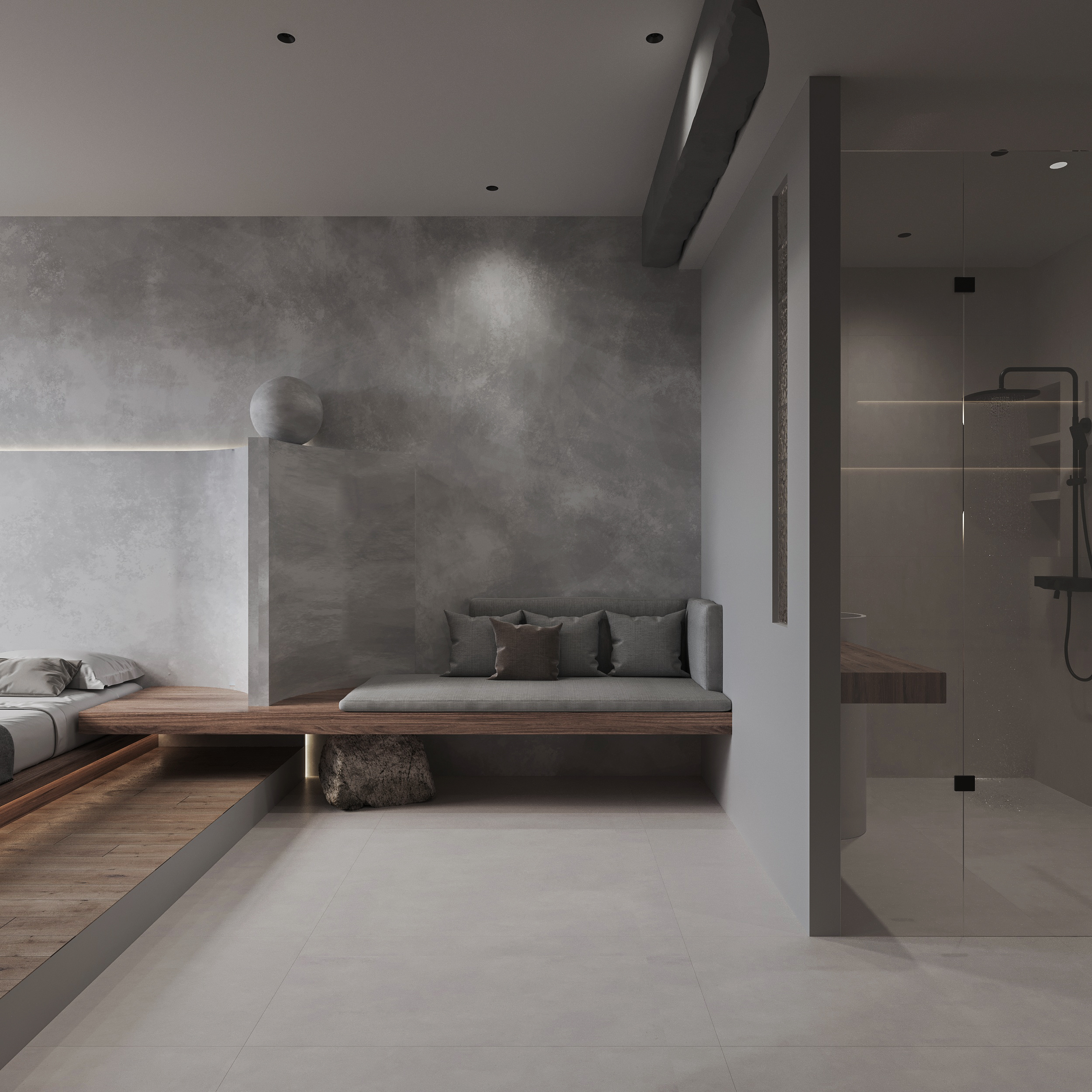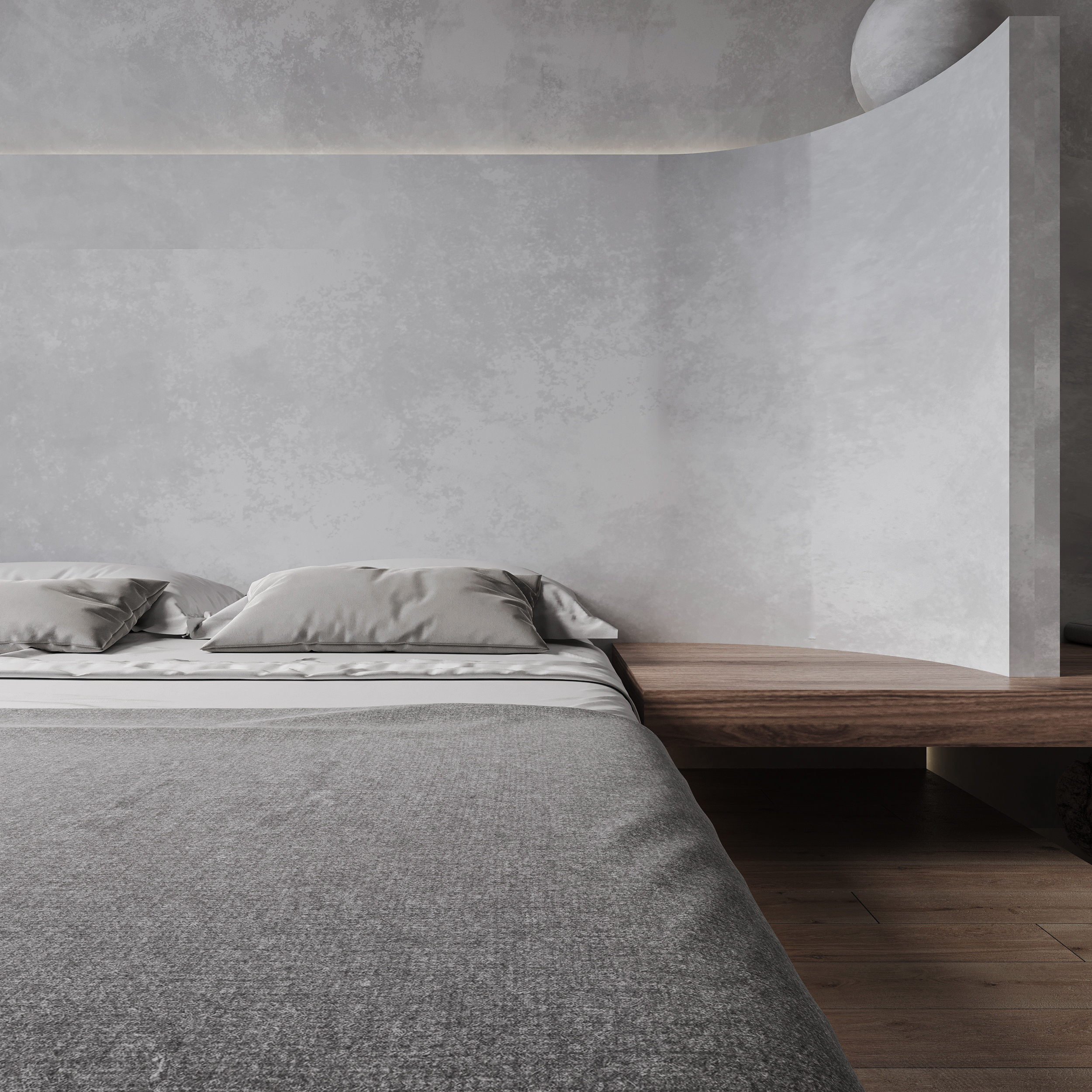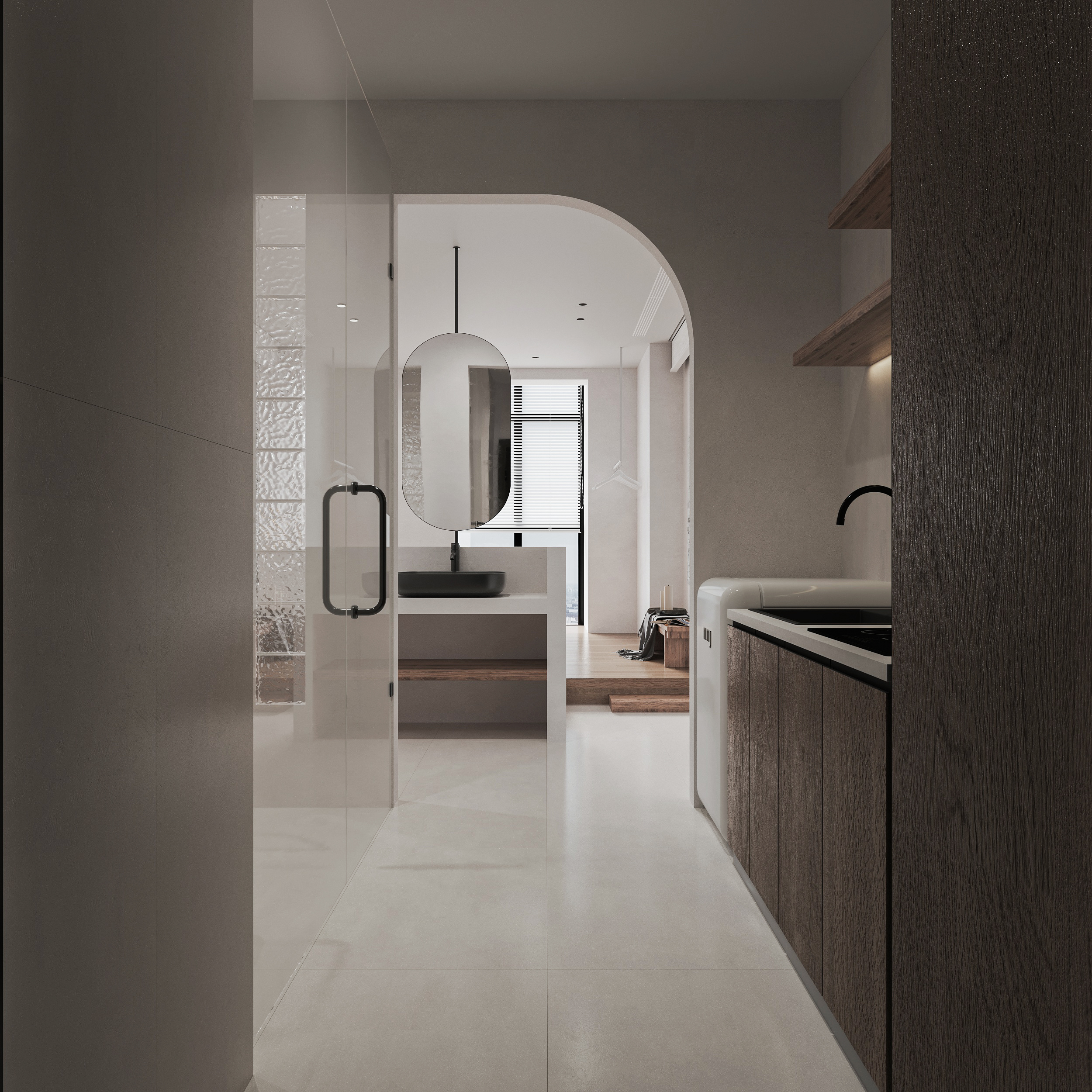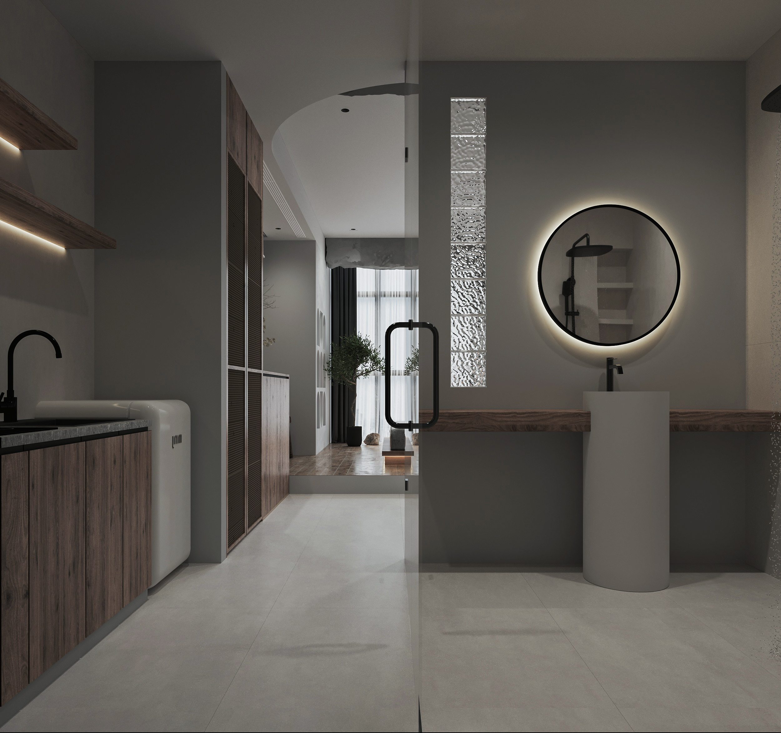 设计选材:主要材料采用微水泥和素色微水泥砖