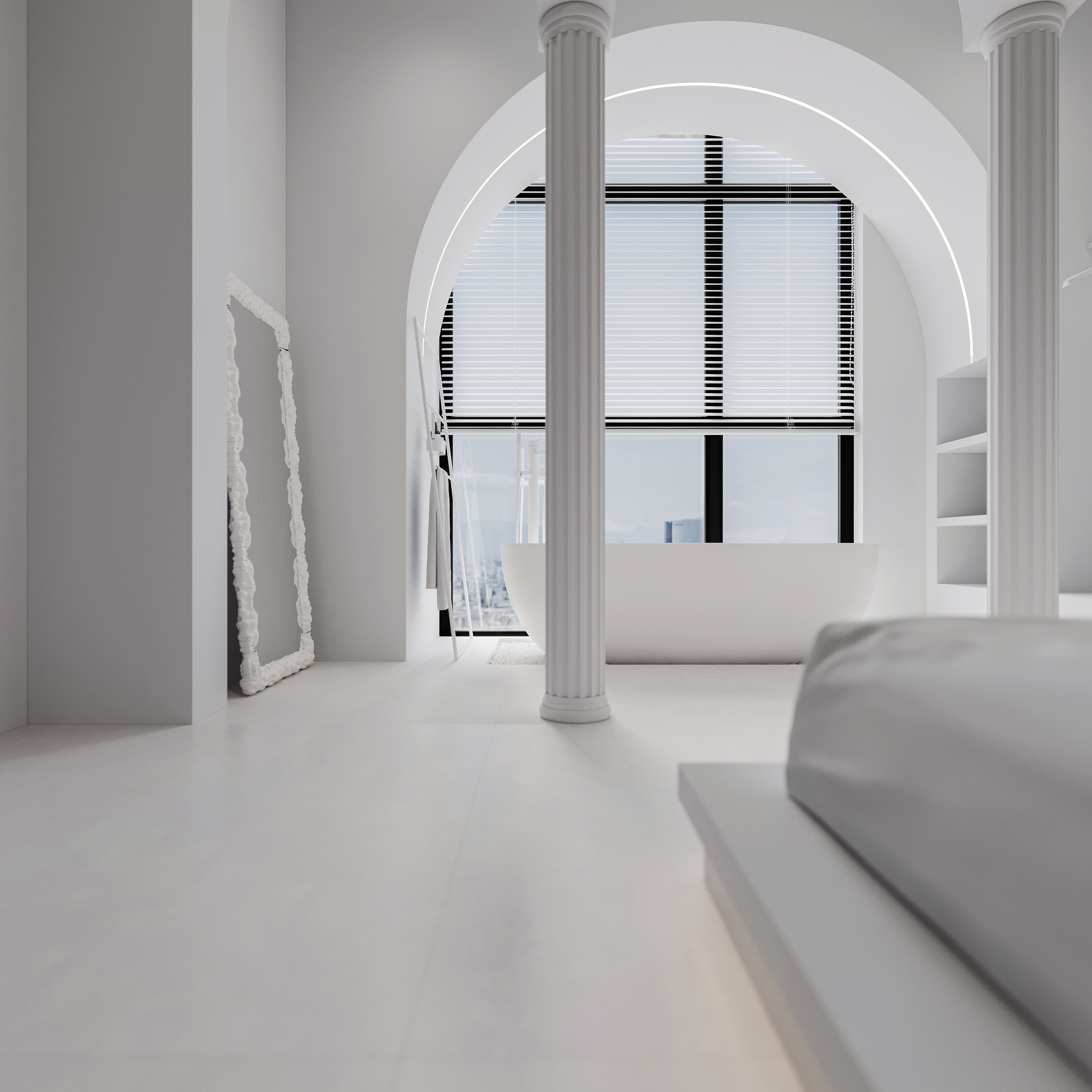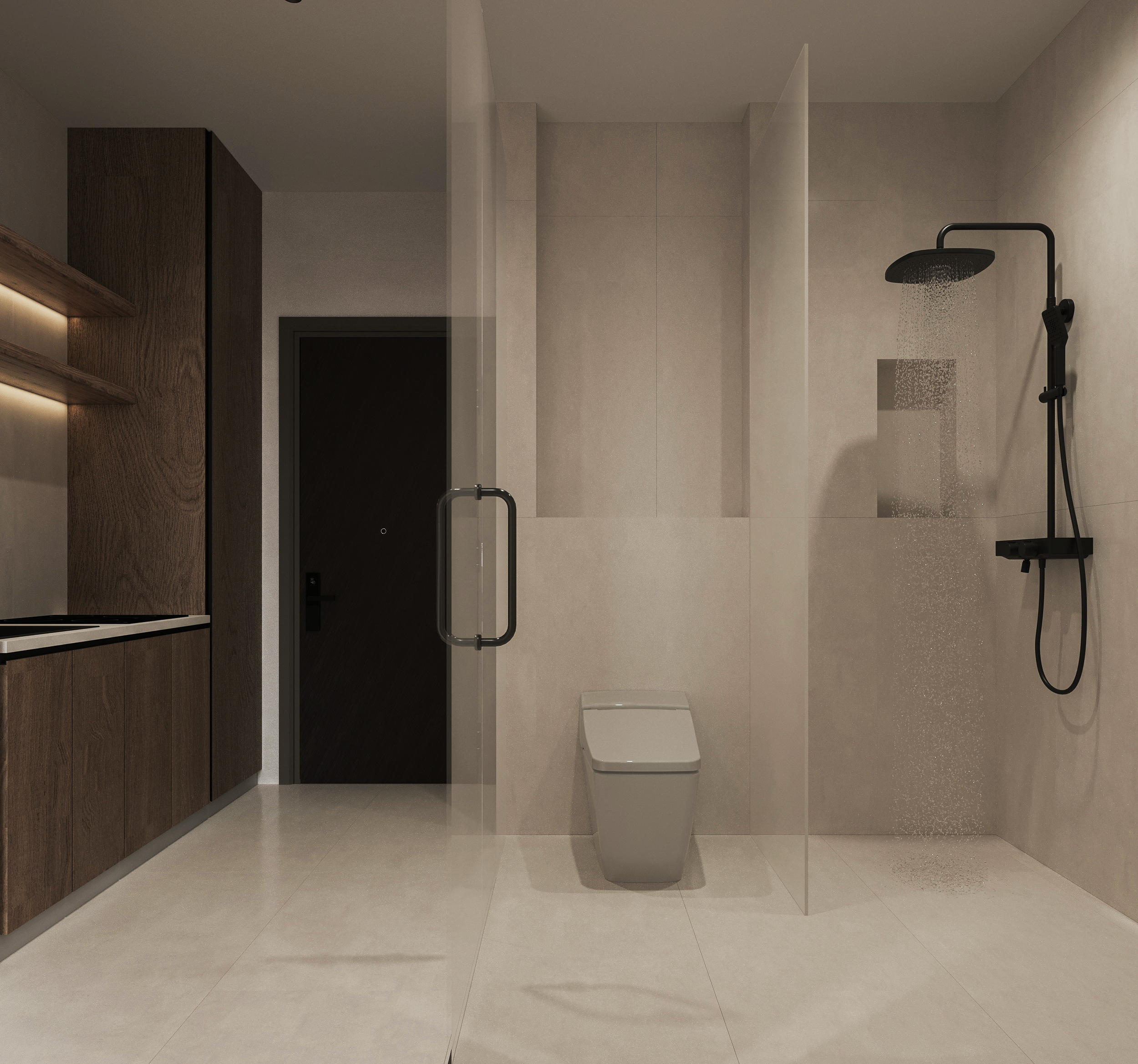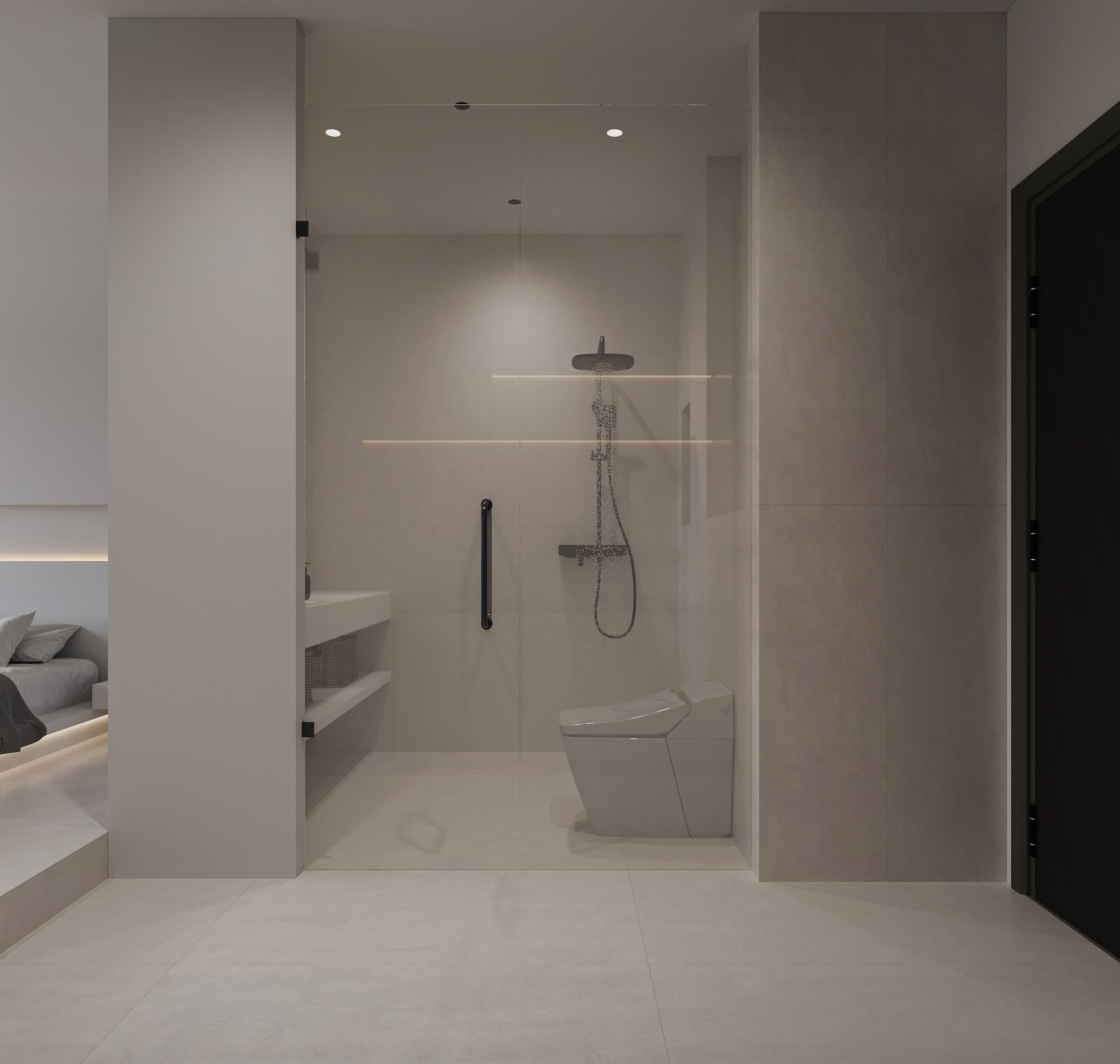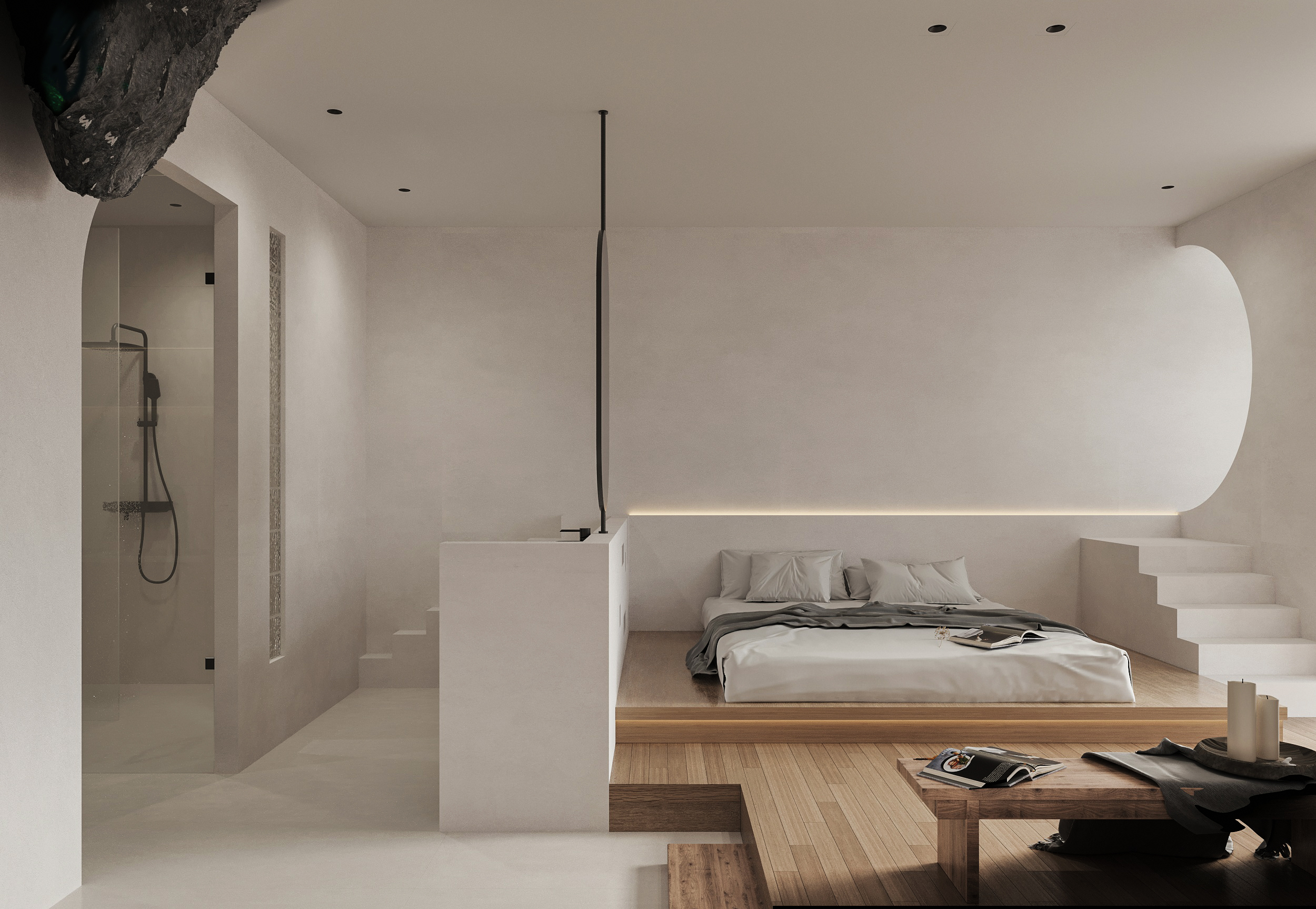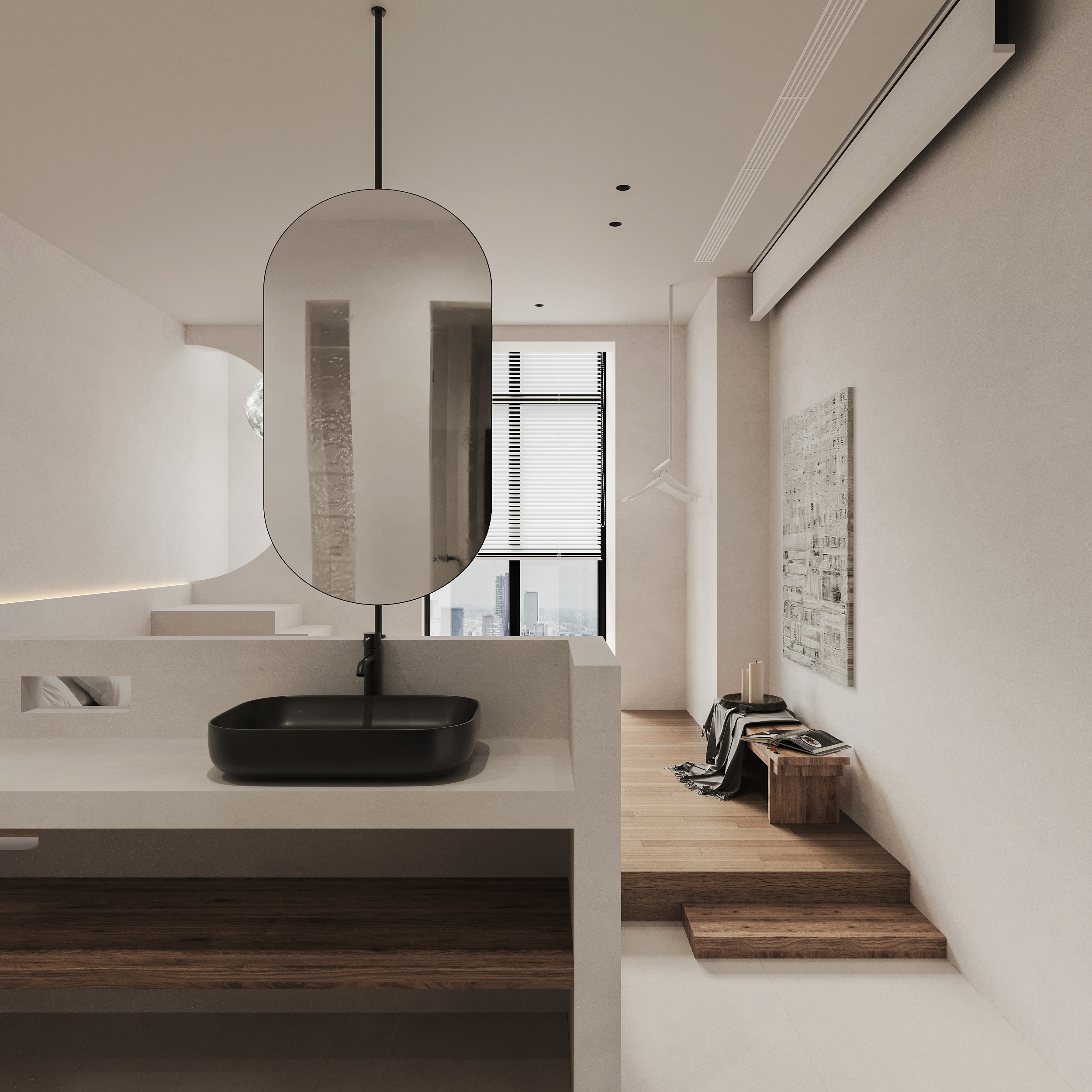设计选材:主要材料采用微水泥和素色微水泥砖