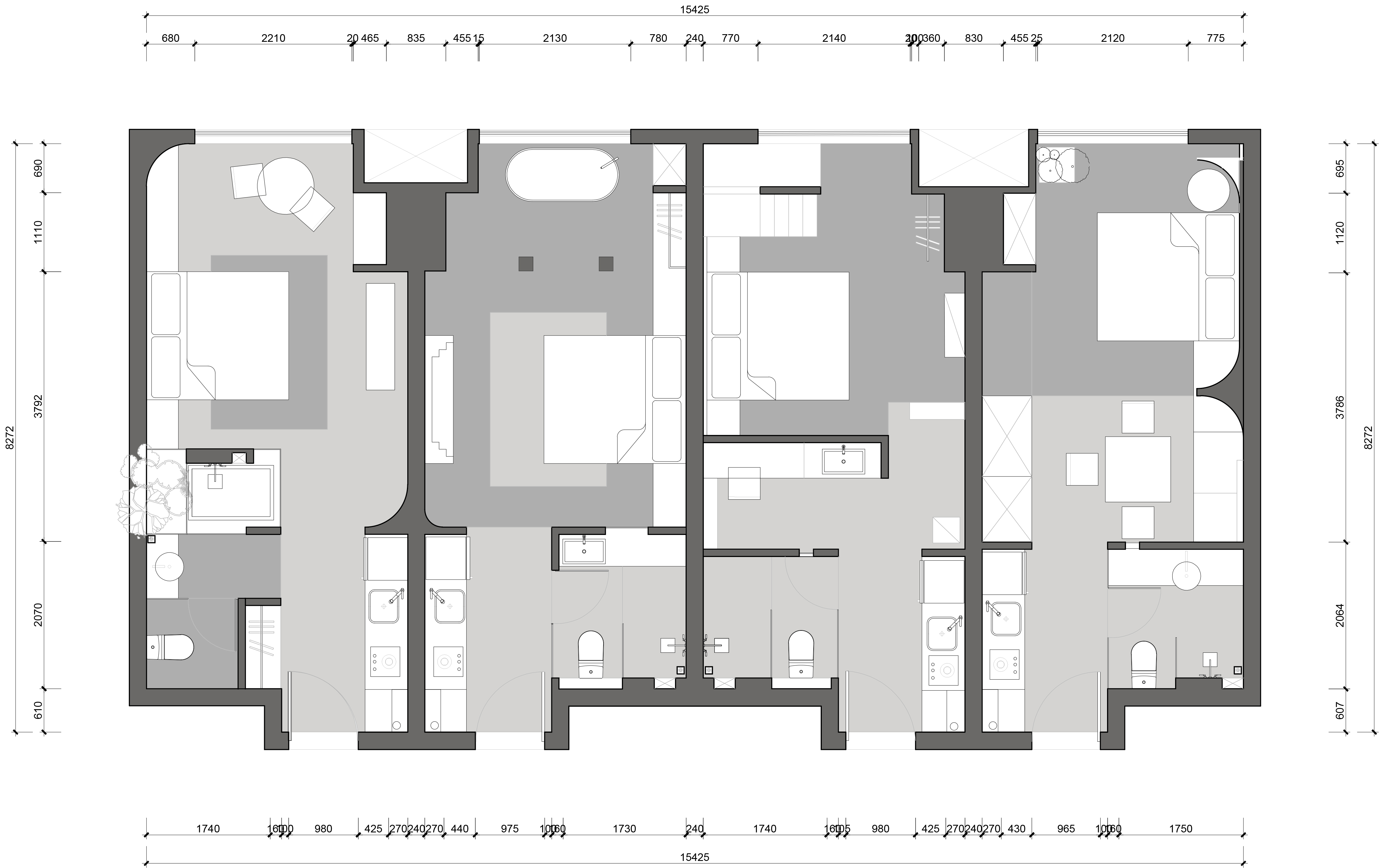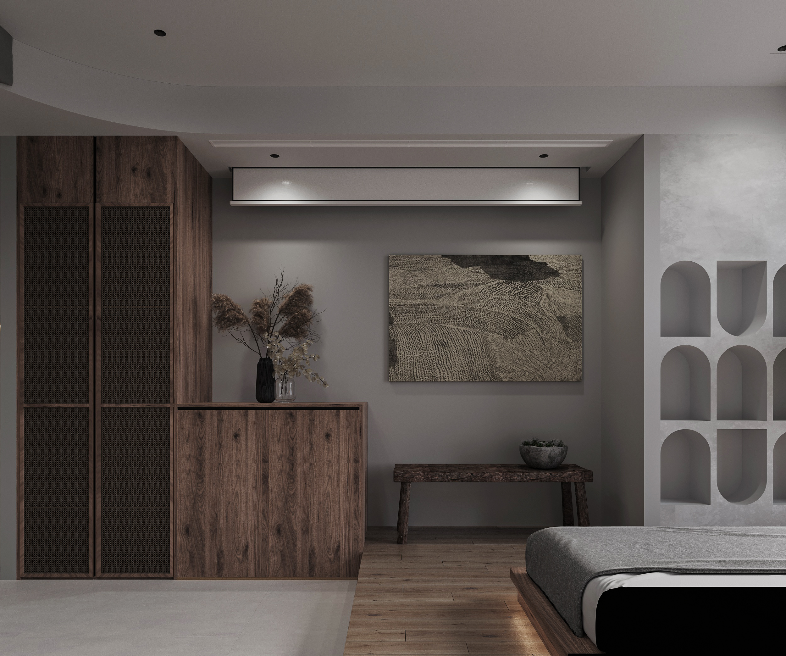 项目有四个房间 结合上面的分析给到了四个房间不同的主题场景 相对应的我们设计概念:在成长的过程的勿忘初心,由此我们感悟到的一个人生变化,从青春到暮年。 四个房间同从左到右分别的主题是: 童言:(年轻/色彩) —— 芳年:(个性/现代极简混搭) —— 莞尔:(素雅/原木)—— 夕暮:(沉稳/侘寂) 对应的也是不同的年龄程段,所以说在居住的过程中你是否会在这里得到一些人生的启发,又或者在你青春的时候你想去感受你未来时的体验, 在你年迈的时候去回忆下美好的青春。 时间是一直再走的,怎么样让你在这流逝的时间的里让自己的生活,有意义有价值,而不是浑浑噩噩的度过一生,是值得我们去思考的