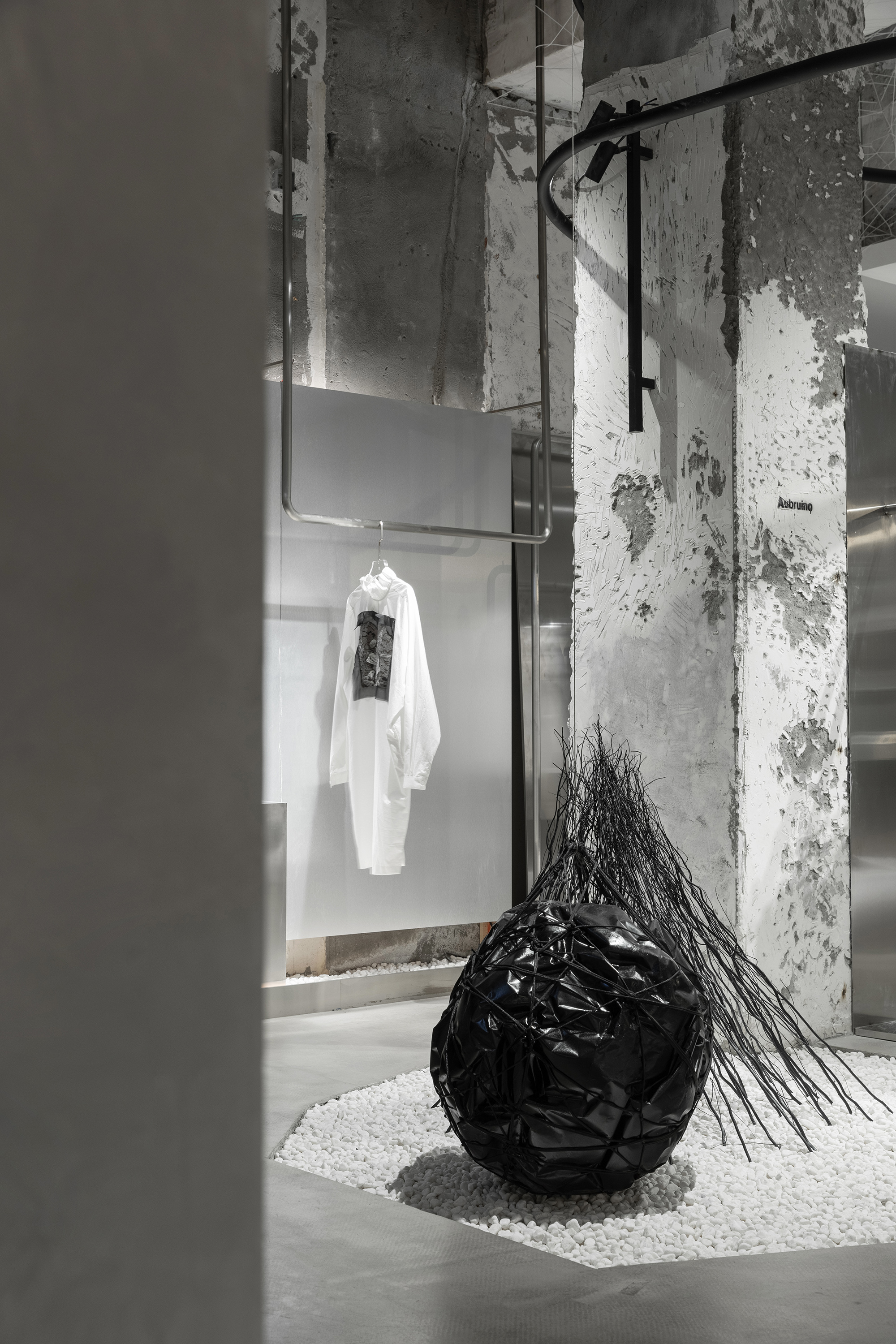空间意境:原空间是上个世纪的大型厂房,层高充足,空间可利用性较高,也让这一次略显粗野的装饰与激进的艺术表达手法得以被流畅的托出。空间中的视觉语言核心,依然是为突出品牌价值理念而创作。向每一位到店的顾客多角度展示S17品牌原创设计及其他合作独立品牌服饰的魅力。