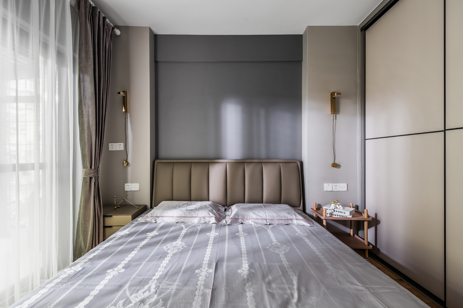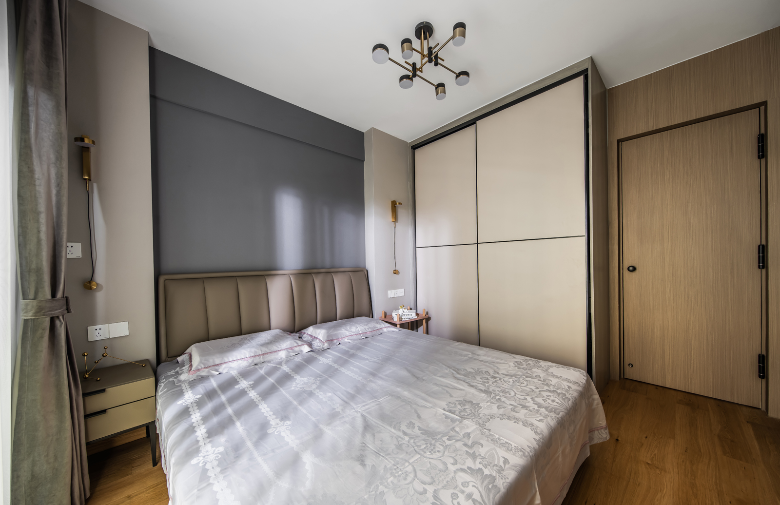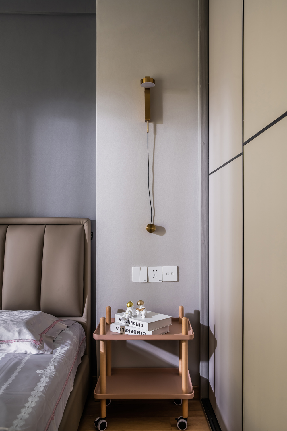 06 卧室 BEDROOM 主卧阳光饱满通透 伴随着光影绰约荡漾在空间 在自然光线与室内灯光的映射下 空间氛围柔和而静谧 流淌着关于美好生活的精细巧思
