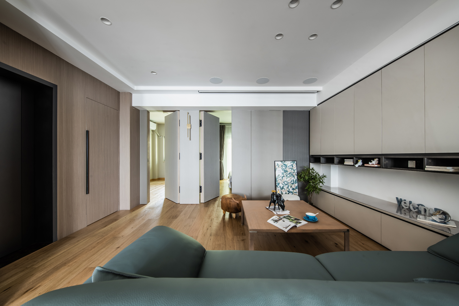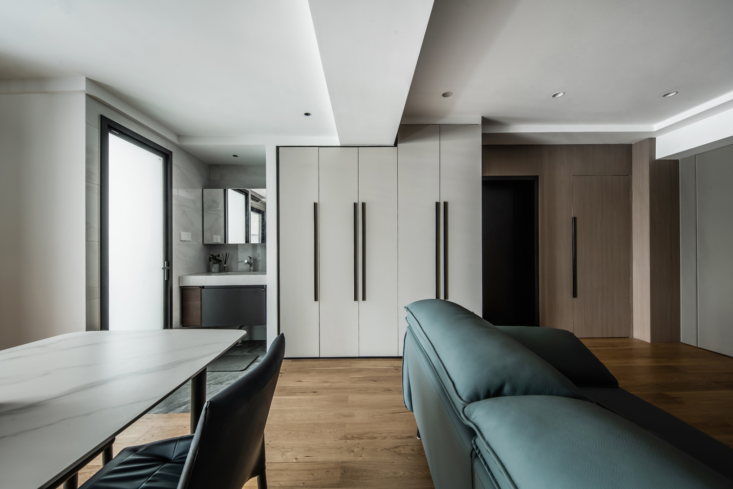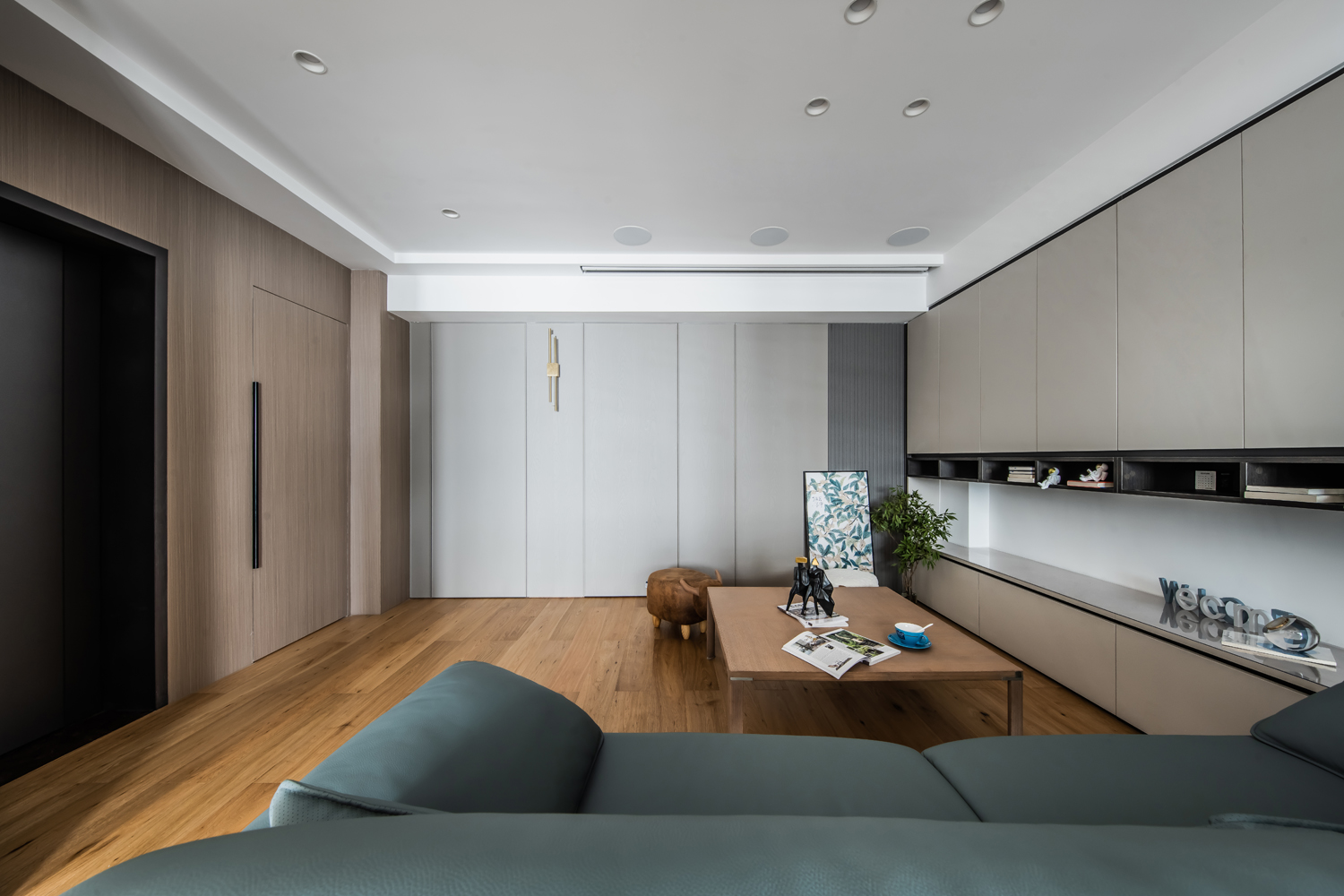 以干脆利落的视觉与大面积收纳让居住者用「生活」去填满 不同元素和纹理的家具在此处碰撞 诠释出静谧与清新的自然气息设计