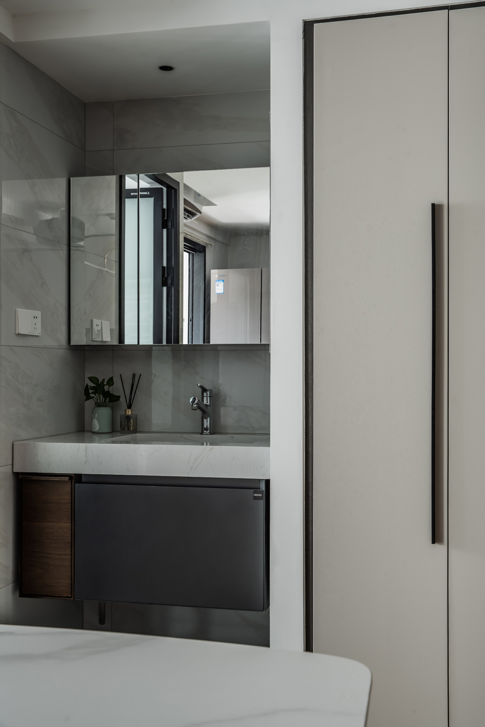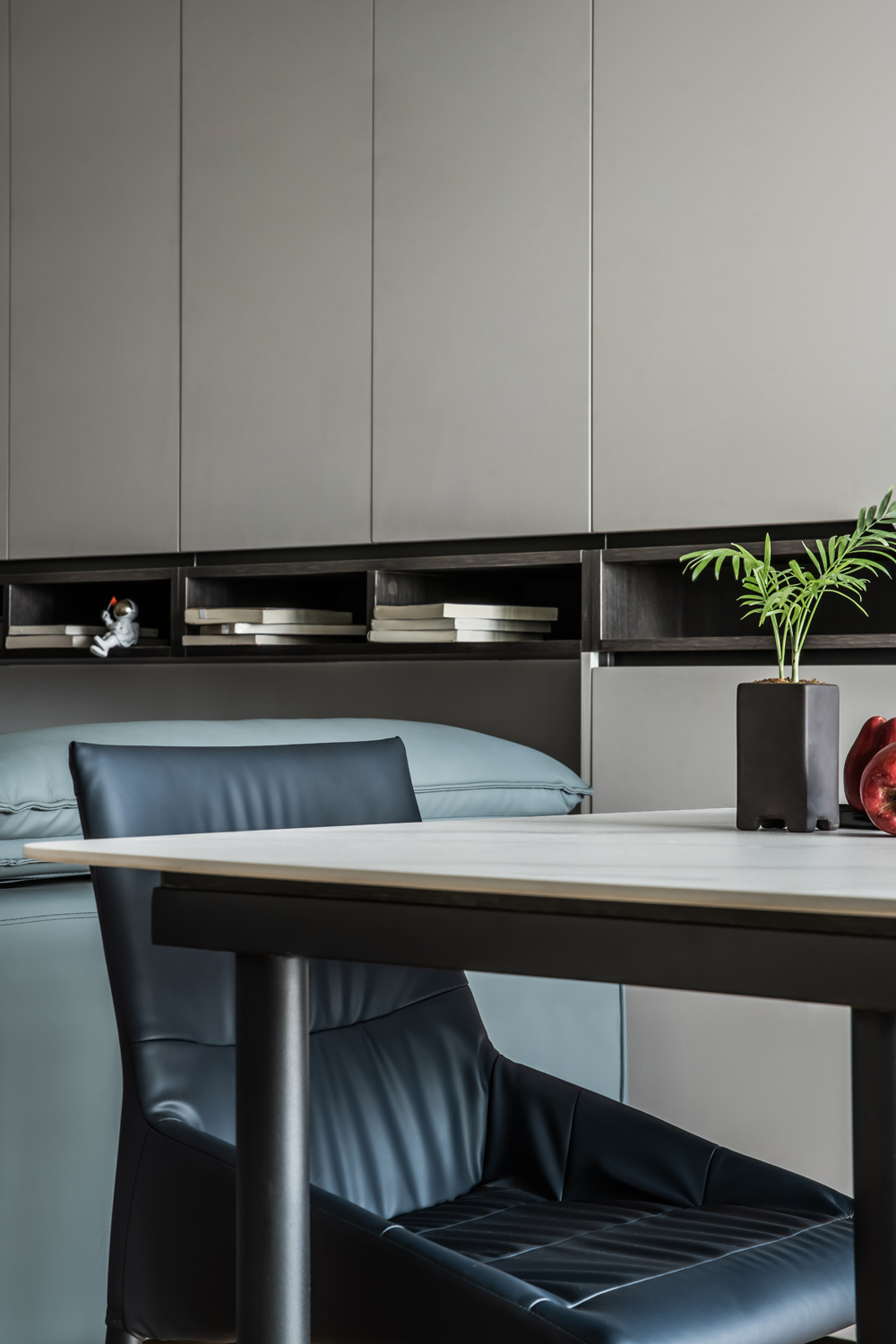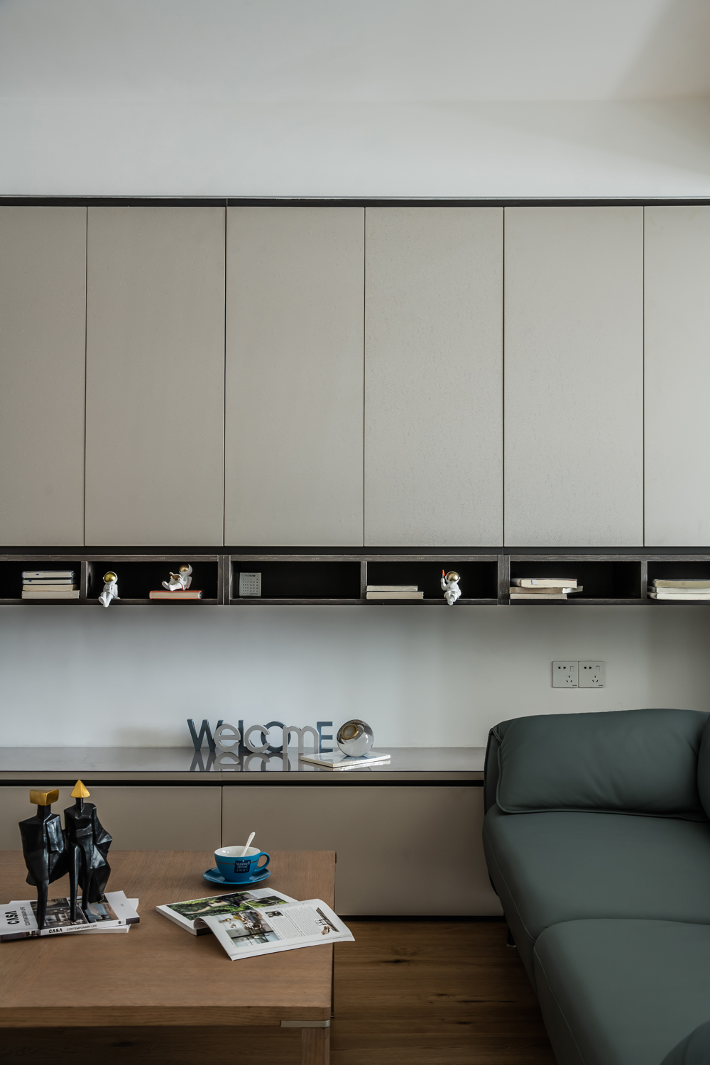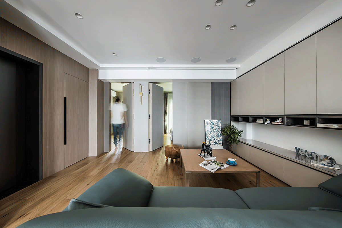 以干脆利落的视觉与大面积收纳让居住者用「生活」去填满 不同元素和纹理的家具在此处碰撞 诠释出静谧与清新的自然气息设计