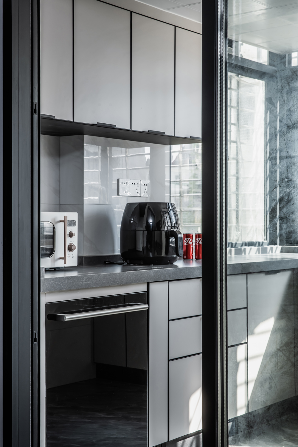 04 厨房 KITCHEN 厨房空间注重秩序流动 设计沉稳而富有质感 细节处充满张力让生活趋于缓慢而平静亮