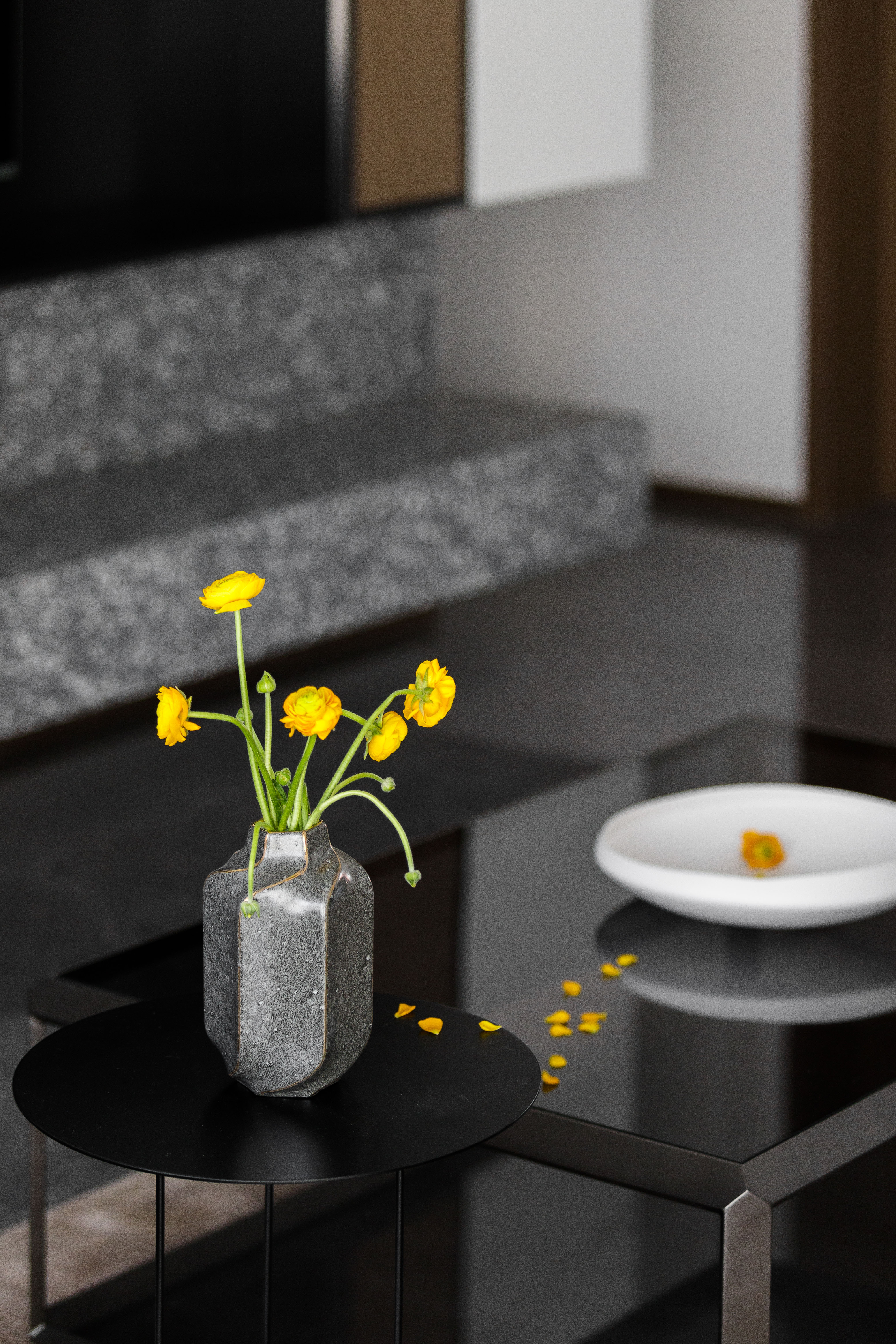 在罗先生的家,植物绝不是可有可无的物品,它们和人一样有着鲜活的生命,能让家更像家。克制的花束混合着原始素色的白墙,利用室外光线的变化,将自然映入室内,让整个空间透出一种低调感,描绘出自然与空间相协调的画卷。而且,原本硬朗、单调的房间,因为有了这些小生命的加入,使得整个空间都变得明朗了起来。