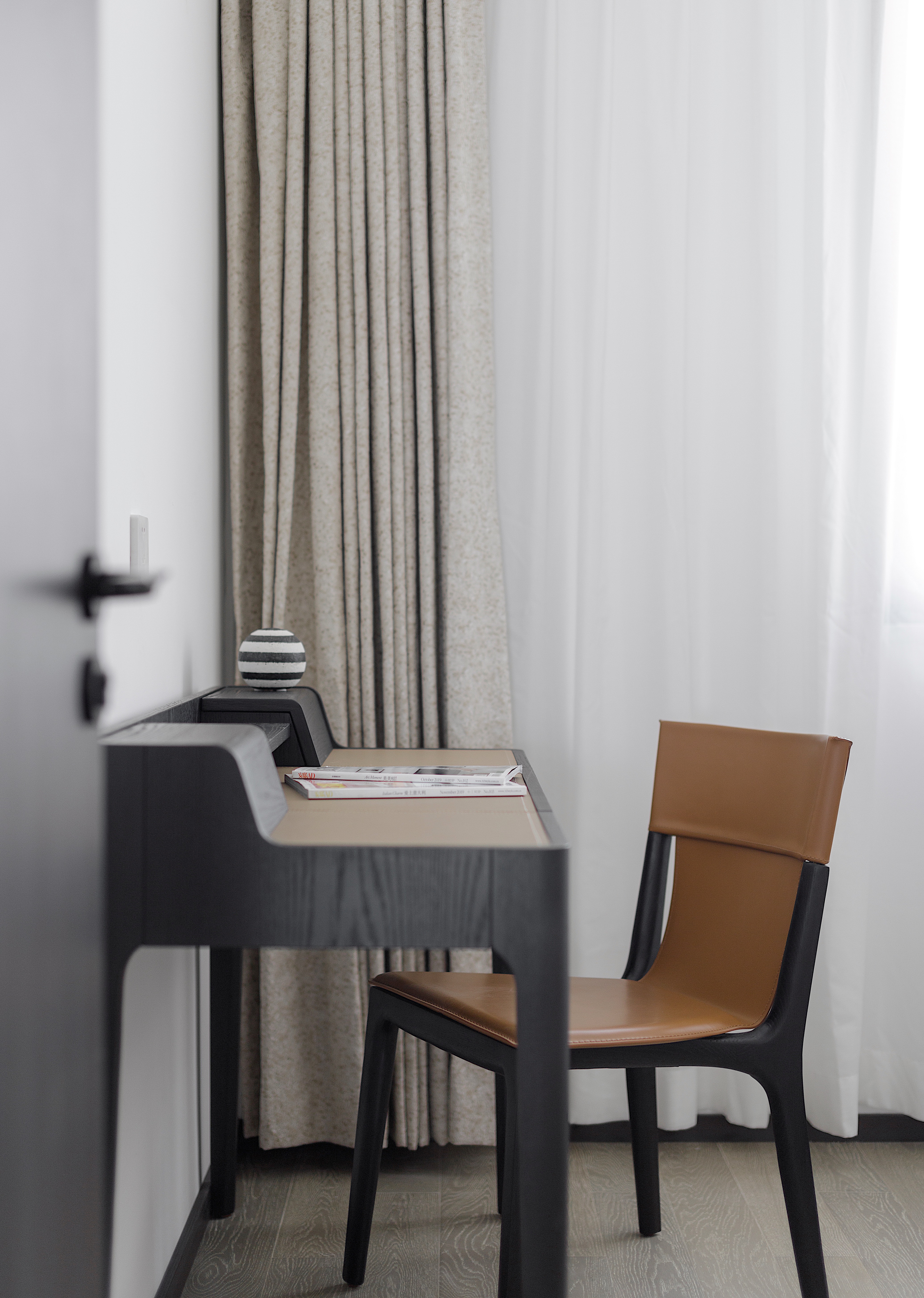 项目定位:业主宛先生的爱人是一名大学老师,对于家空间的诉求很简单:自然通透、共同学习。而简单的往往也是更有难度的。优雅简约又自然开放的状态,如何适配于同样重要的家人相处时的亲密需求,视觉的“舒适感”如何延伸对生活的满足,这一次,设计的风格依照「人」而显示出一种流动性。