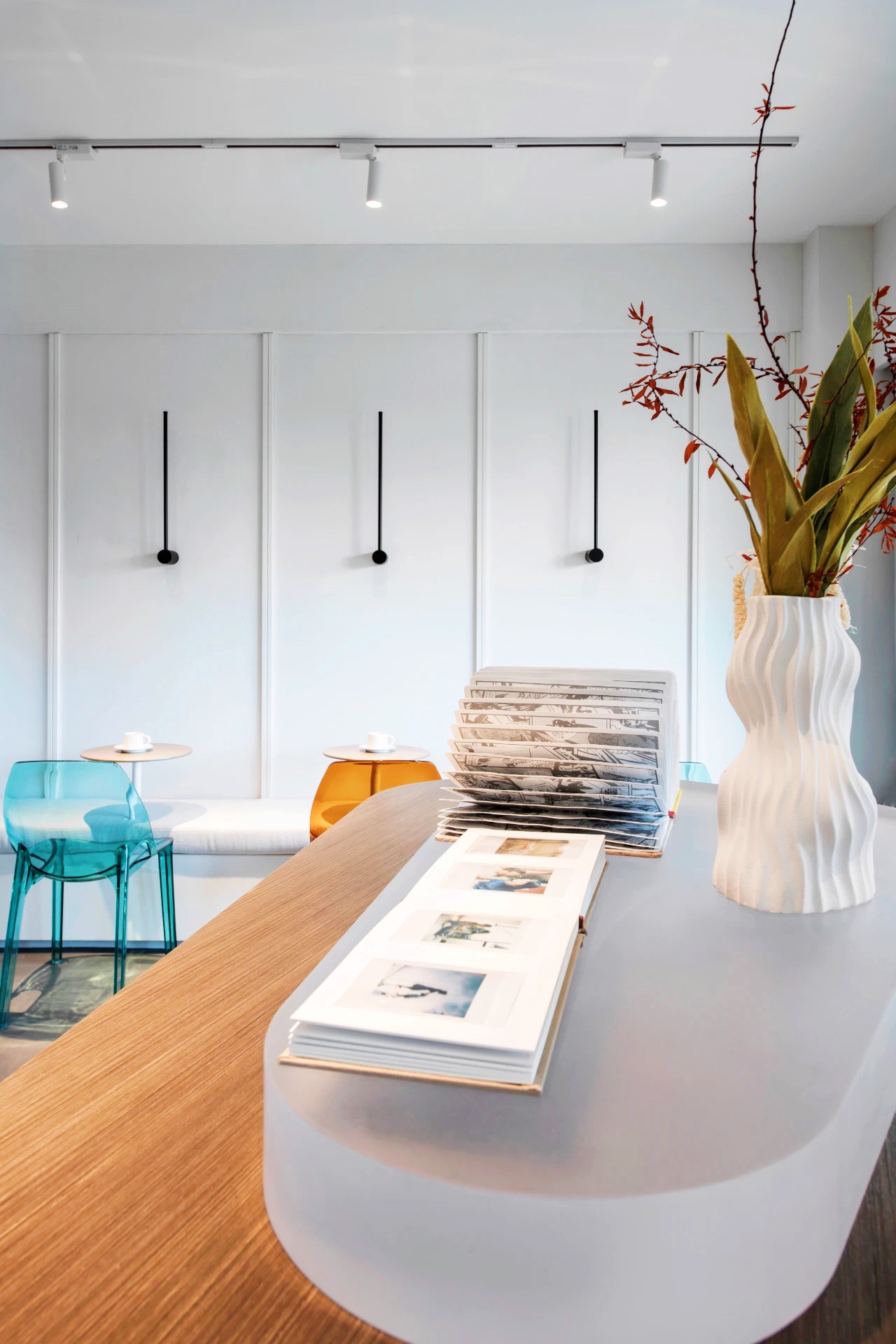 一本书、一杯咖啡,在细啜慢品的阅读时光中,书香与咖啡香气彼此萦绕,宁静而志远,延用首层的材质搭配,通过材质占比的调整,拟出更适合享受阅读的恬淡静思空间。