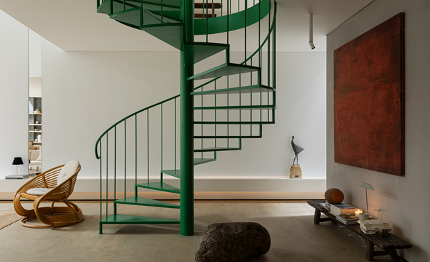 本案是左邻右舍,前后采光的地复式,原地下室就有南北天窗,采光良好,借负一楼冬暖夏凉的自然条件,只要增加自然通风量,便能将地下室纳入主要日常生活空间使用,整体空间转换为楼上与楼下的关系; -