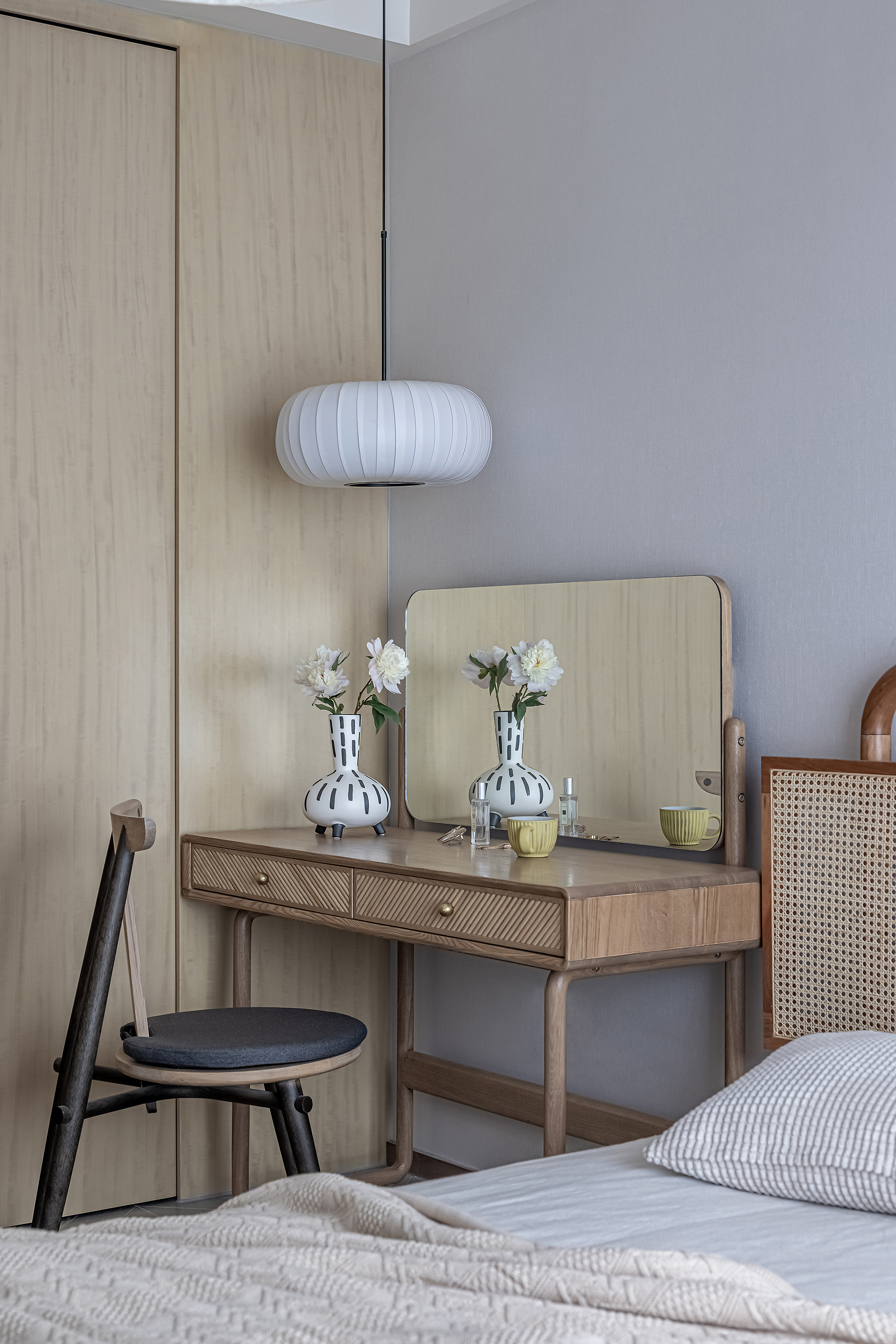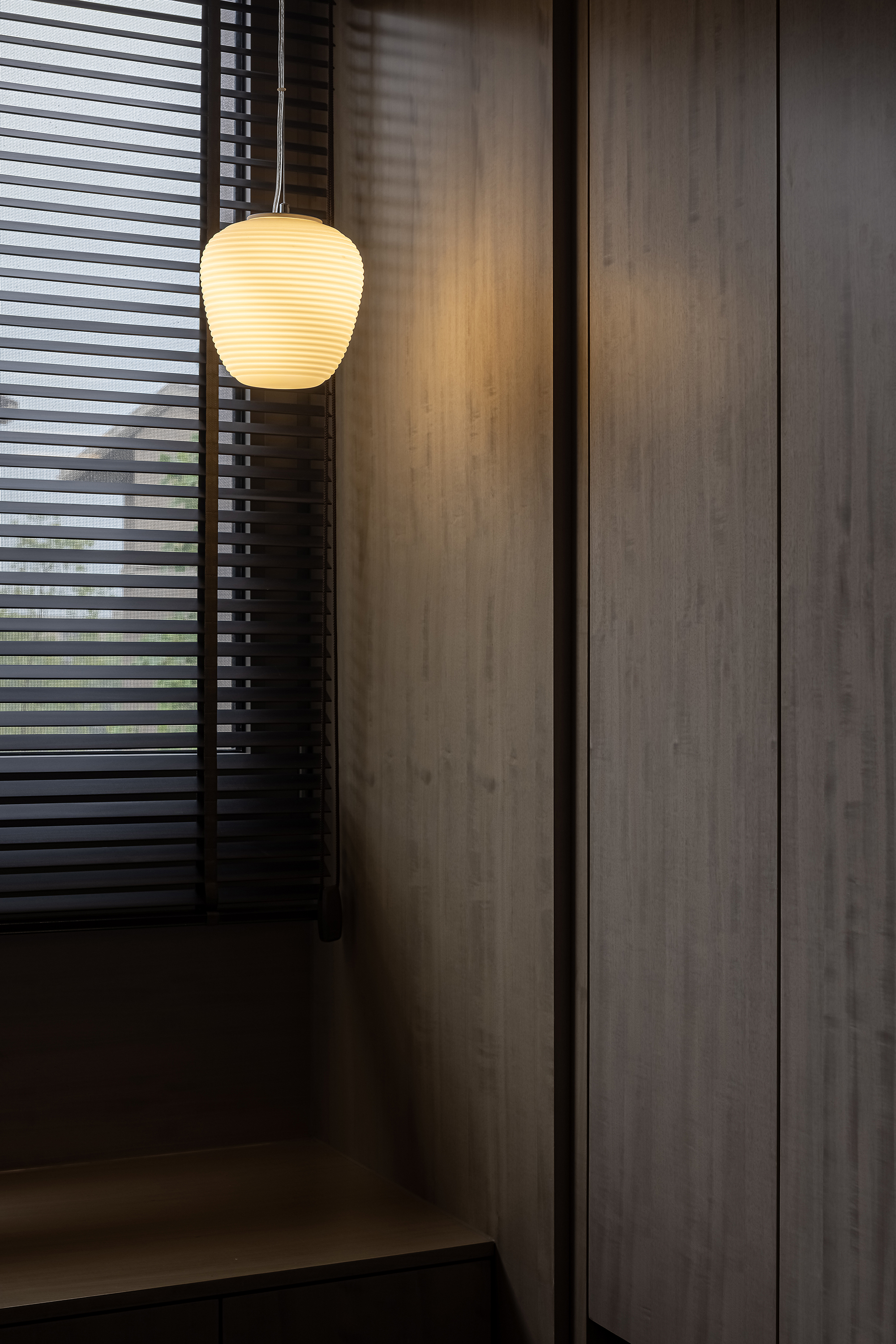 改造长辈房与客厅之间隔墙,墙柜一体,提炼元素,达到期望的空间氛围,美观且实用。