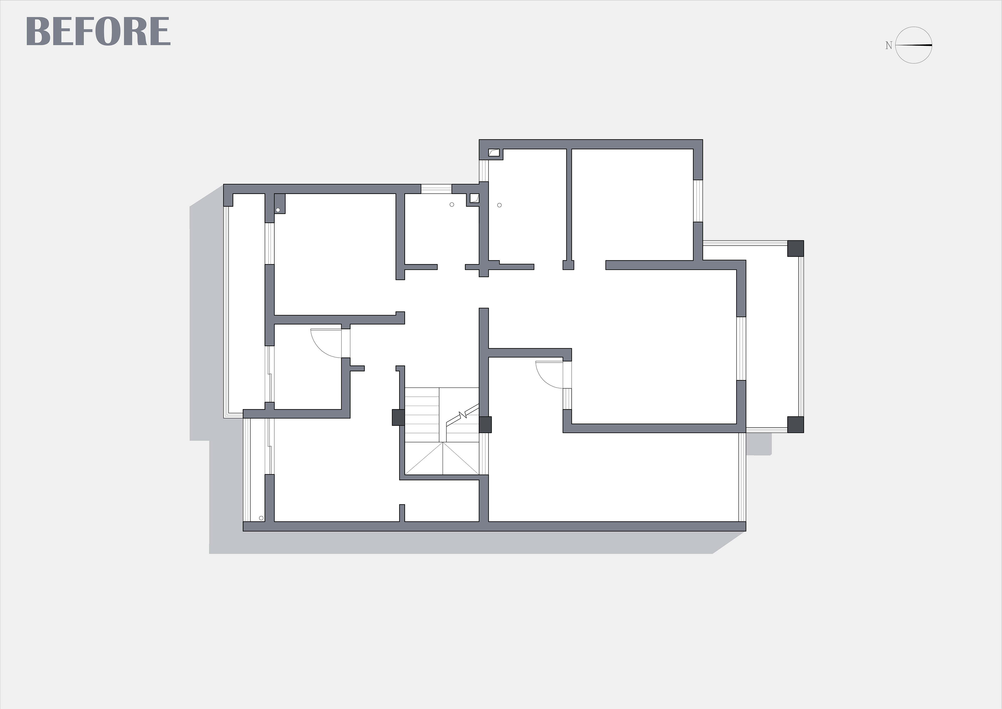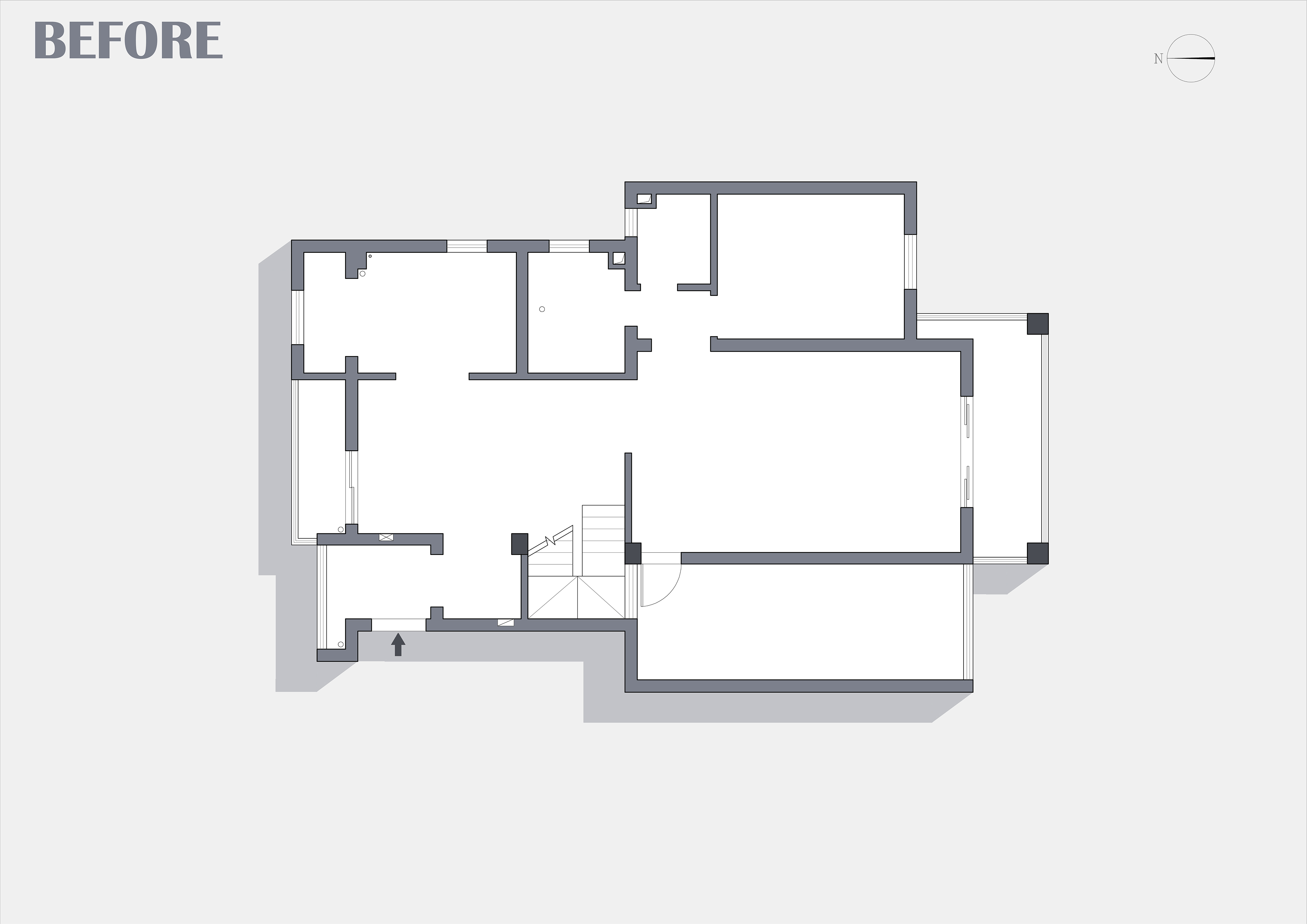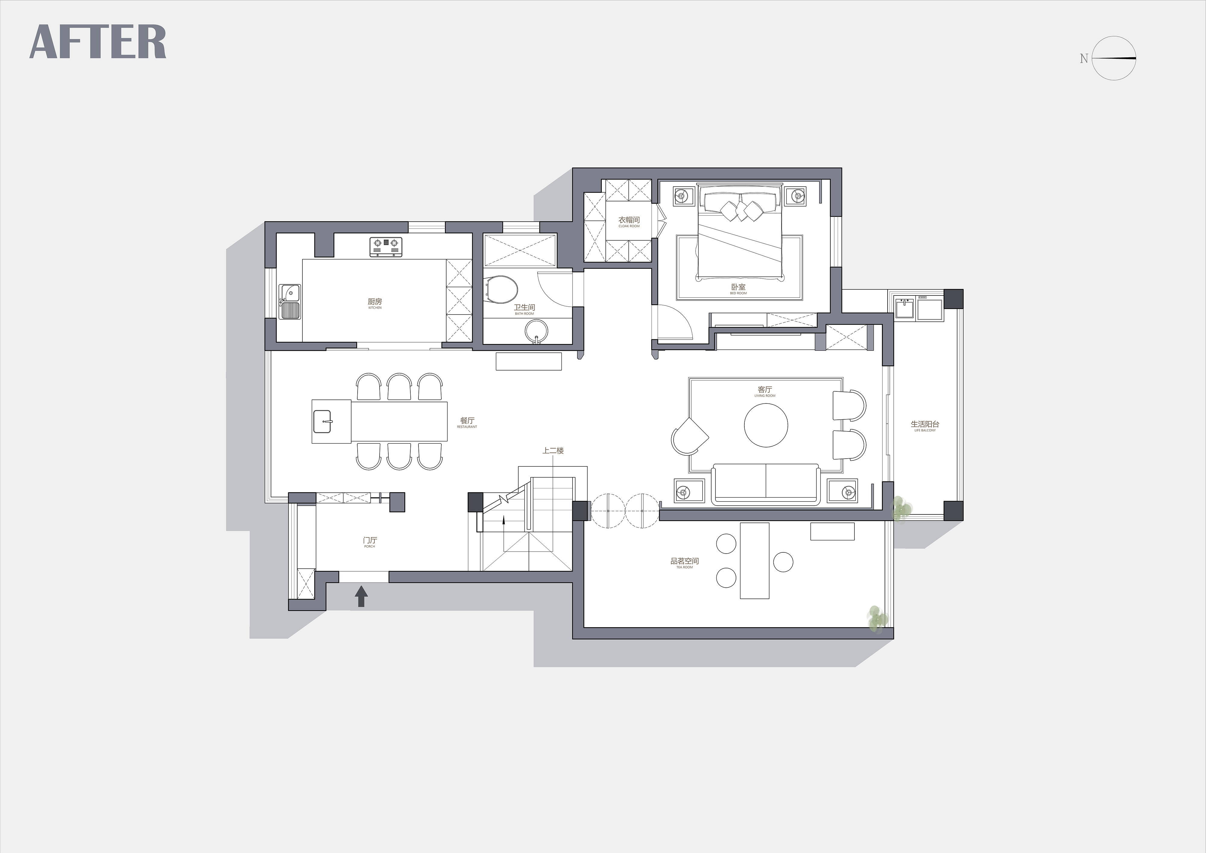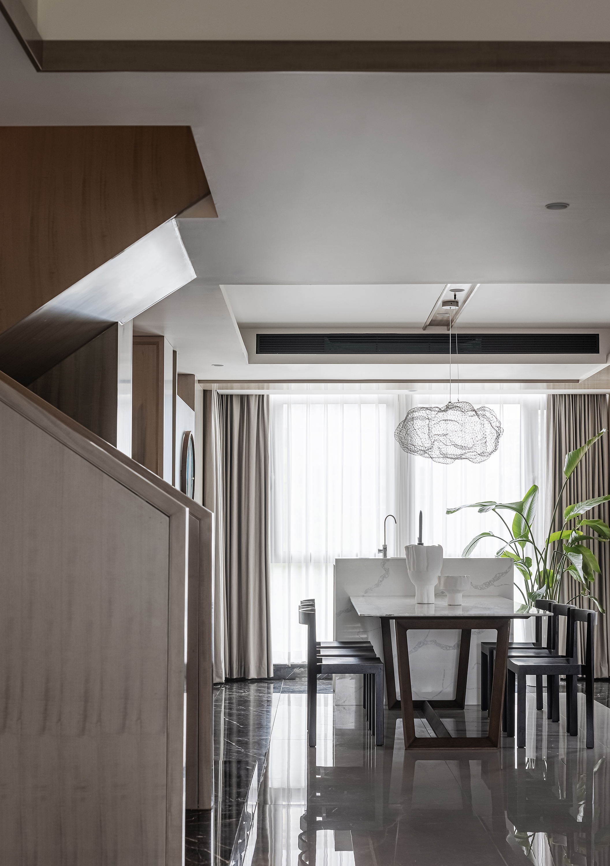拆除楼梯与客厅之间隔墙,让空间一体化,南北通透,视线开阔,统一连贯;