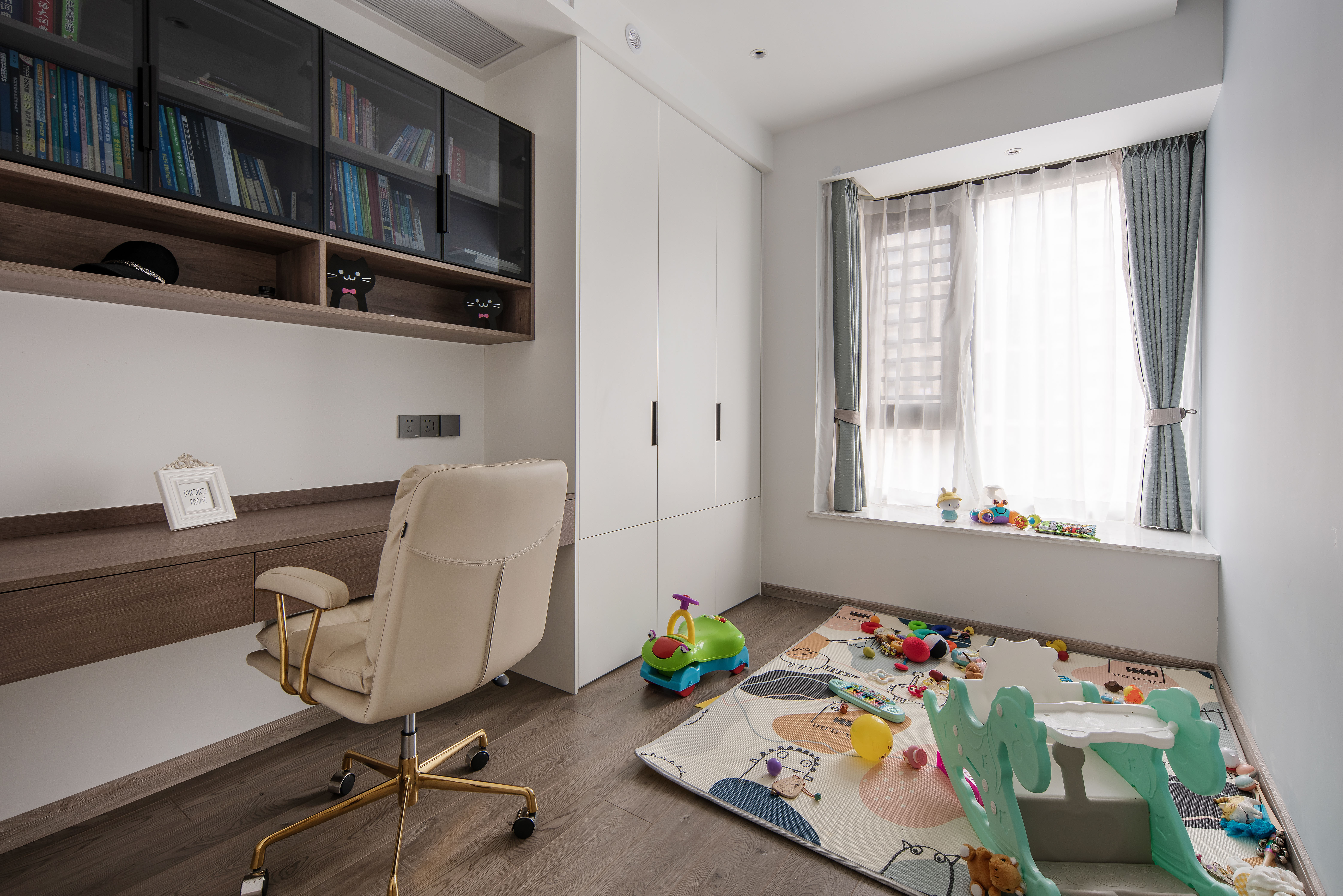 多功能形式的房间给空间带来更多的可能性日常生活中可以用作亲子空间,等小朋友长大独立睡觉可作为小孩房。