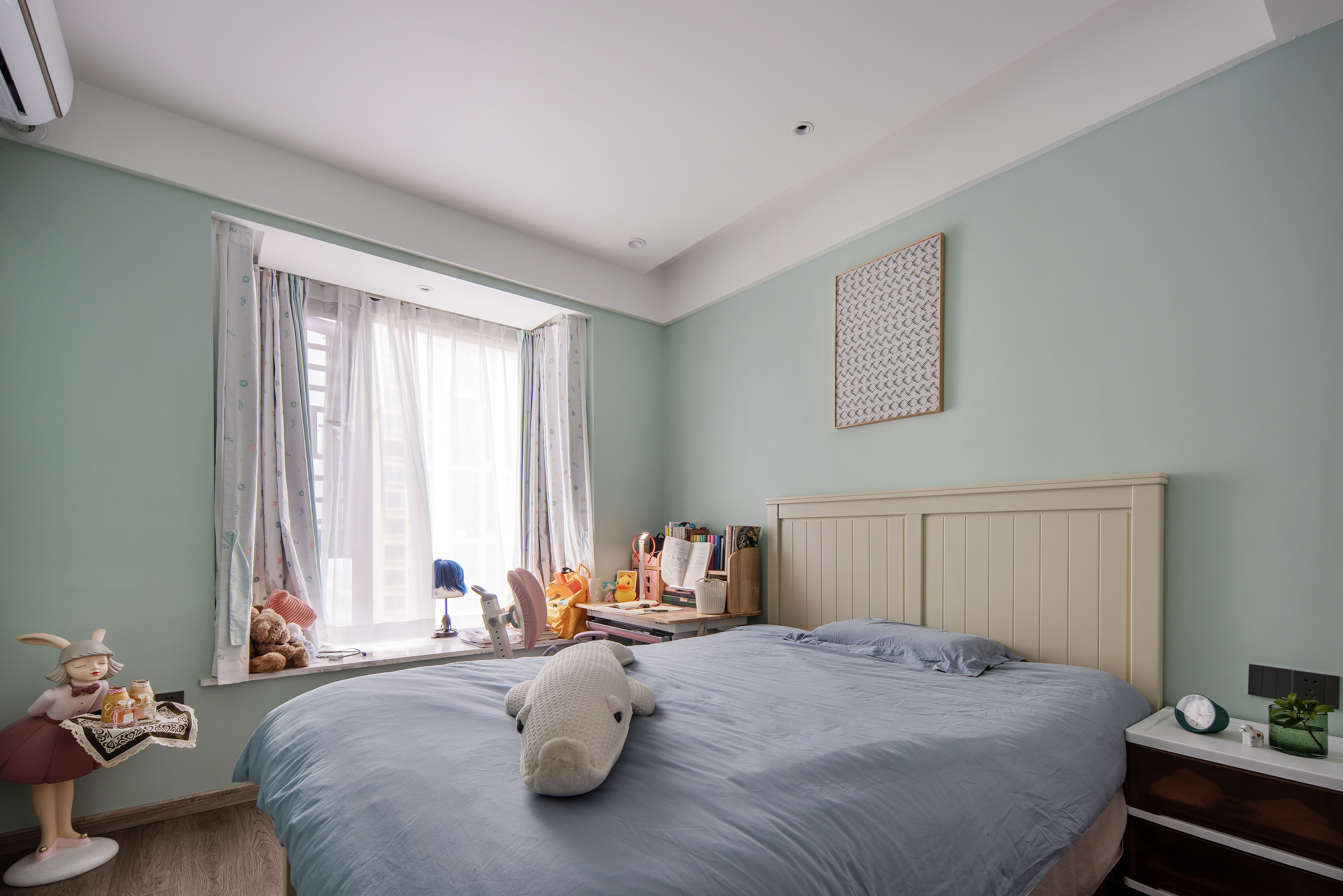 空间中青色的运用,让女孩房的气质如森林般静谧
