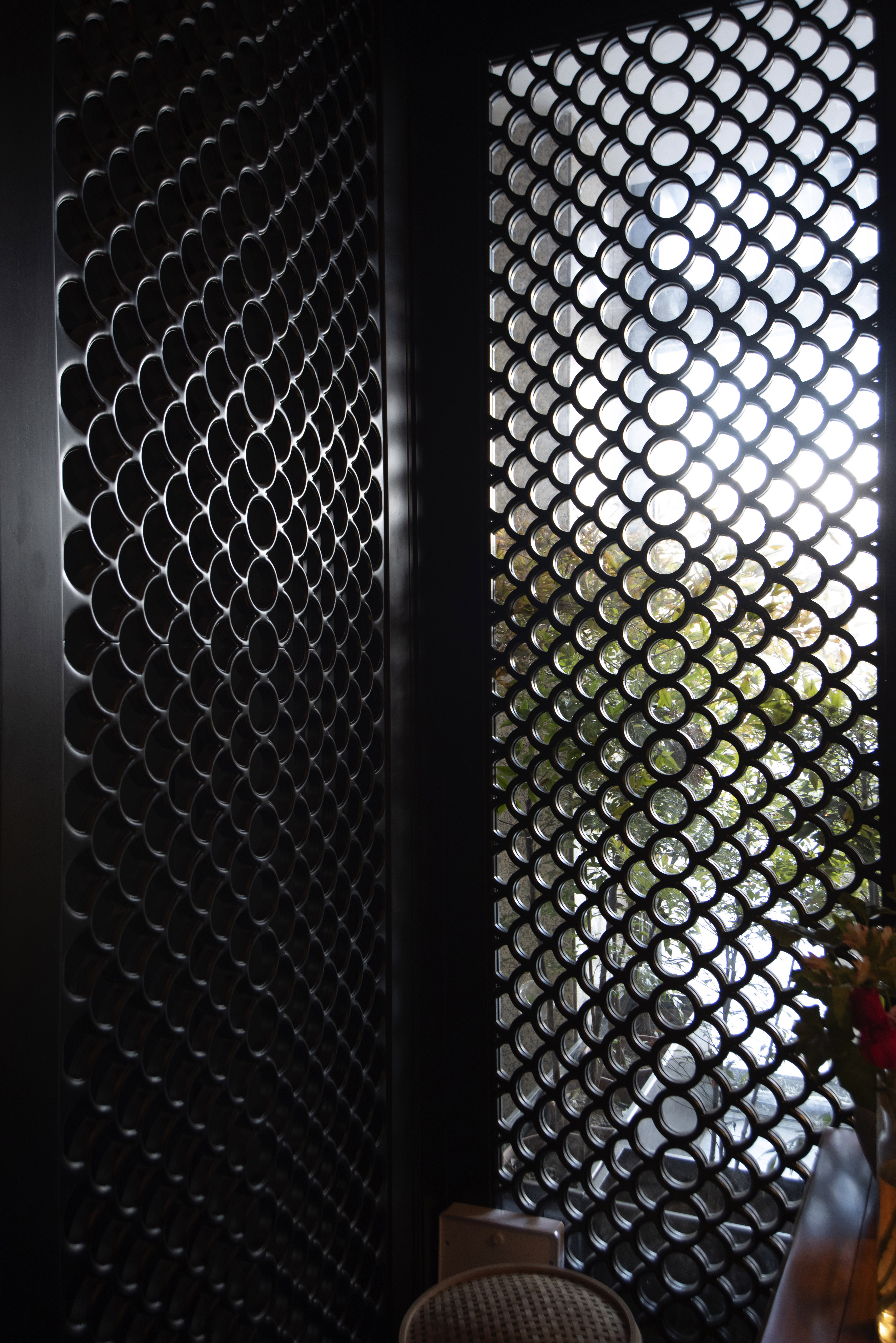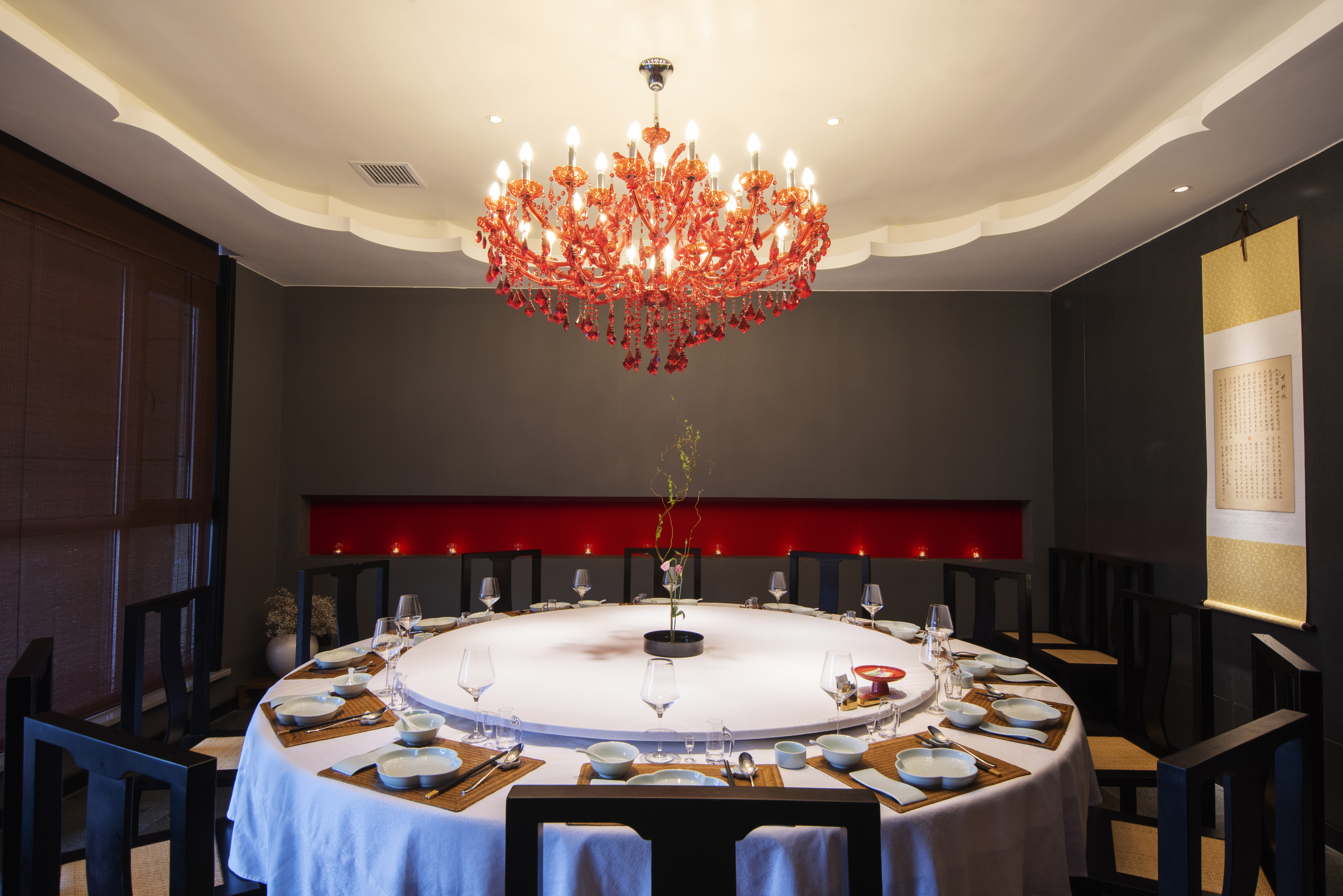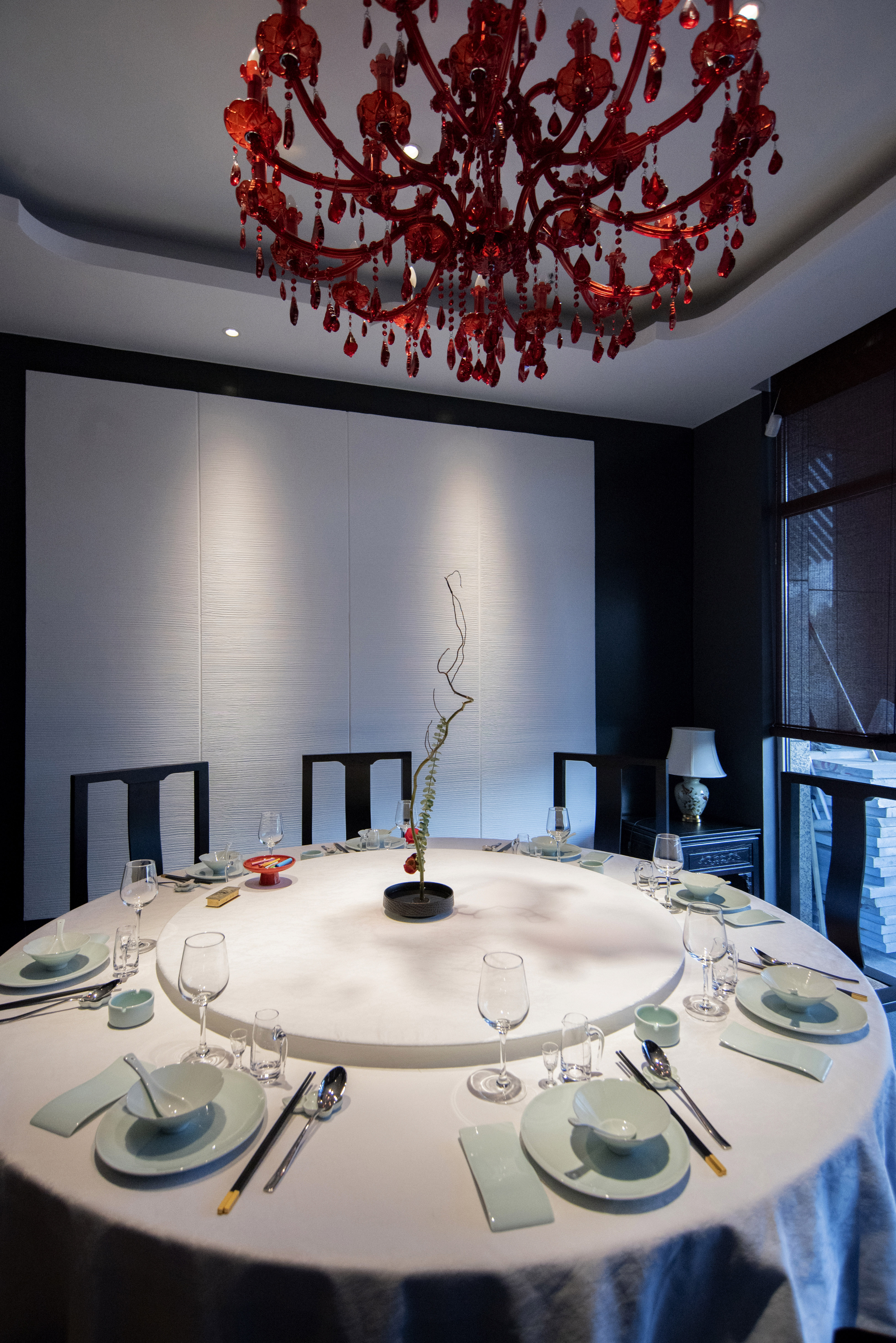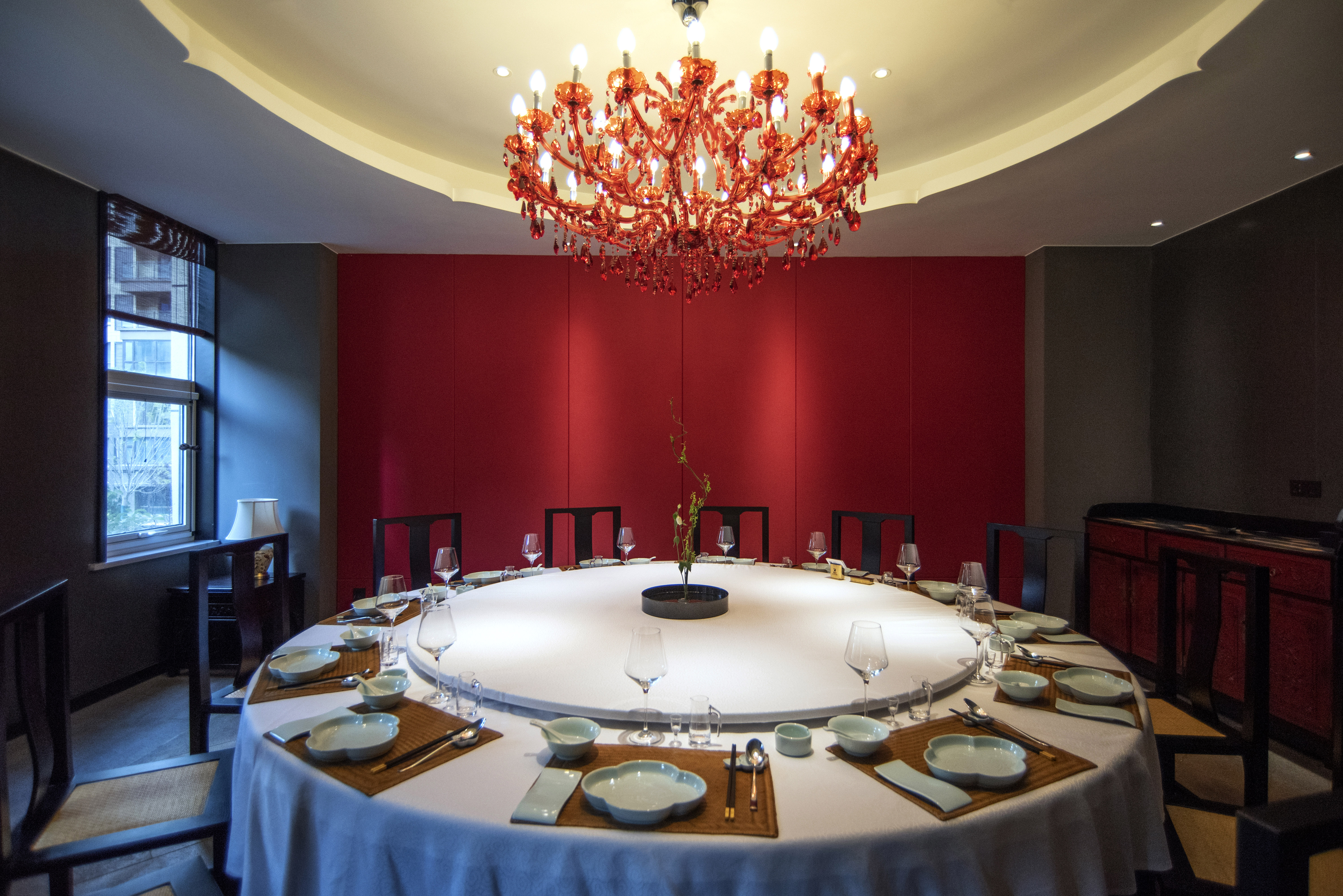 极白茶语是本地一家经营安吉白茶和淮阳菜融合高端餐厅。极白,取禅宗始祖达摩修禅品茶之意,故业主期望设计一个有禅意但又不“处处见佛像”,把“佛在心中”茶和餐文化相结合的餐厅。故本案采用原石铺地,用做旧方式去除新石头的戾气,使之既有原始的美又有岁月的积淀感。本案大量采用原生态竹子、干支,新芽、花枝、水果作为装饰,让就餐的人们更有贴近自然修心品茶优雅之处。为了营造隐喻的禅意,本案造型顶都采用了“如意莲”花边碗造型,配深红色的水晶灯犹如佛前琉璃盏;走廊两侧的飘腊使人仿佛进入神圣的殿堂,放松身心,洗涤心灵。
