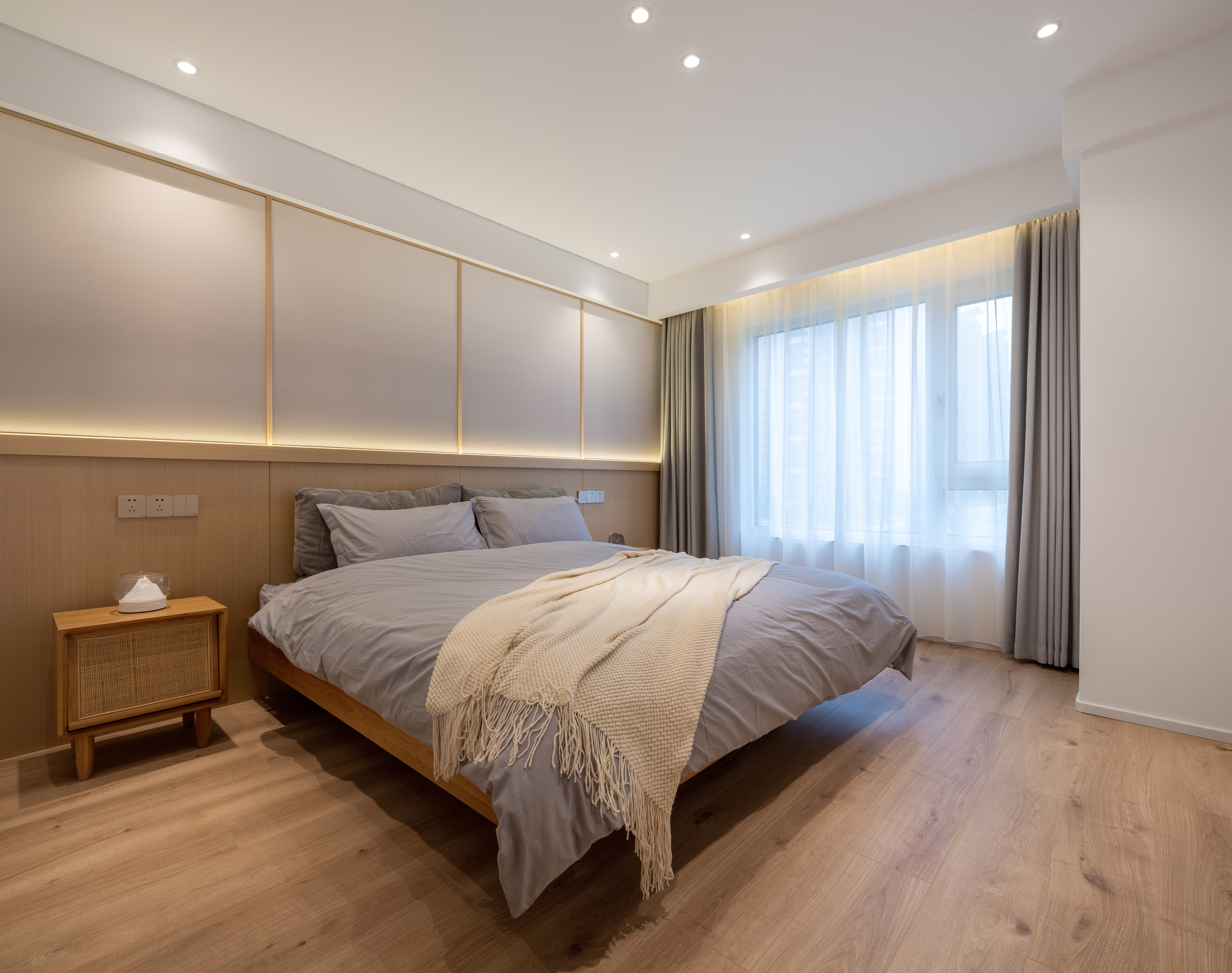 项目定位:定位日式人文机能宅,注重空间的互动与采光,同时注重收纳实用。