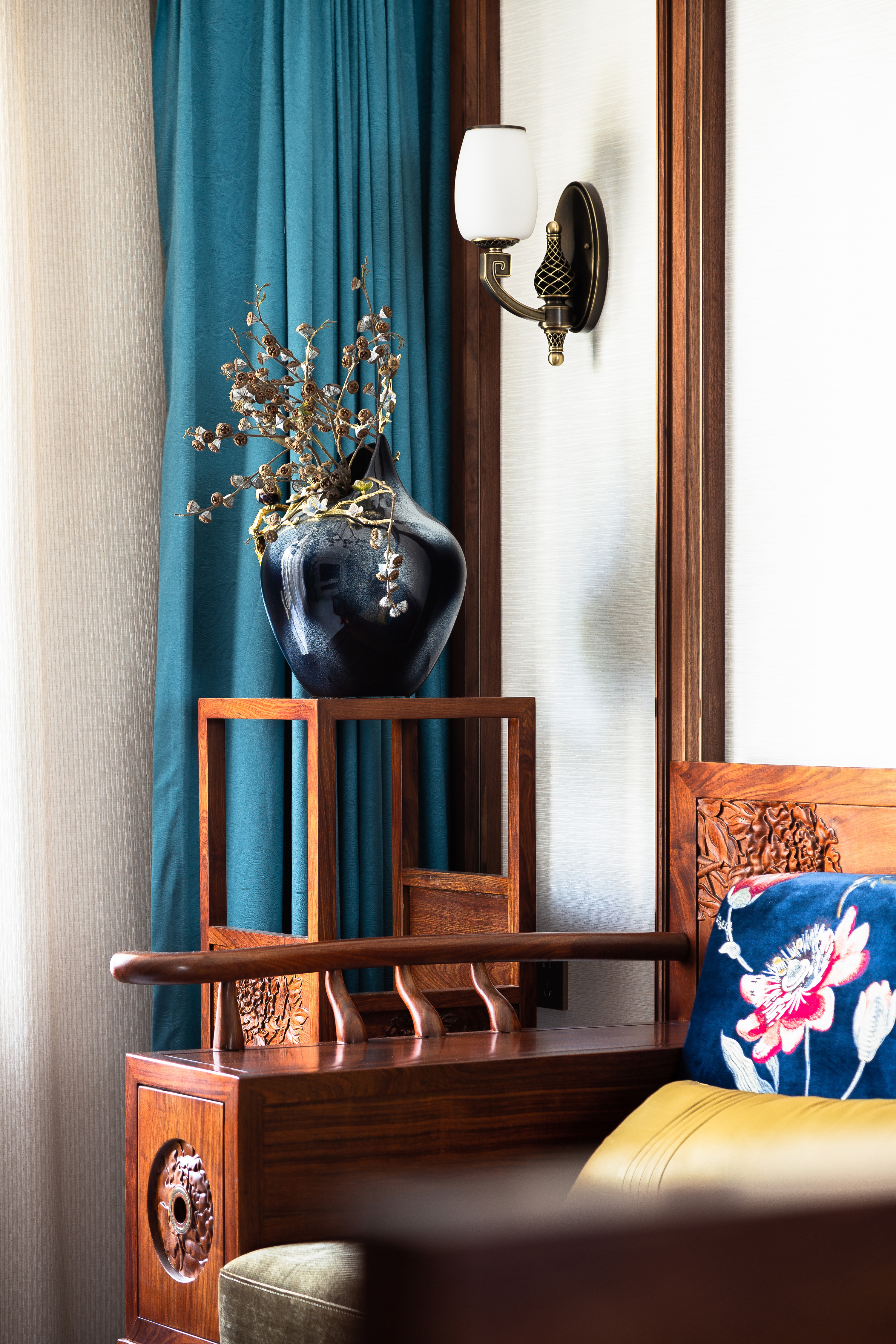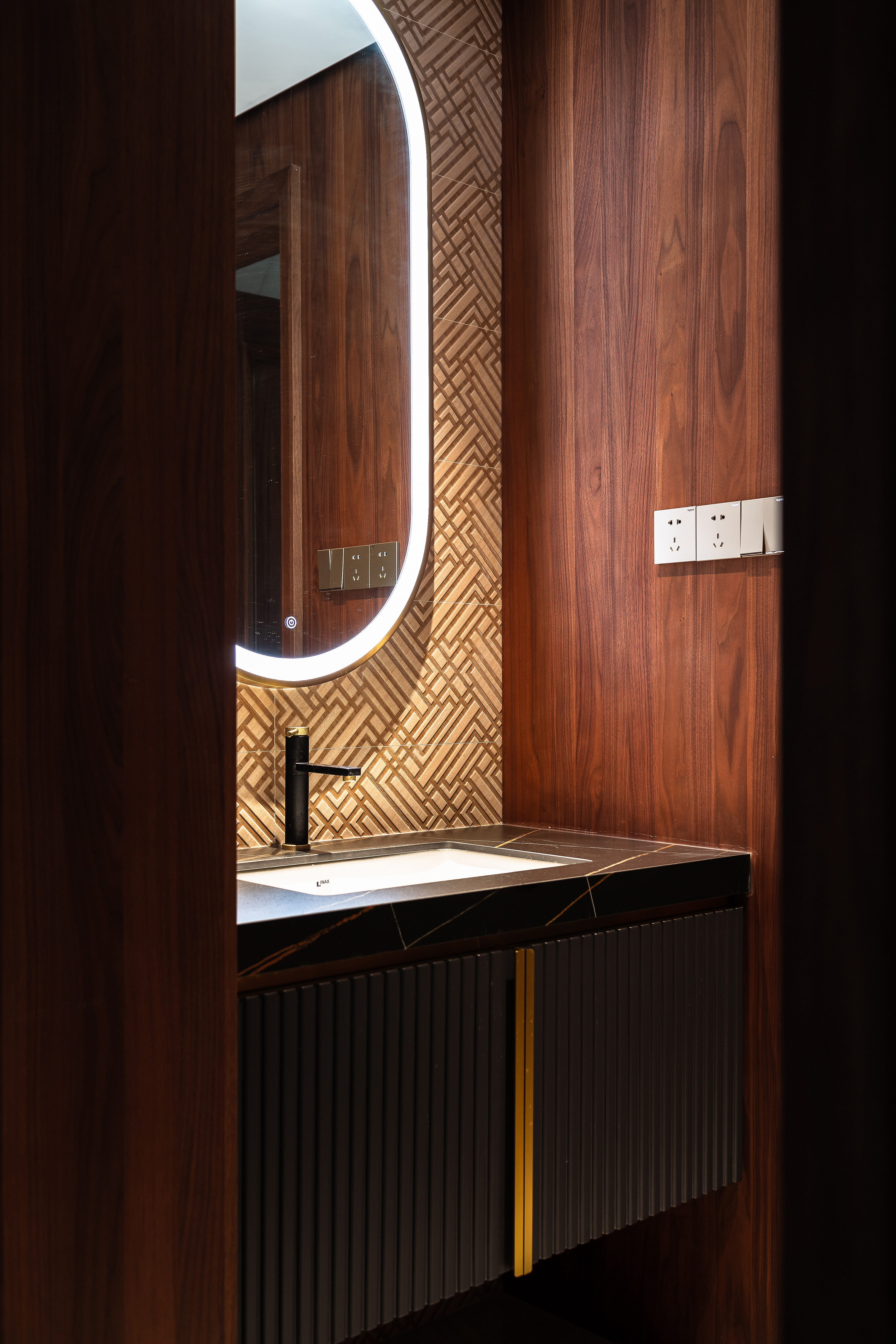 空间意境:家具在设计开始前已确定好,后期设计过程中作品的木质色系 灯光色温 软装搭配等均以命题式的方式展开,从而达到主体家具与硬装空间的完美契合。