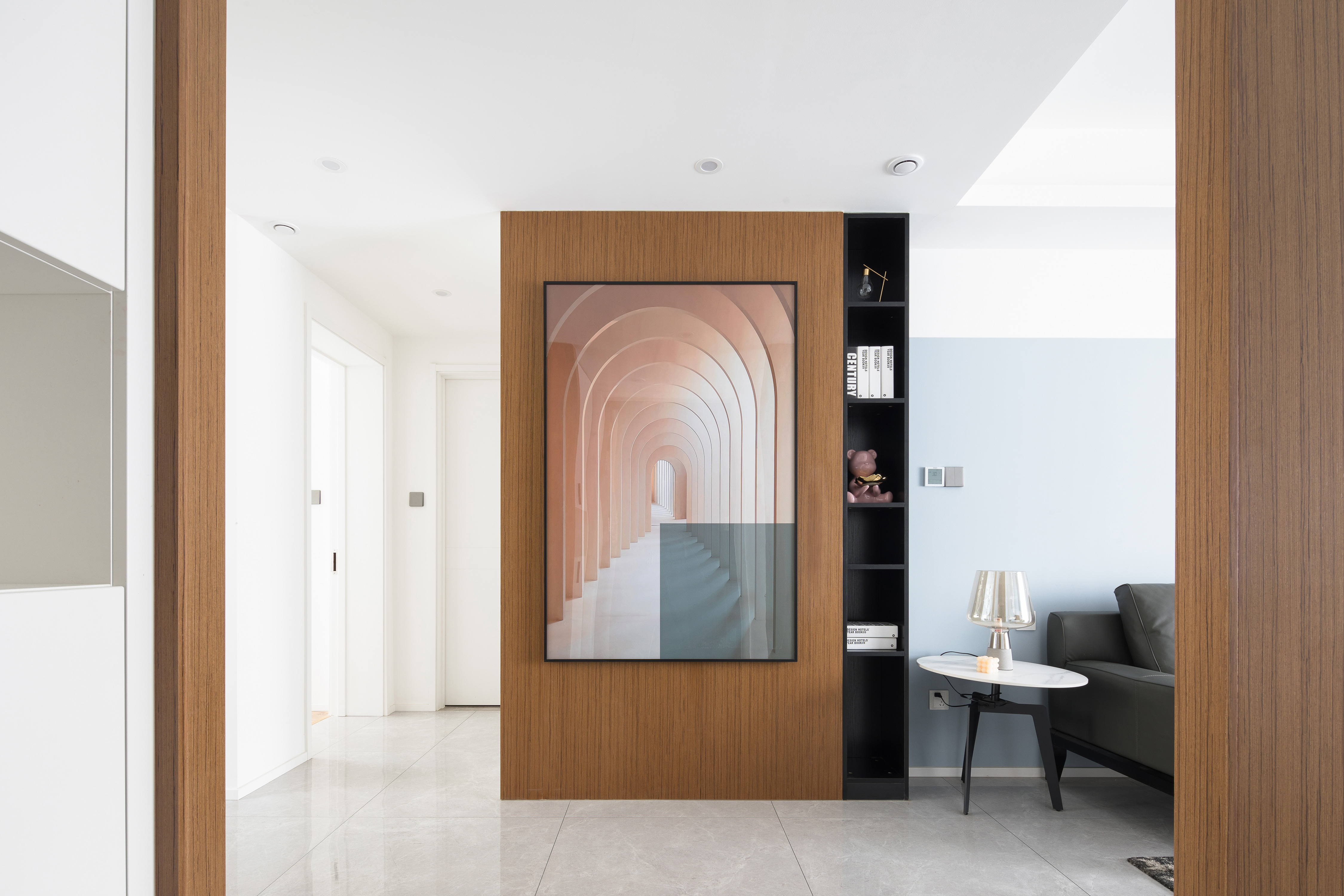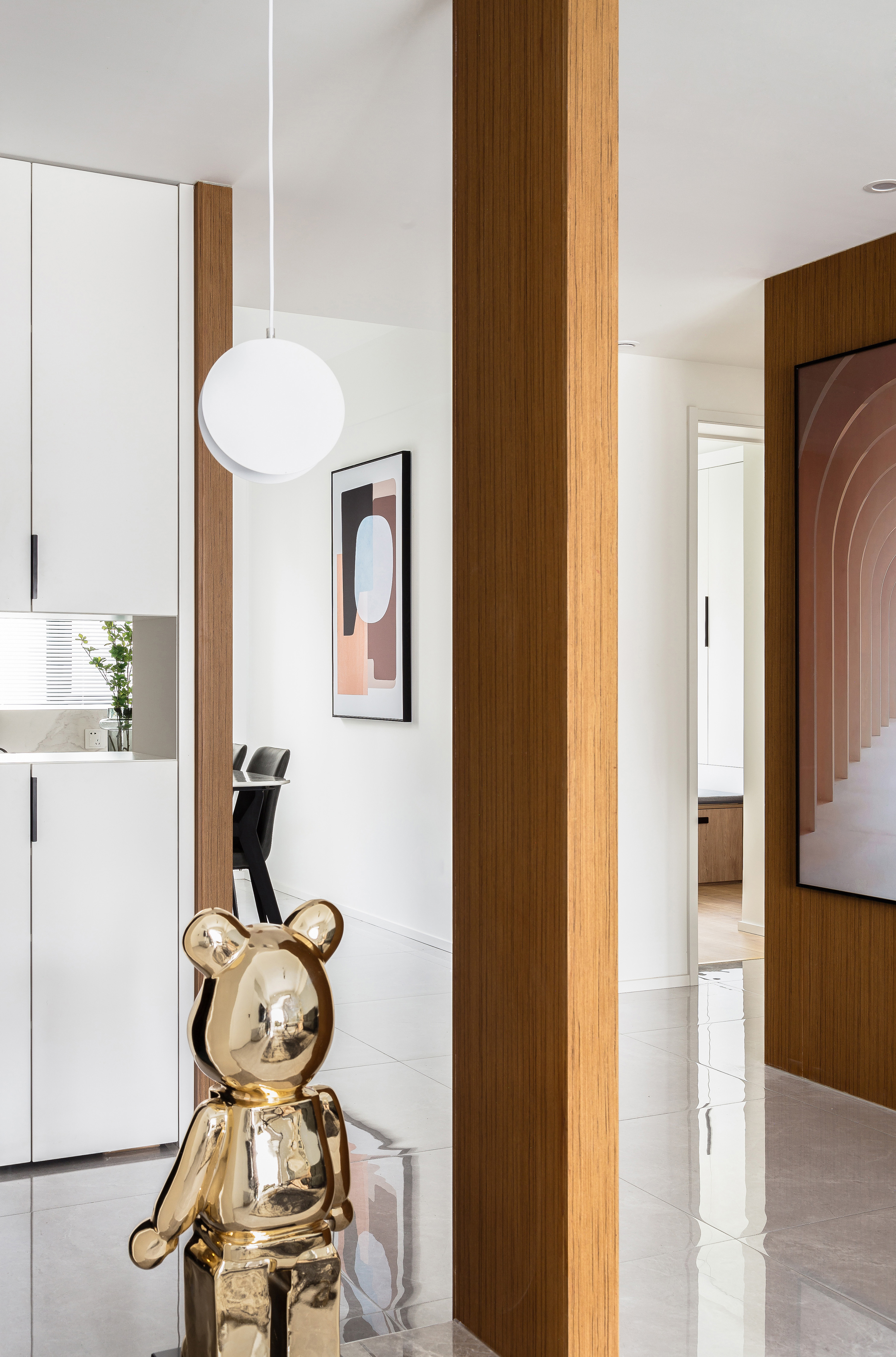 项目定位:该项目为一对新婚夫妇的婚房,对生活有一定的品质追求,对于原户型没有玄关功能,后期再做玄关及空间规划上重新划分重组,在软装上更加多元化及丰富性,给他们提供一个舒适有仪式感及温暖的居所。