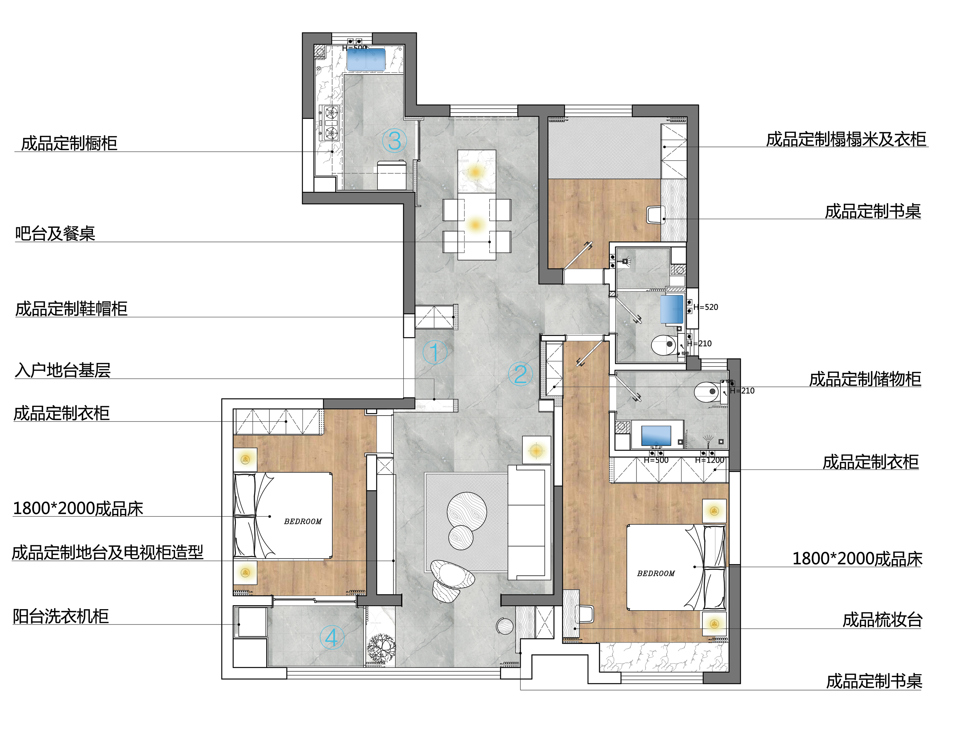 3.餐厅及厨房增加岛台操作区域,增加厨房和餐厅的互动性 -