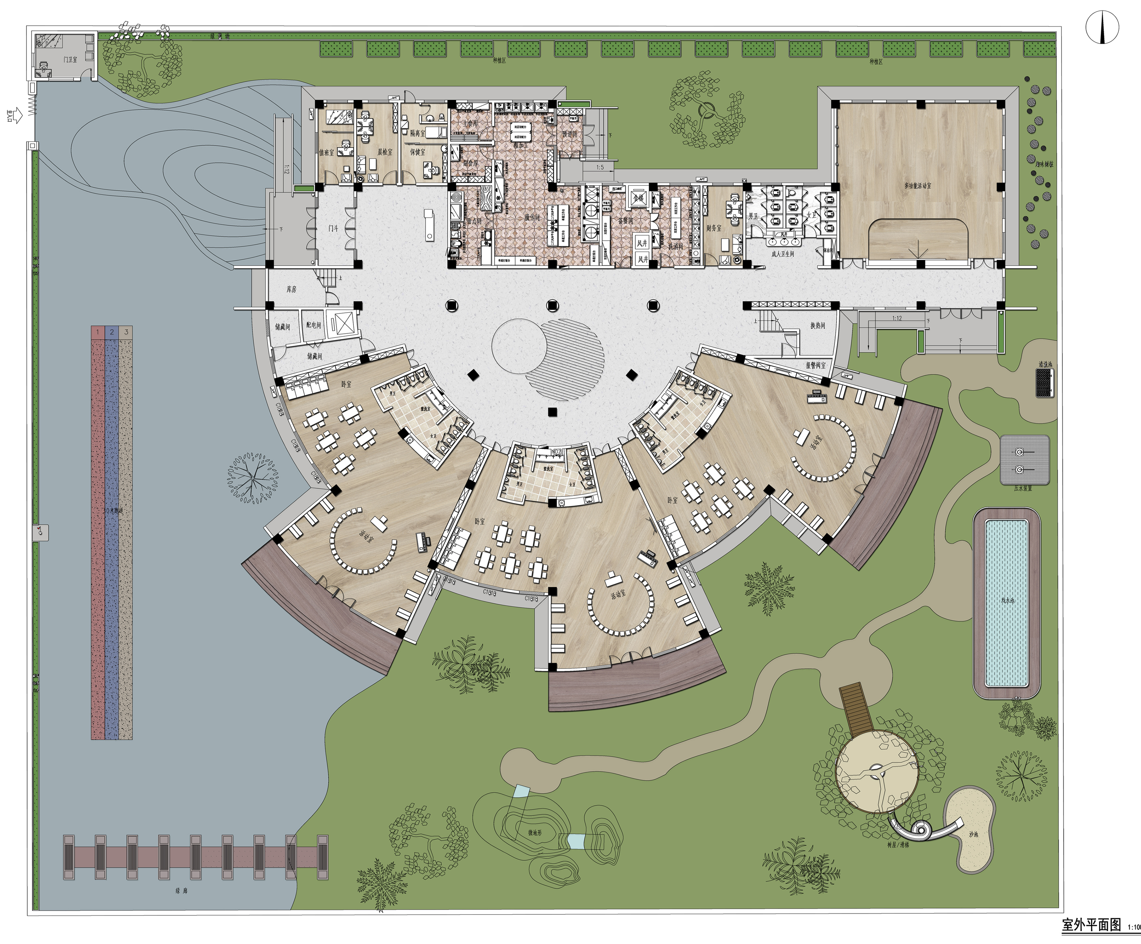 用户体验:我们保证了紧密工期和经费需求,使项目有最高的完成度,设计很好的服务了使用者。目前园里已经开放使用,项目的得到了园区工作人员的认可,我们看到孩子们在宽敞的空间内自由的奔跑,在室外的戏水池里尽情玩耍,在绿色的草地上奔跑、翻滚、写生画画。对教育空间设计的意义最终回应了教育内容。