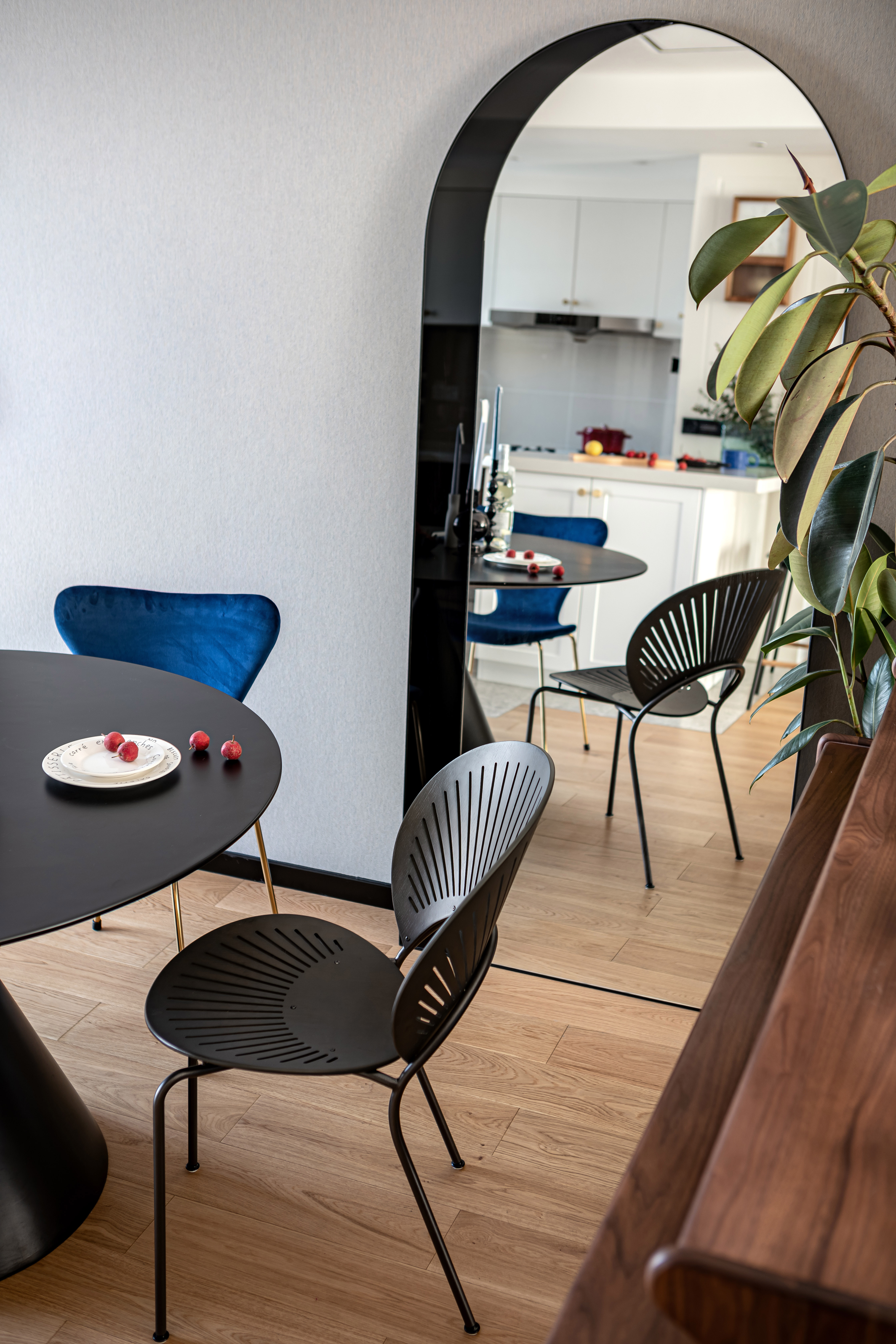 拱形落地镜塑造了一个虚实的场域,创意造型丰富了空间的层次,赋予现代时尚