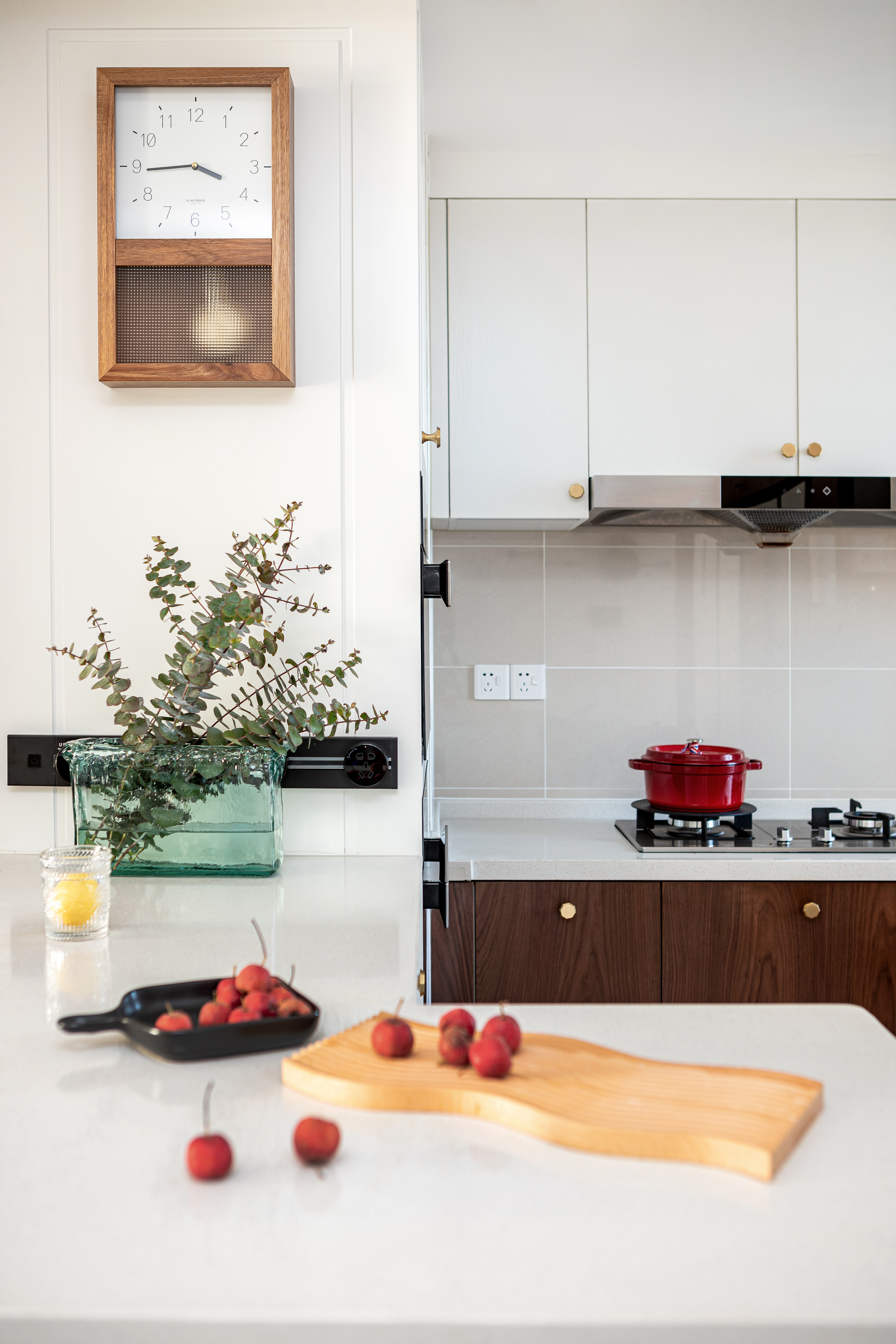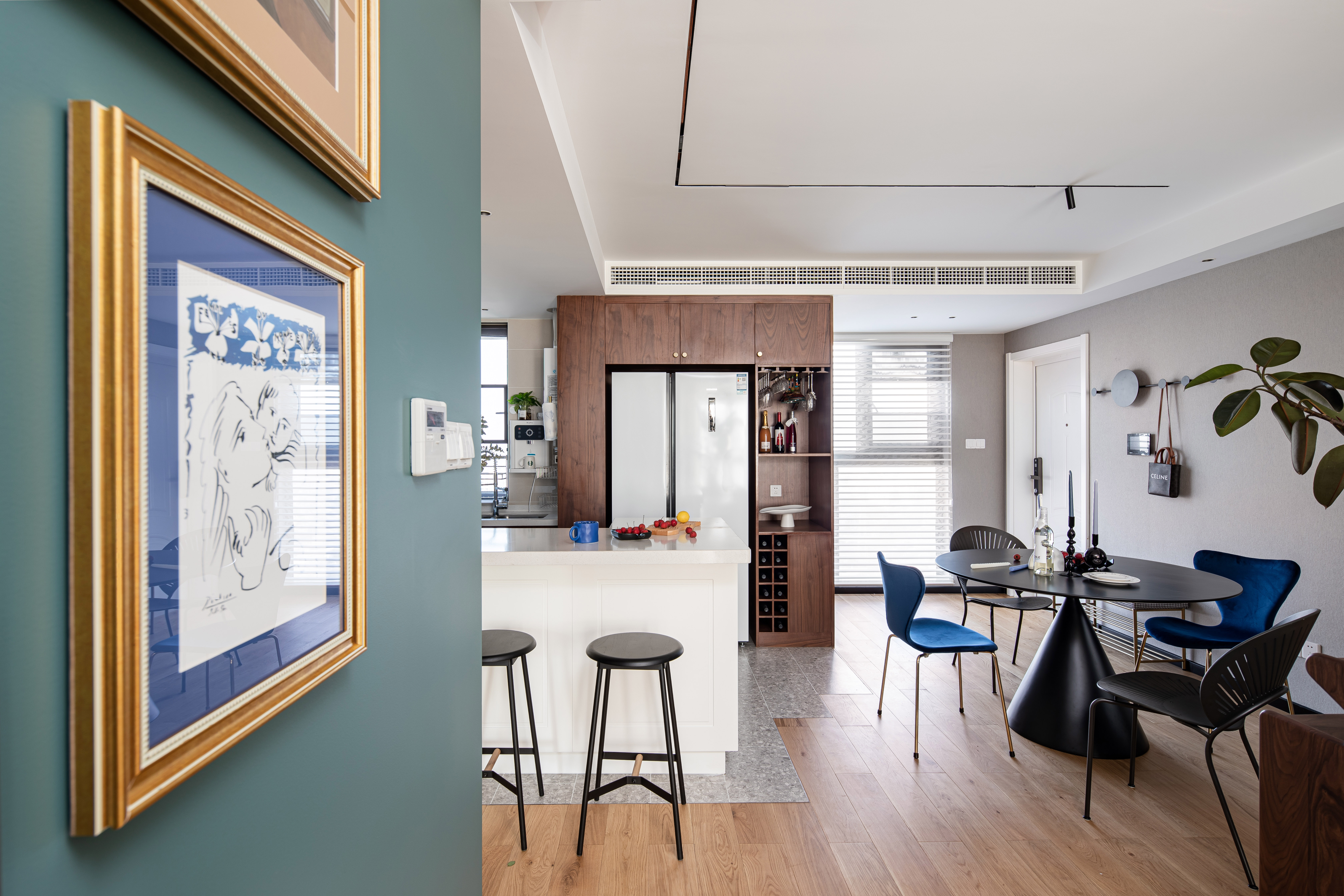开放式厨房包含中西厨的功能,L形岛台为女主人提供了宽阔的操作空间,同时延伸了吧台的功能,在聚餐会友中塑造更多的情感与回忆