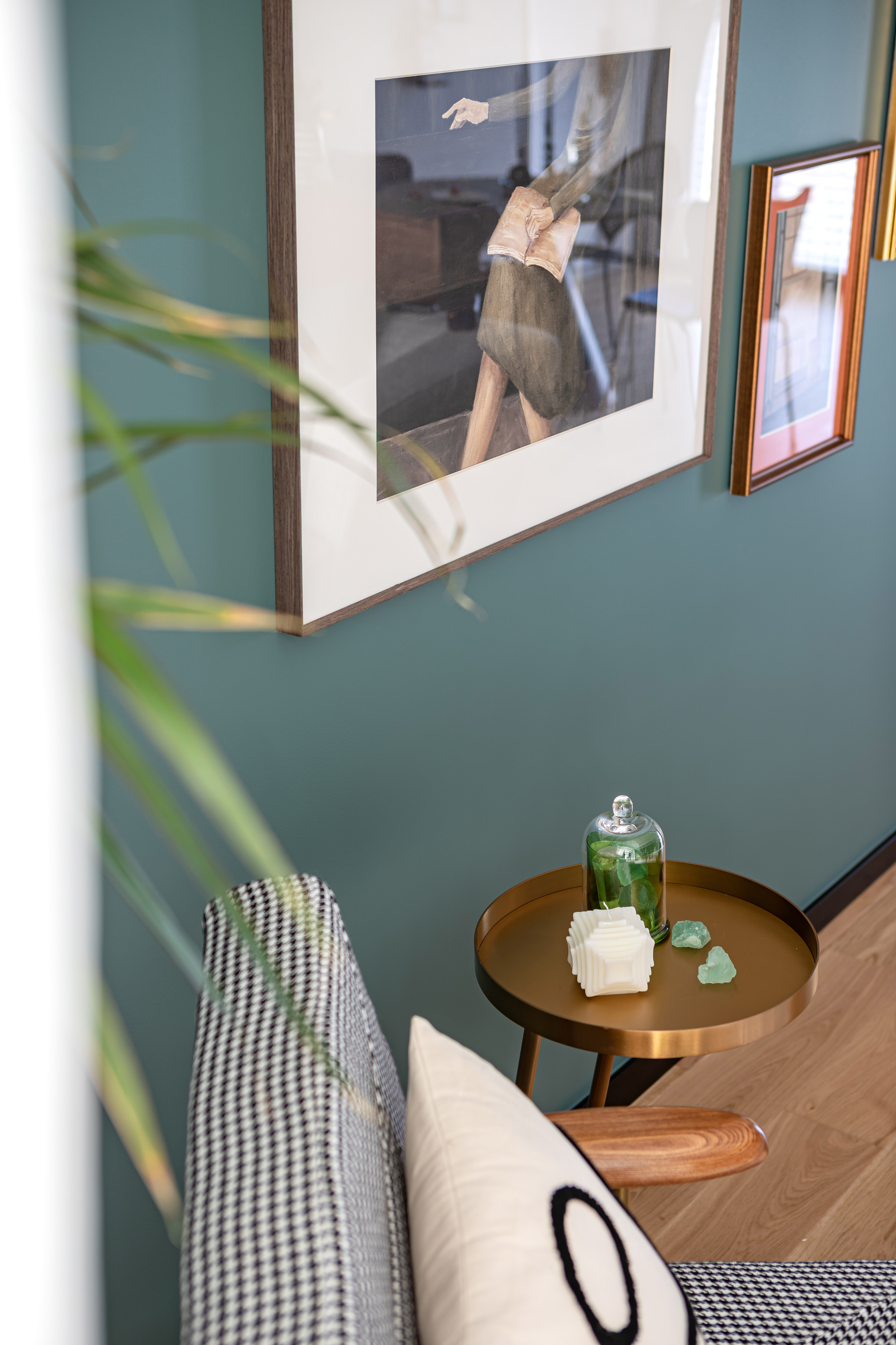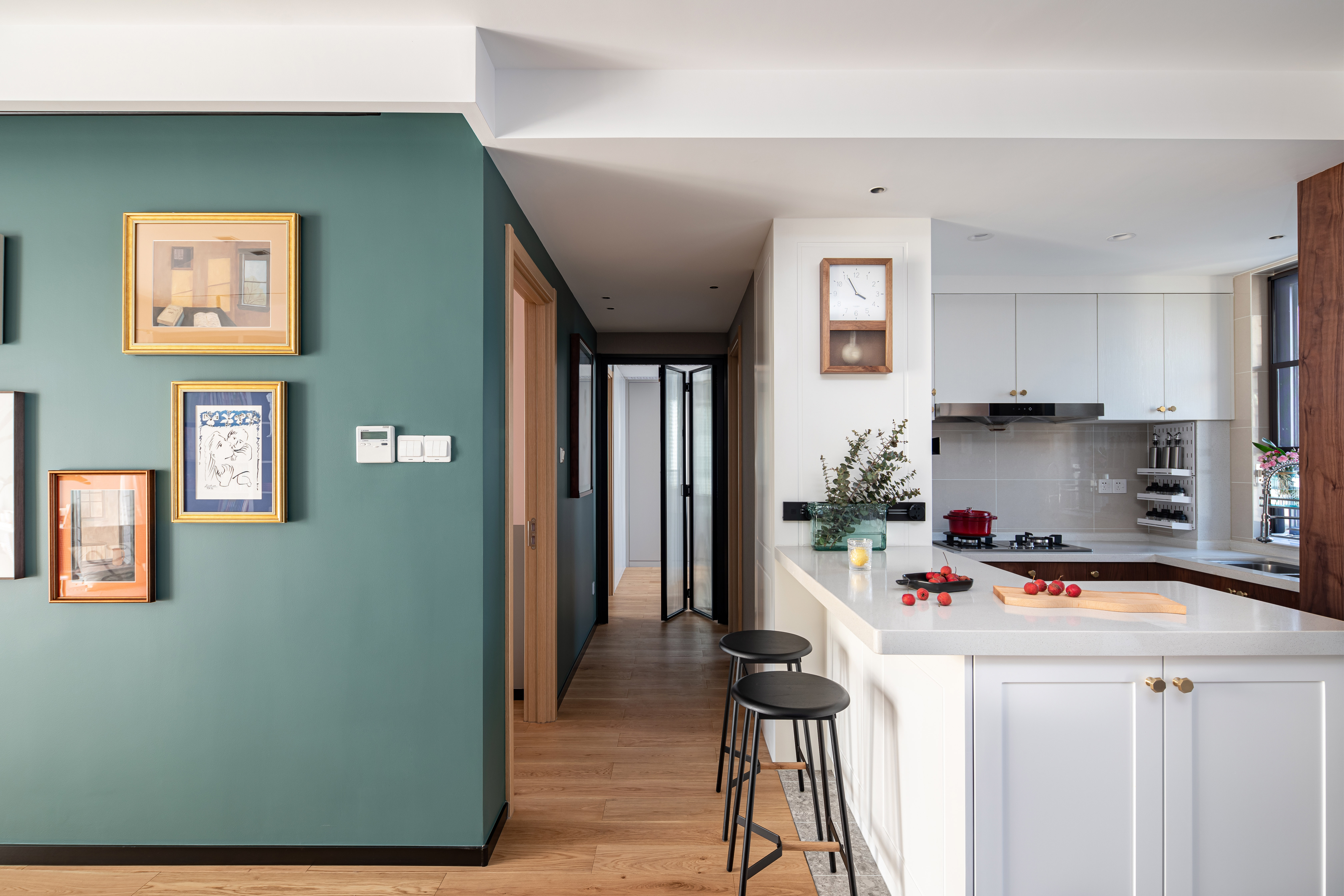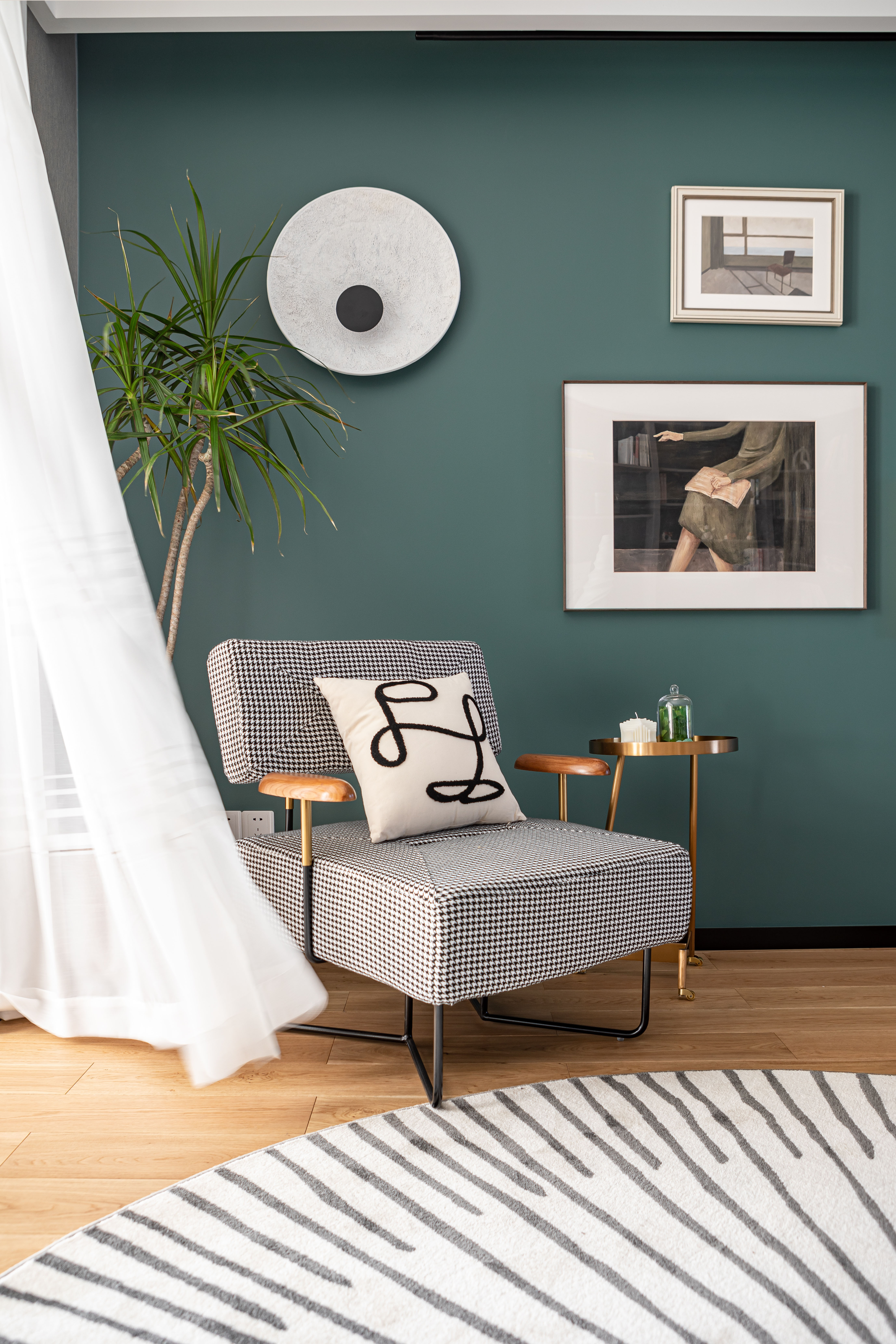 空间意境:大面积描摹经典的复古绿和蓝色作为主调,制造与现代家具不经意的碰撞,尽展居住者个性自由的生活态度。