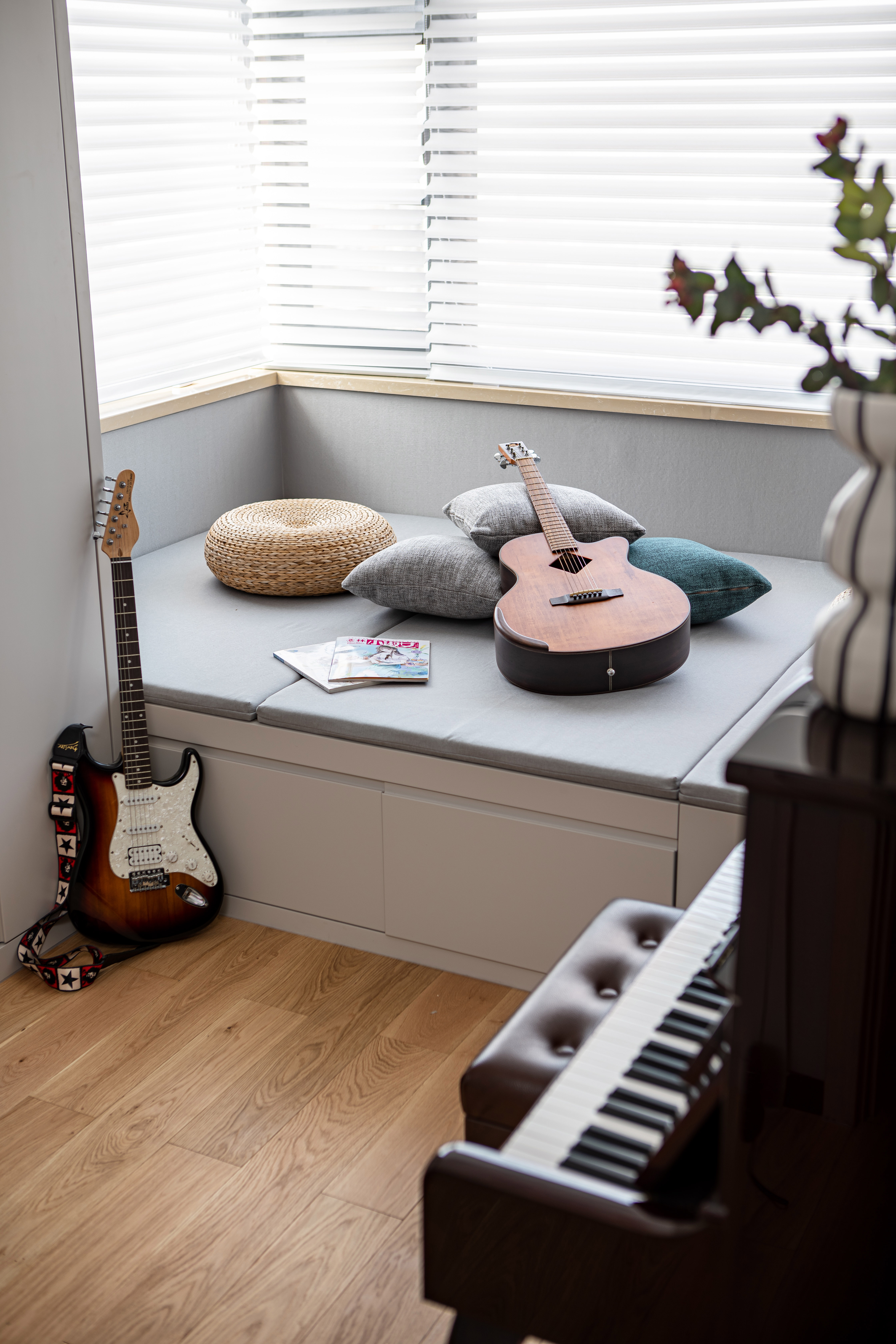 琴房是孩子艺术徜徉的领地,设置了榻榻米、衣柜等延伸功能,可作为家庭活动娱乐和储物场所,丰富了功能应用,增加了空间利用率