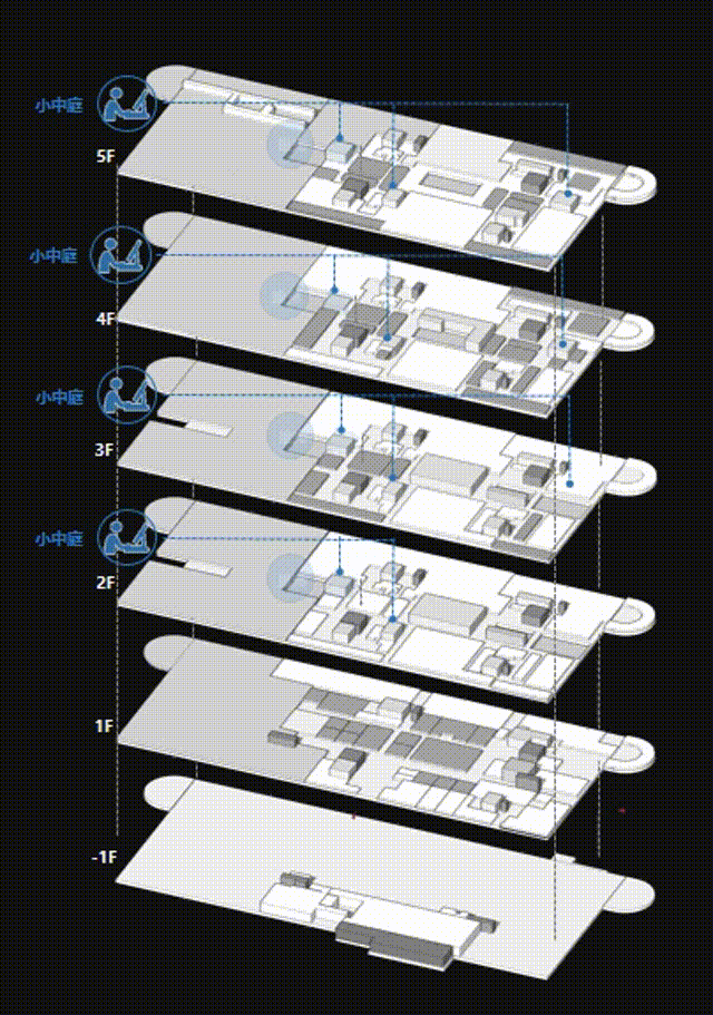 在特殊情況下可滿足不同類型的場景化功能需求,靈活多變,提高中庭空間的使用率,豐富人與空間的互動性。