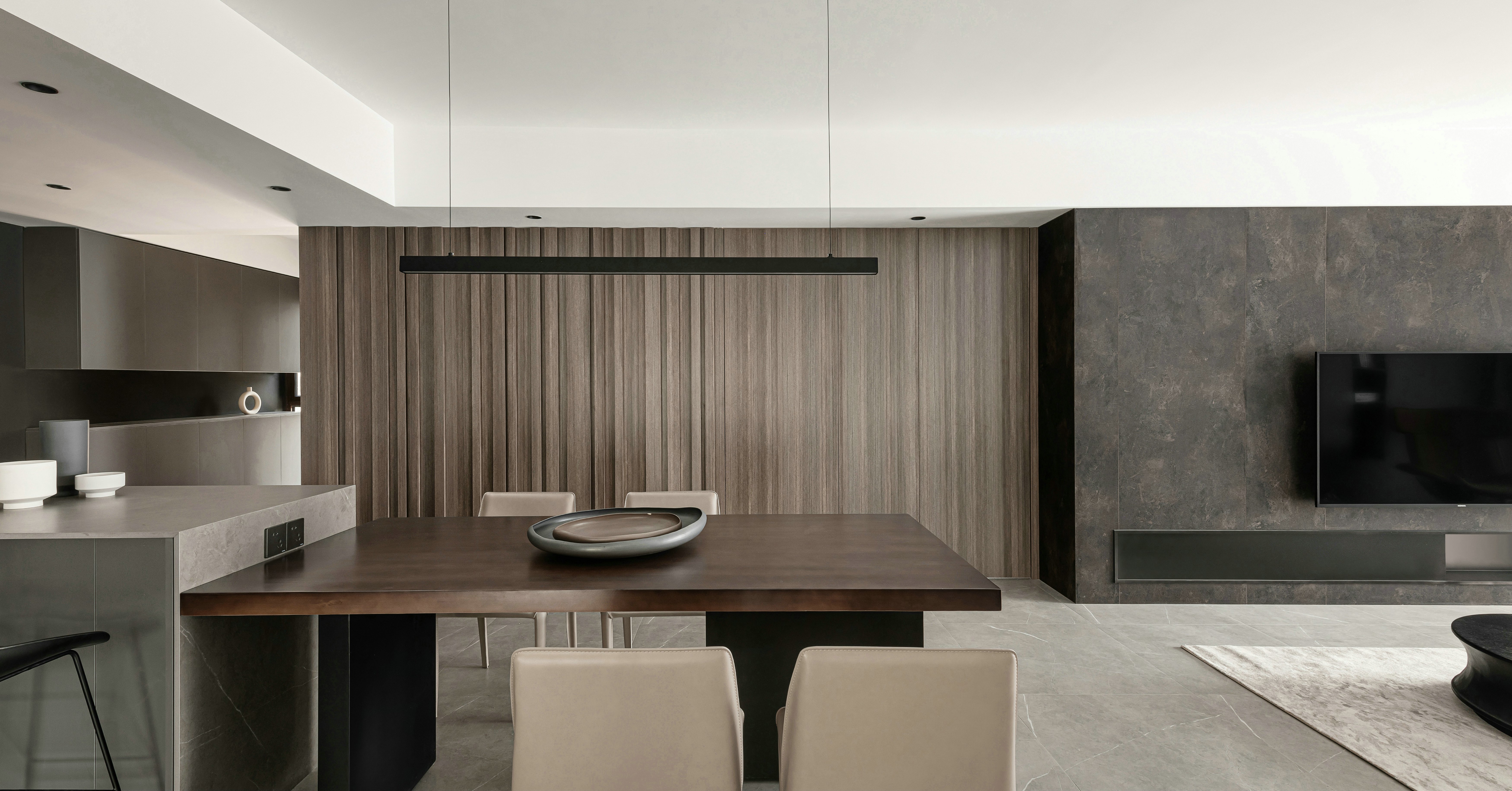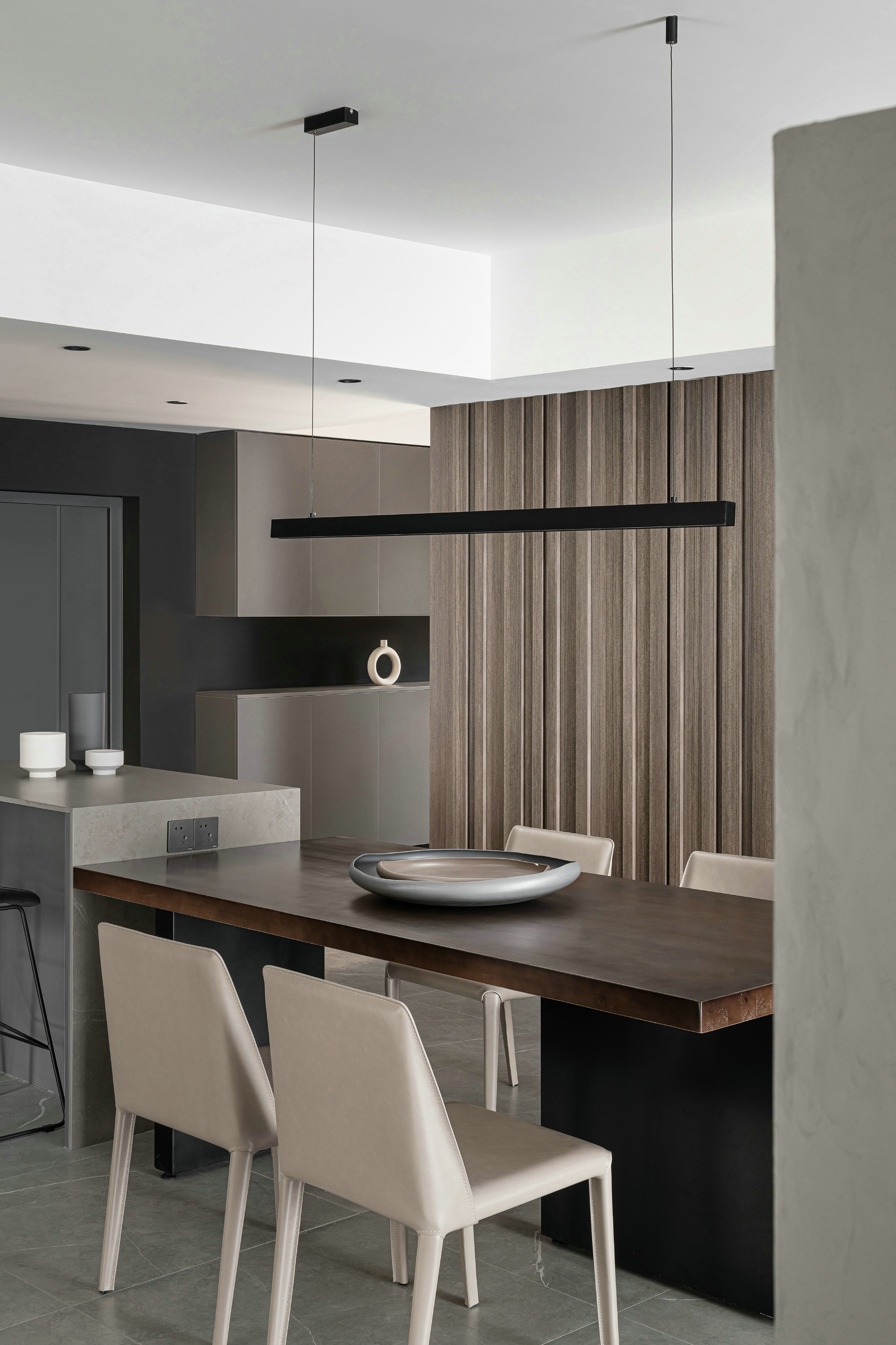 岛台与餐桌的一体式设计,营造了融融的会客式餐厨空间。LDK一体化生活情境,让家的氛围更浓烈更温馨。 The integrated design of the island table and dining table in the kitchen creates a fusion dining and kitchen space. LDK's integrated life situation makes the home atmosphere more intense and warm.