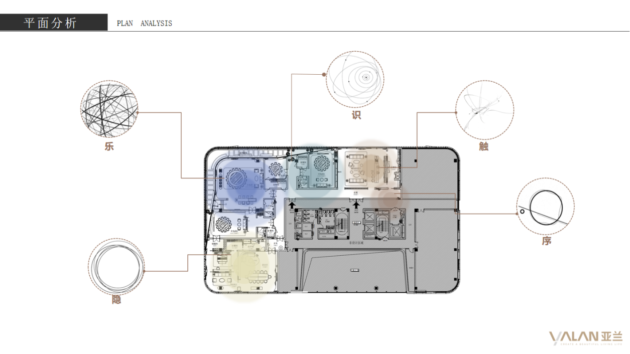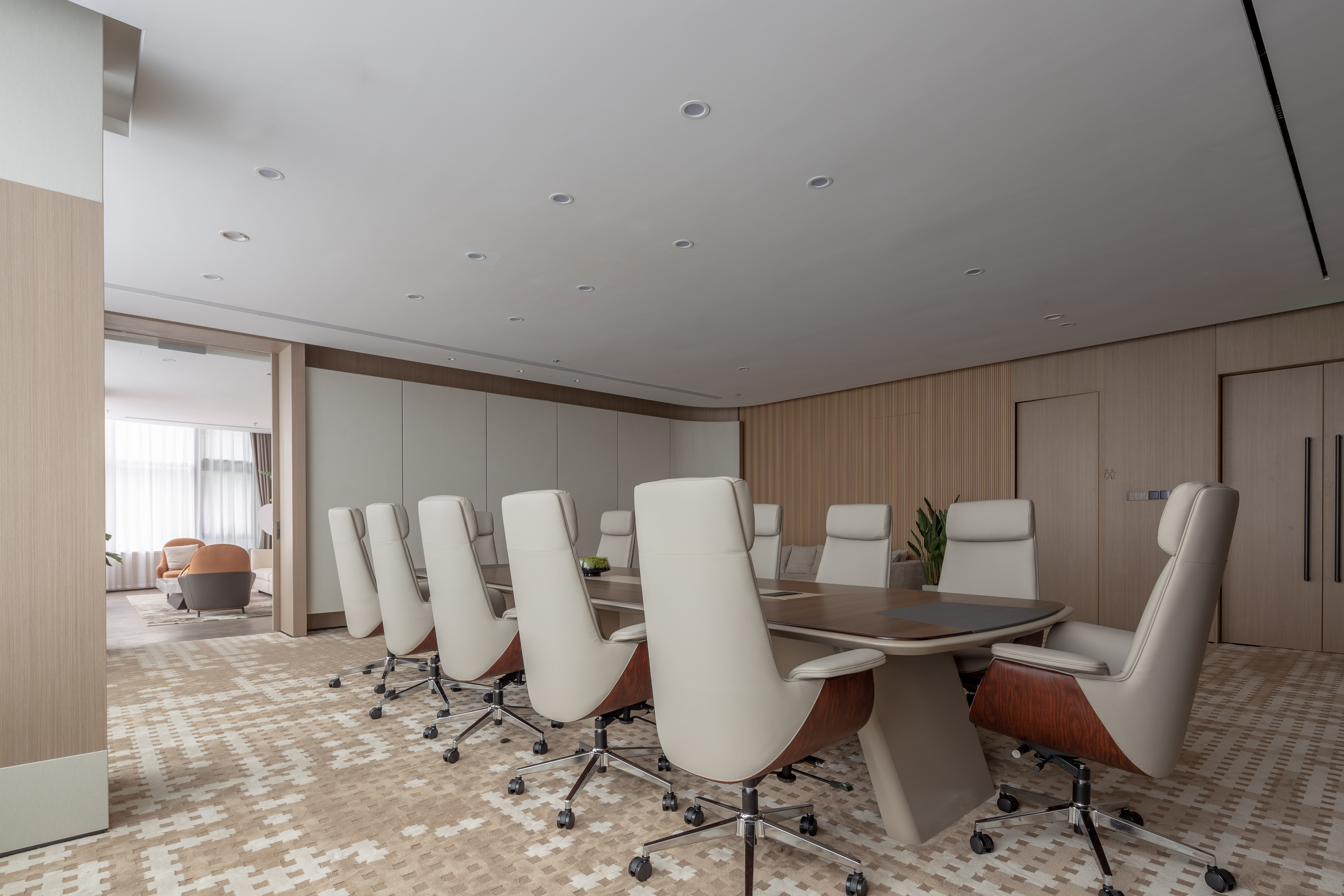 自入口商务洽谈区到包厢再到会议室,由动到静层层递进,设计师引出“序、触、识、乐、隐”五大板块,形成丰富又连续的空间秩序。设计赋予了空间灵魂和生命力,空间可以传达出不同的情绪。在框架中分割空间、处理细节,从而为空间带来柔和安定氛围,又不失精英气质。 -