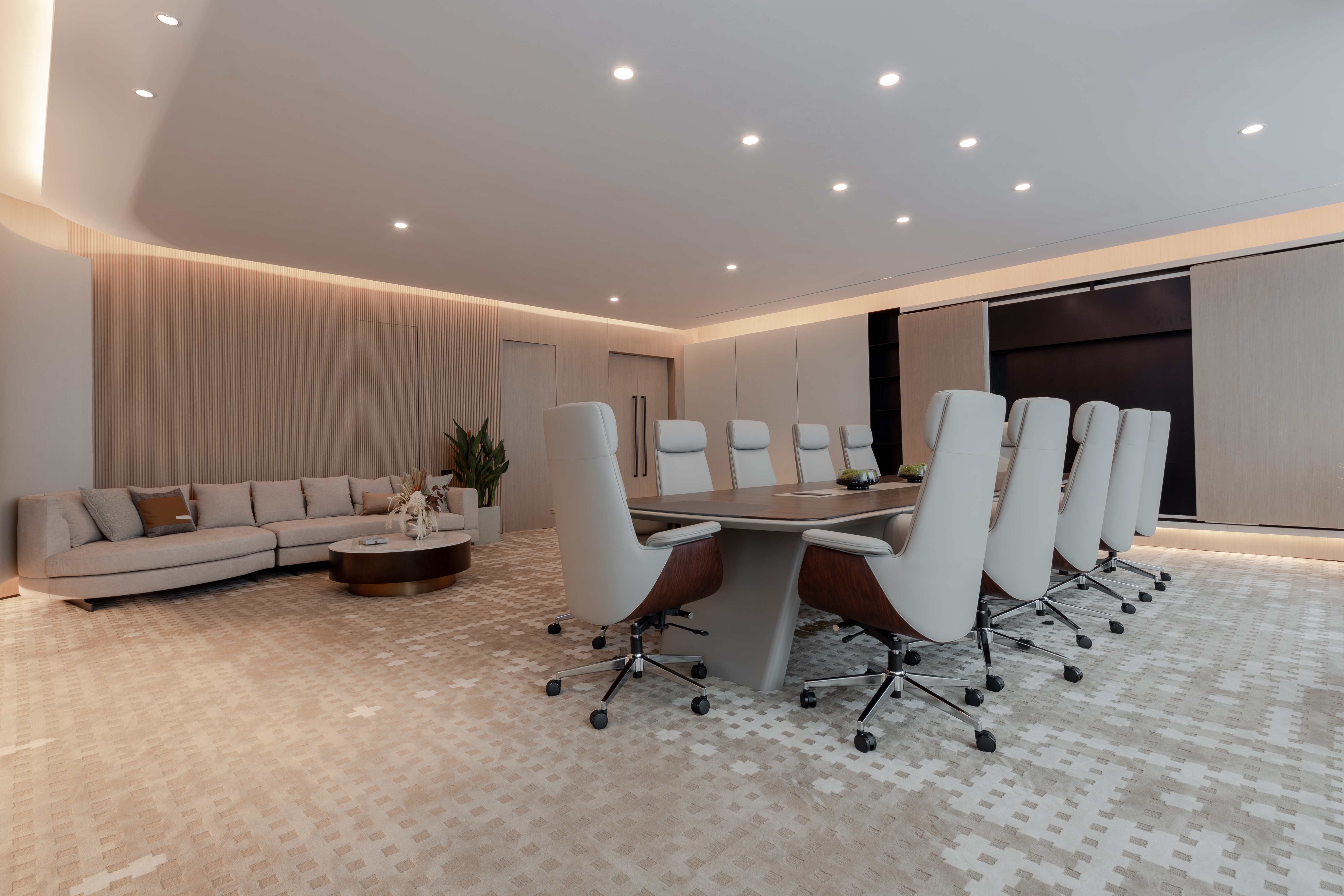 设计师参考五星级酒店行政层的设计理念,用动静相宜的手法将空间划分成五大空间,相较于传统的会所空间,本案的室内设计更为简洁,动线更加流畅。 自入口商务洽谈区到包厢再到会议室,由动到静层层递进,设计师引出“序、触、识、乐、隐”五大板块,形成丰富又连续的空间秩序。设计赋予了空间灵魂和生命力,空间可以传达出不同的情绪。在框架中分割空间、处理细节,从而为空间带来柔和安定氛围,又不失精英气质。