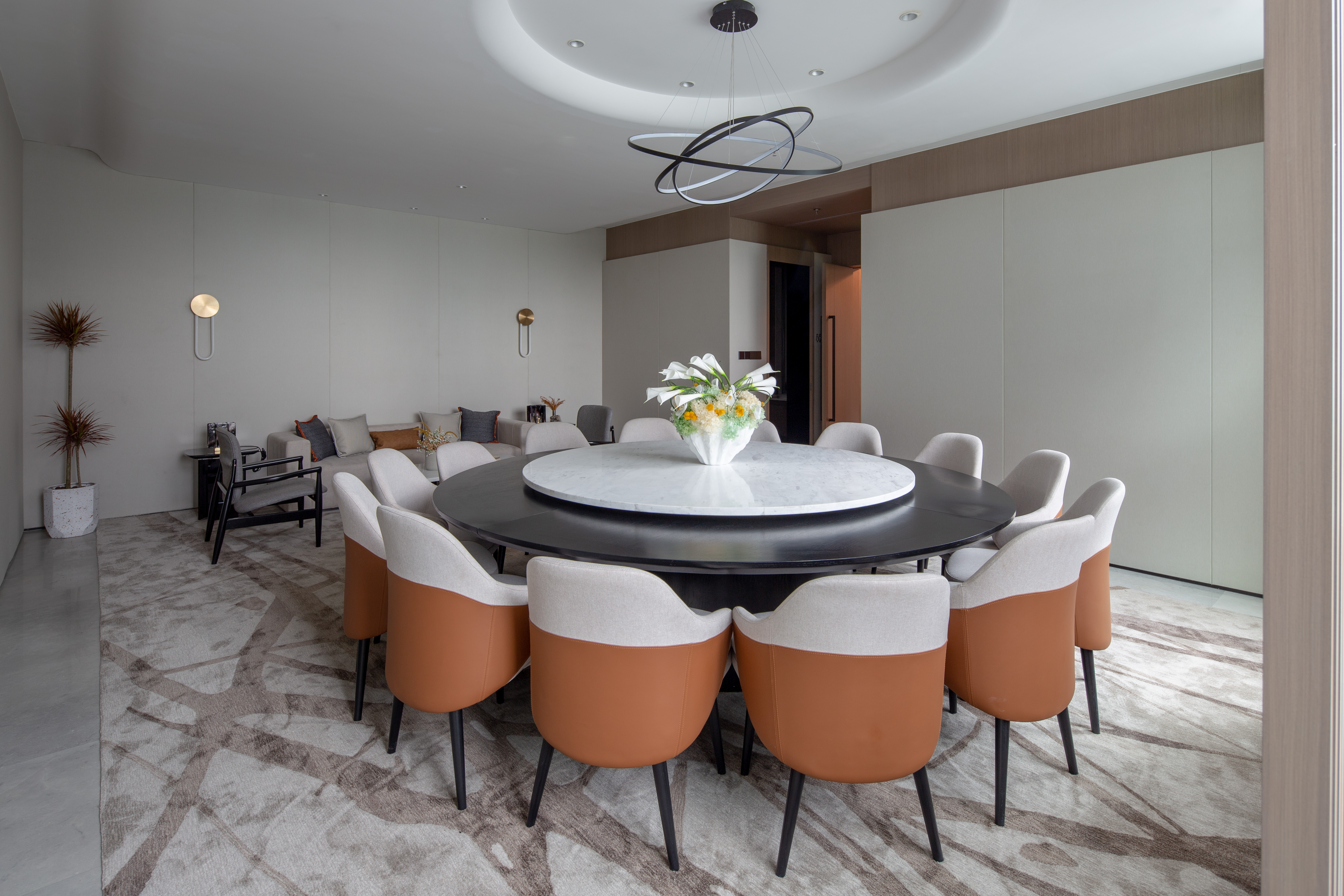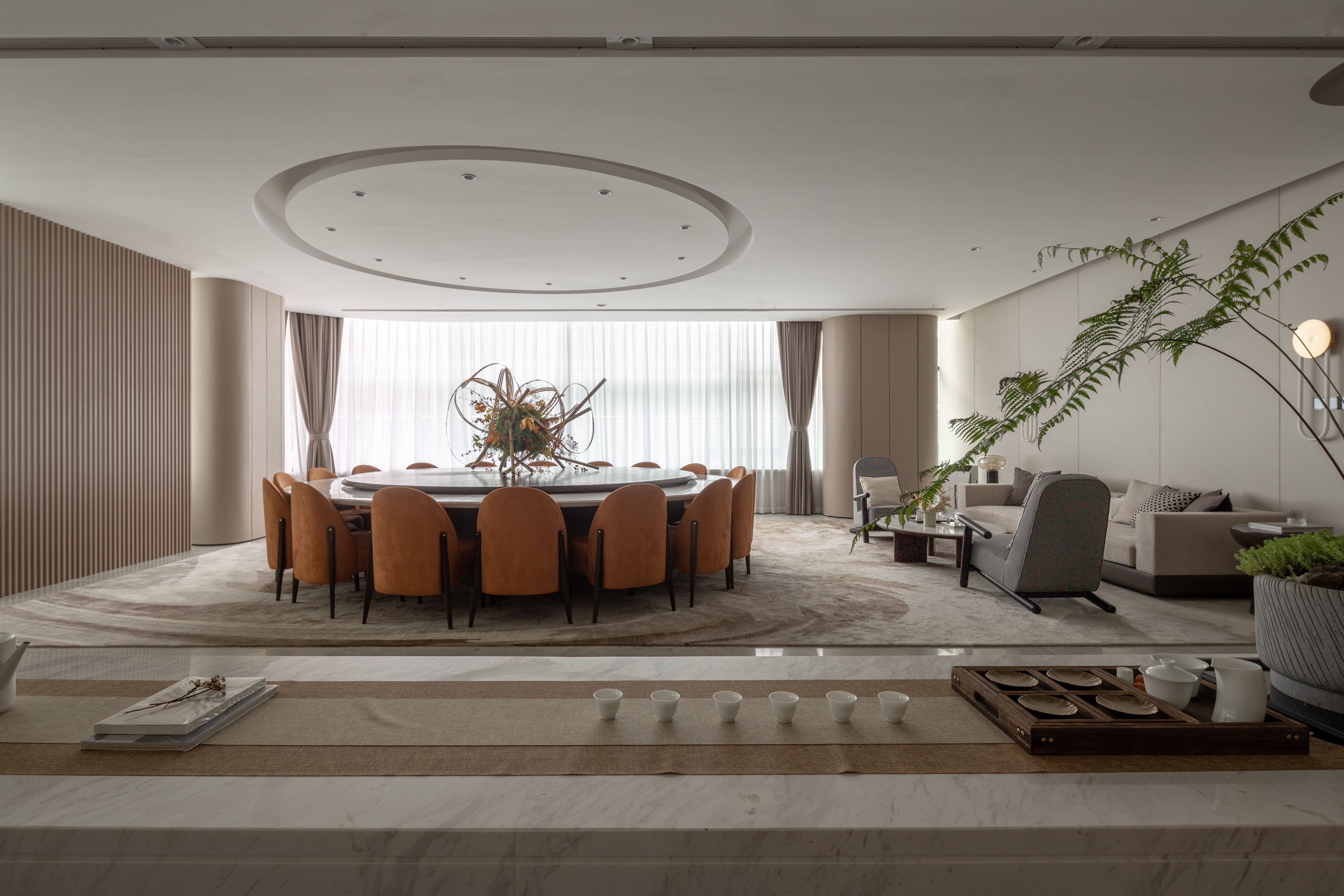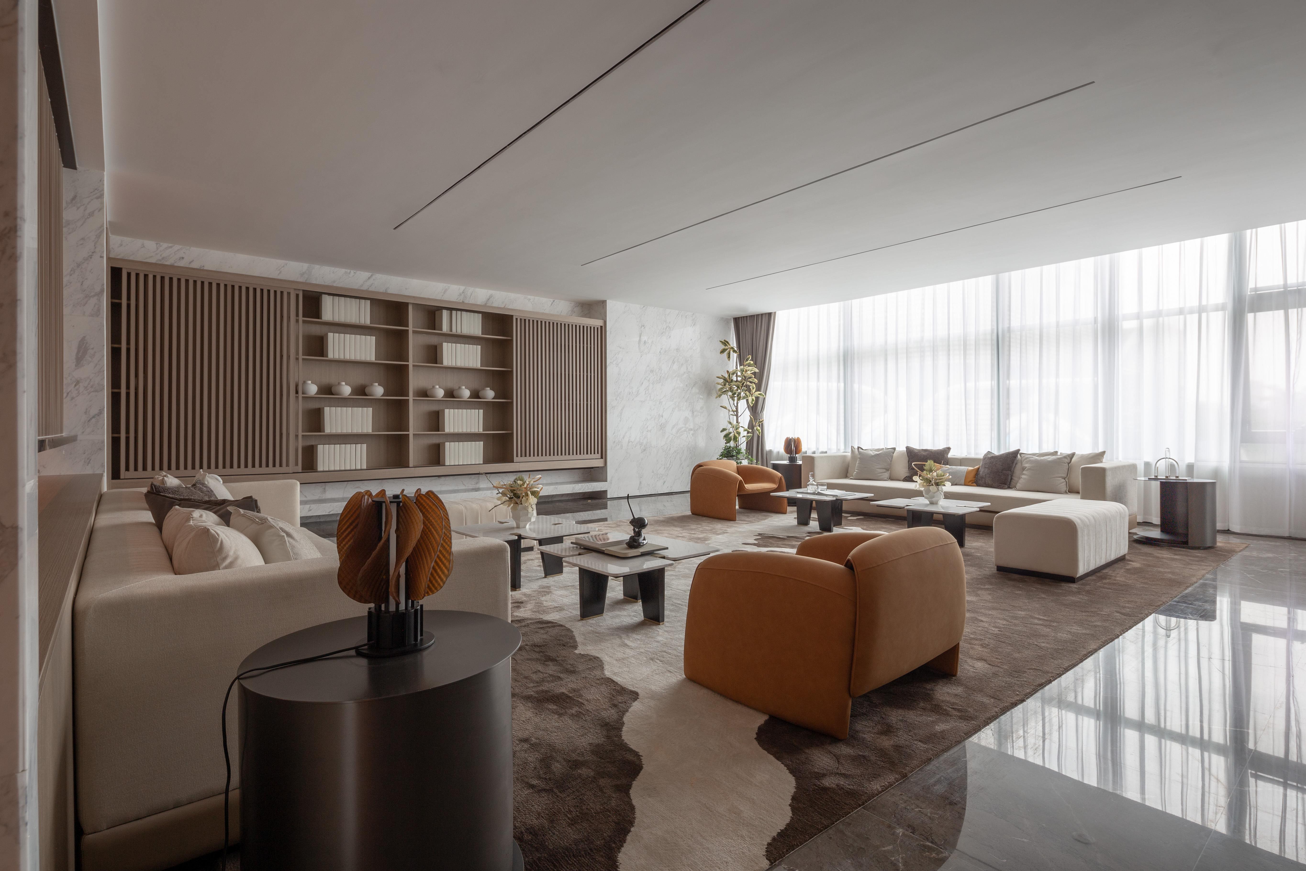 空间意境:设计师参考五星级酒店行政层的设计理念,用动静相宜的手法将空间划分成五大空间,相较于传统的会所空间,本案的室内设计更为简洁,动线更加流畅。