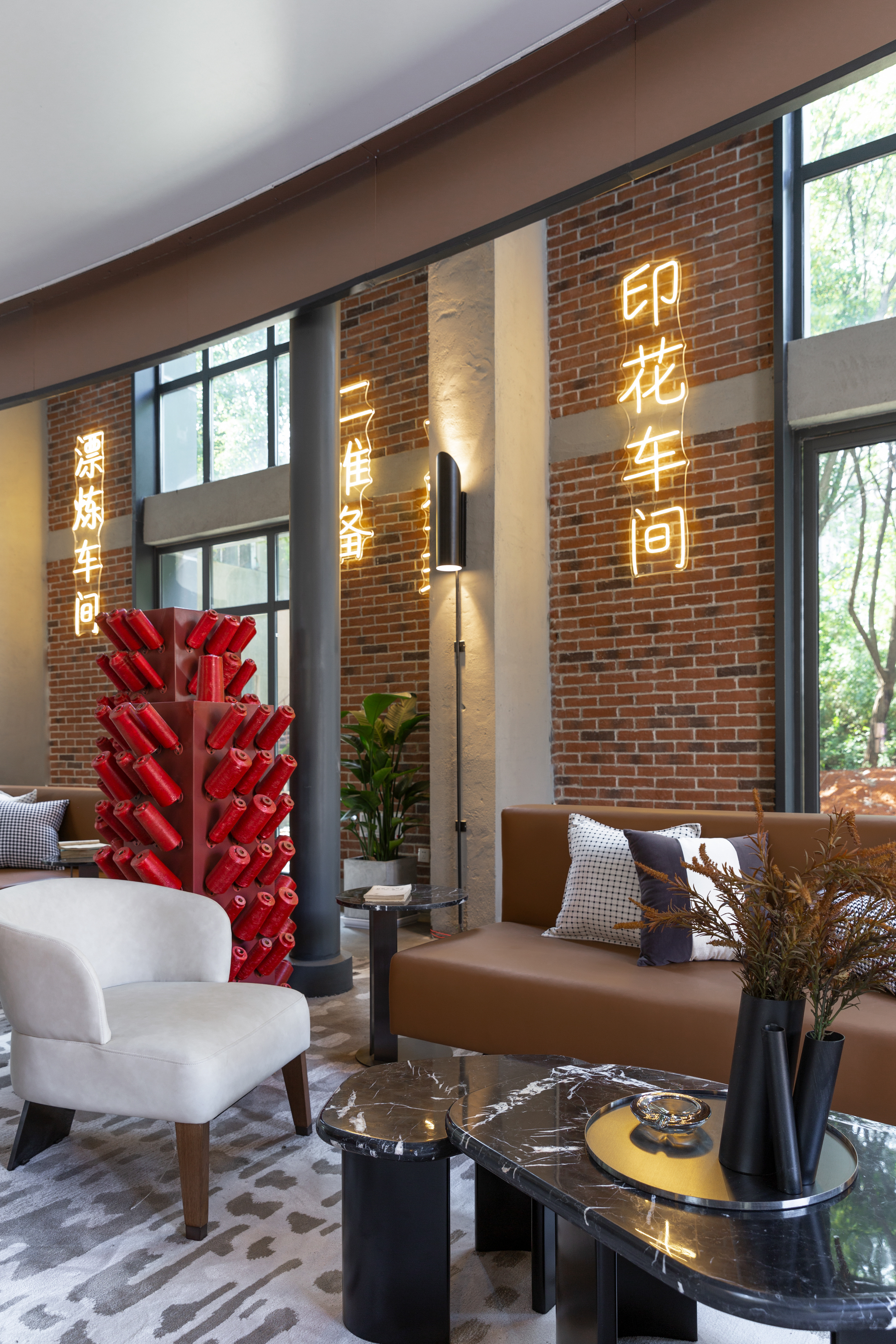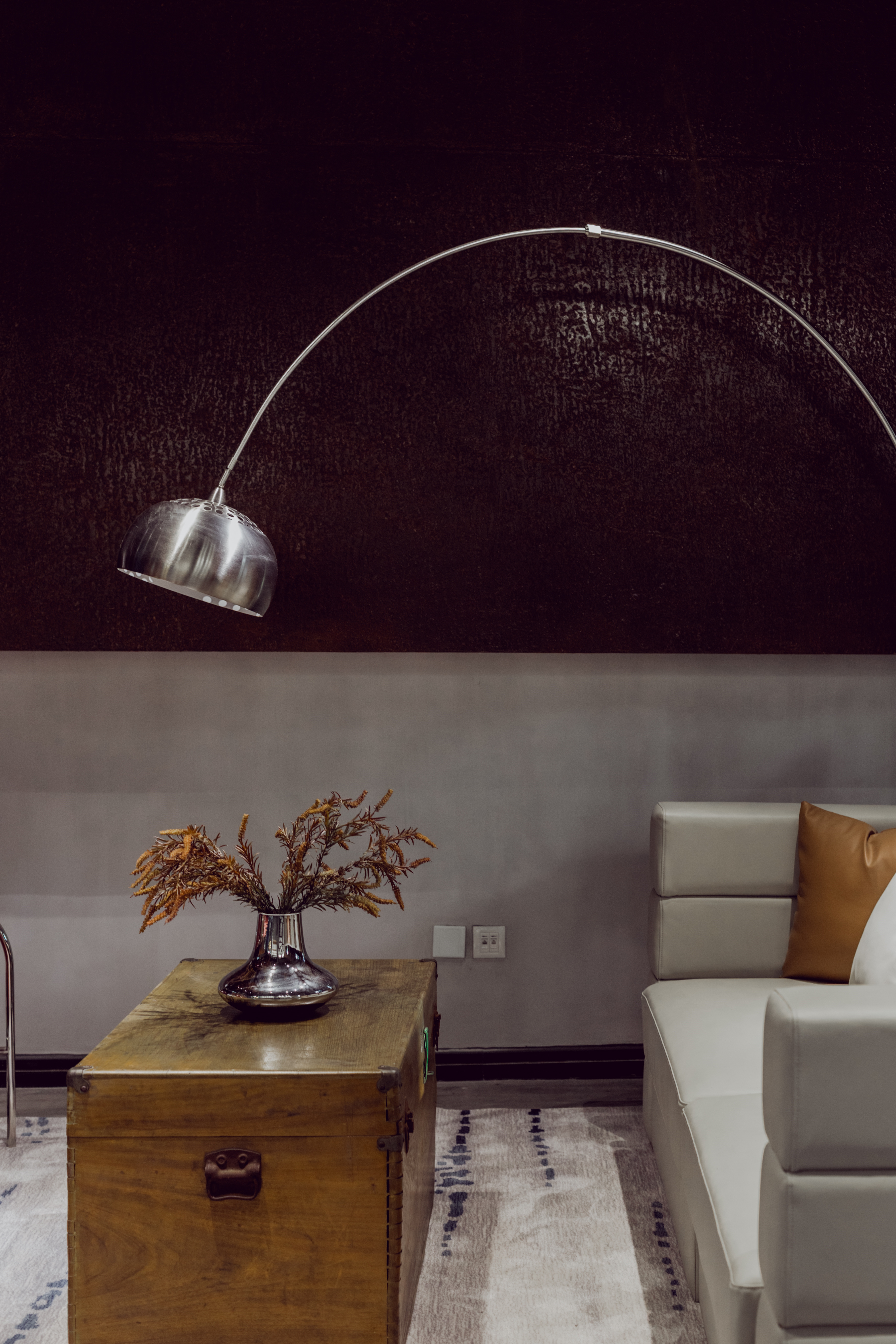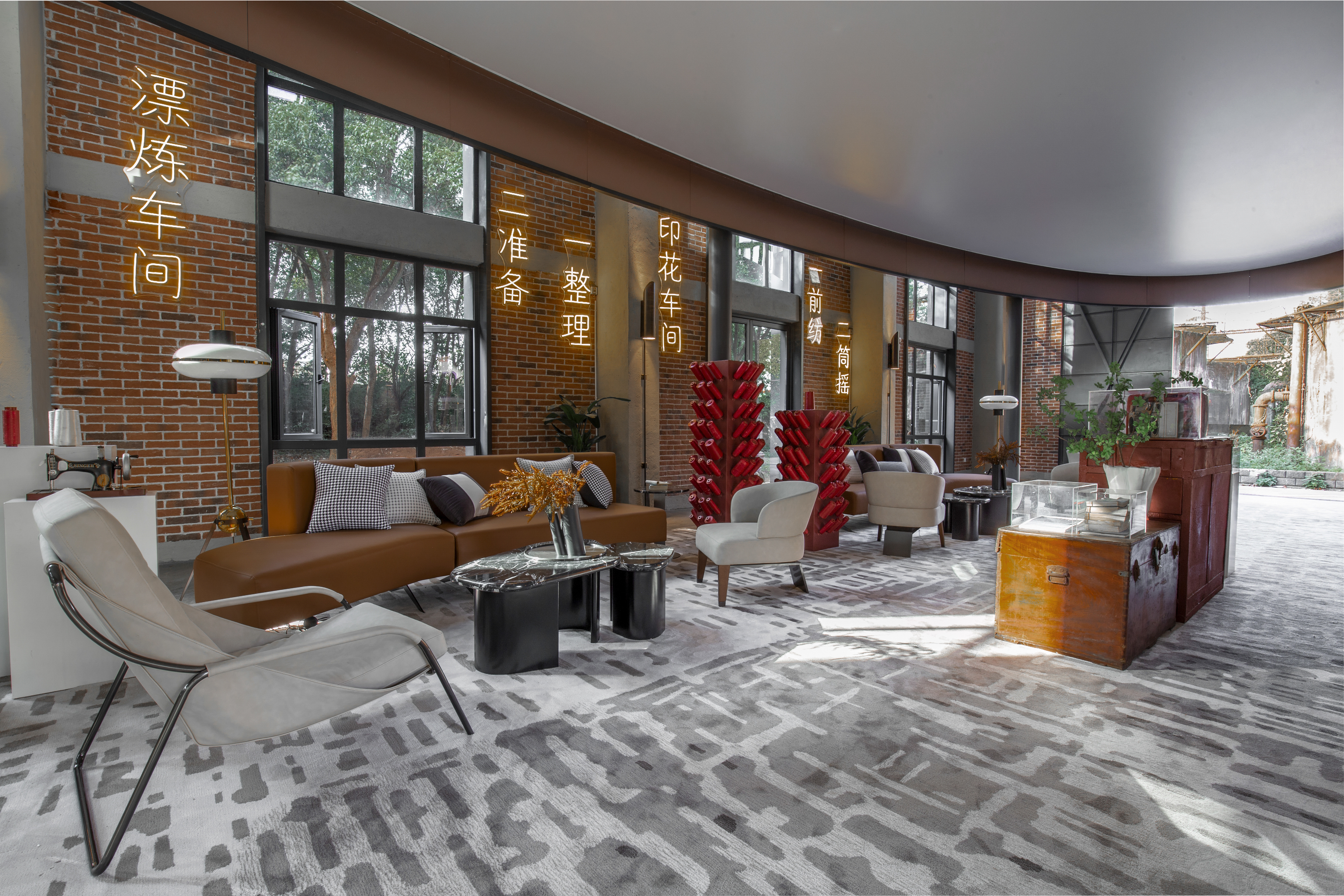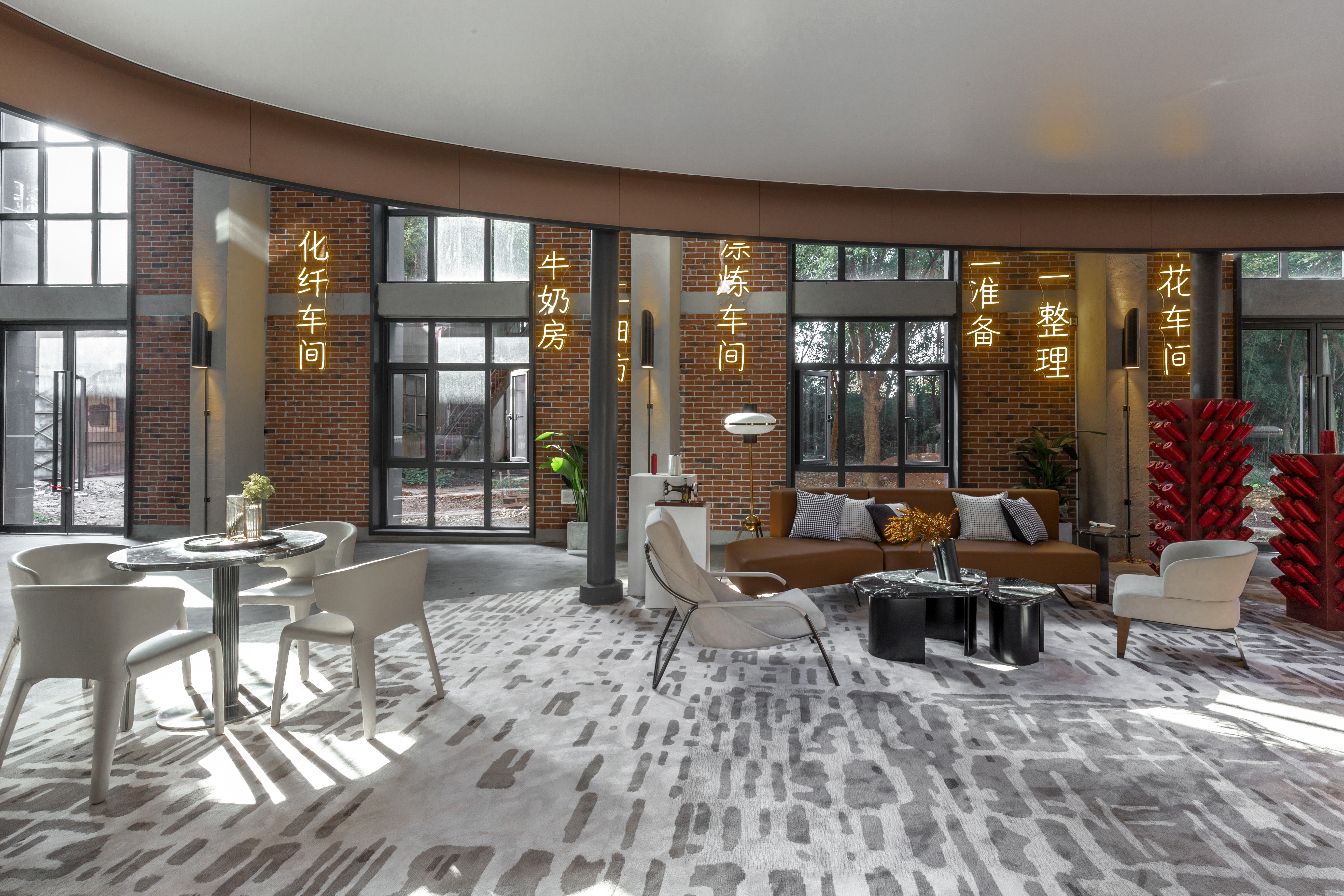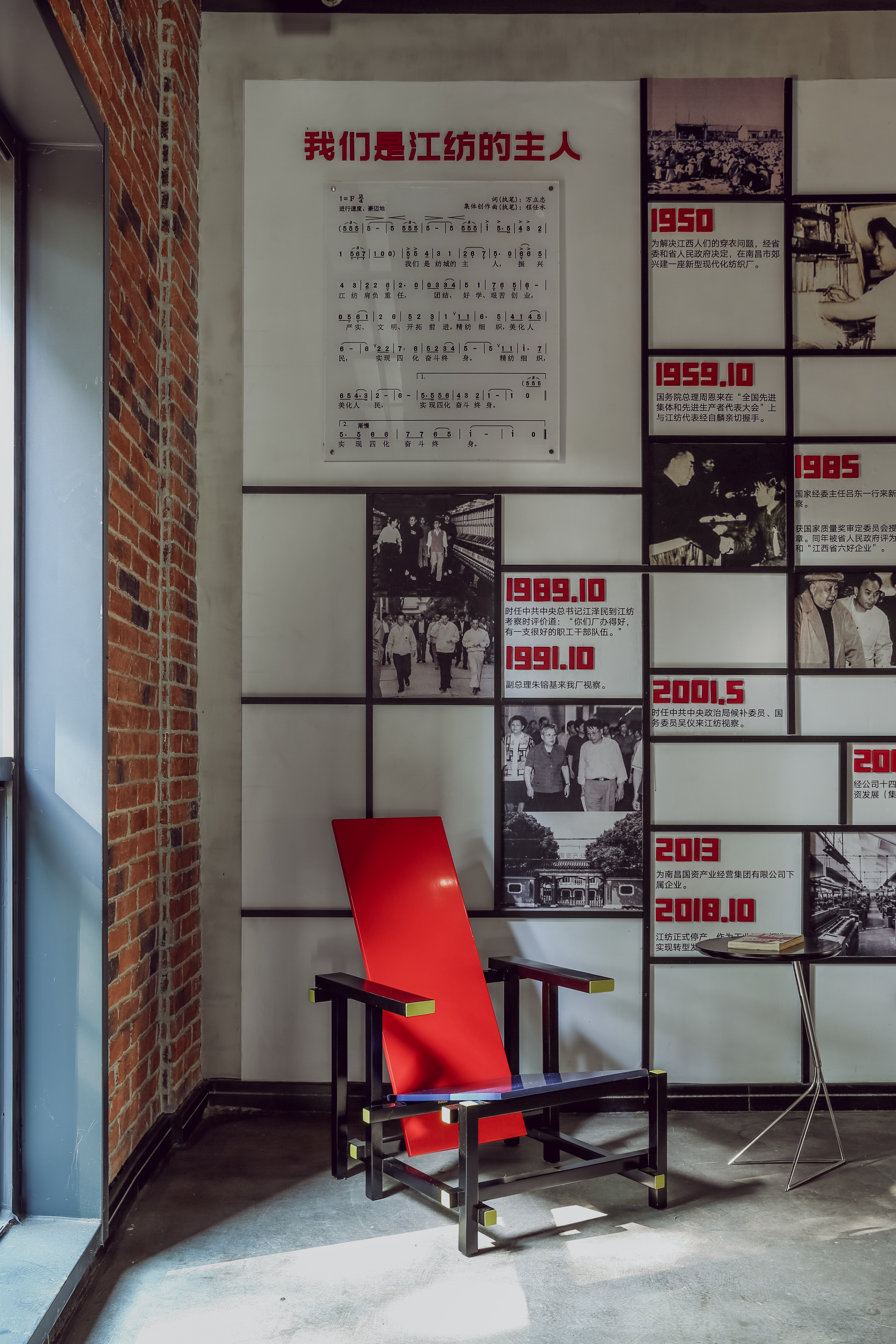 历史遗留下来的物件没有被丢弃,把它们改造成一件件工艺品,仿佛身处历史博物馆,唤醒那段辉煌记忆。 纺织厂遗留保护下来的旧物件与同时代的“冷,极简,机械”工业设计成熟时期的家具搭建出现代艺术馆的美感。
