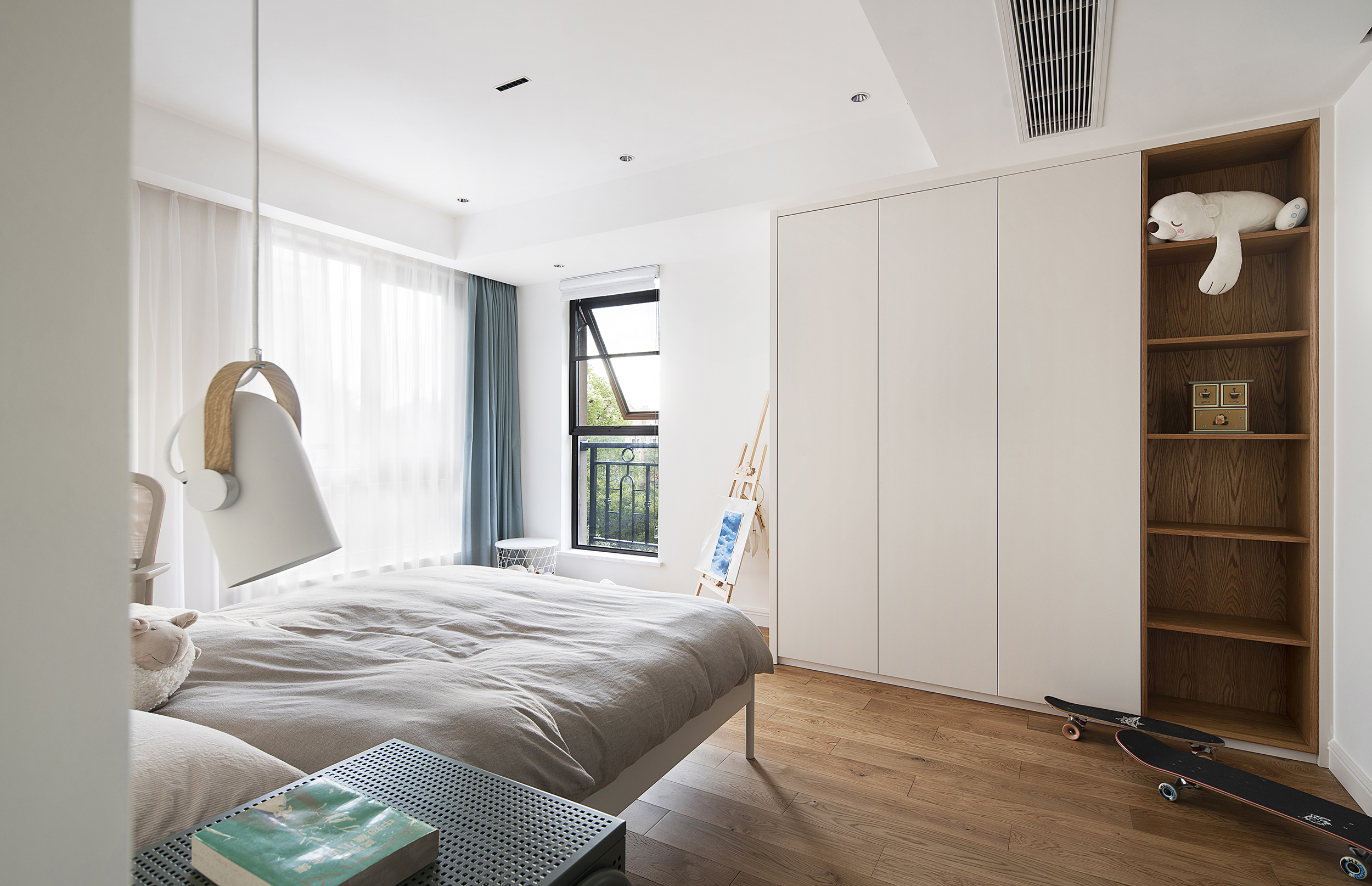 设计选材:全屋采用木地板通铺,让整个房间更加温馨