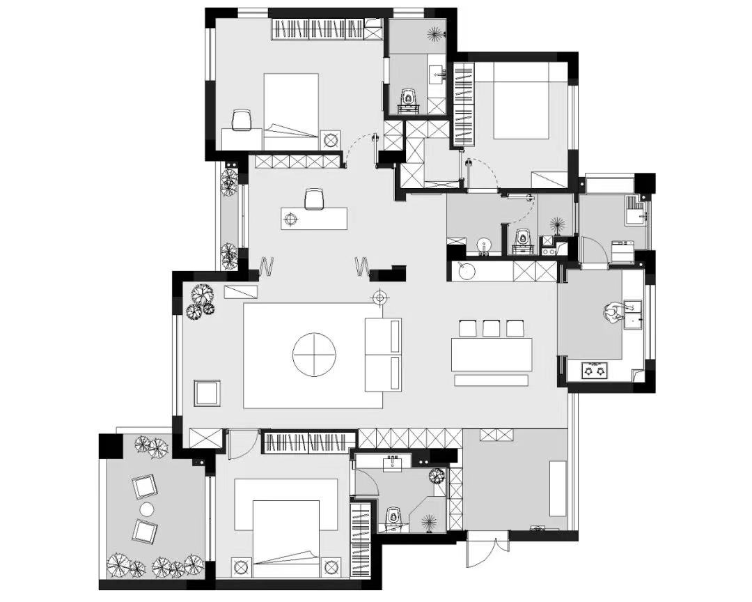 空间布局:扩大了餐厅区域,书房和客厅打通,让空间更开阔。
