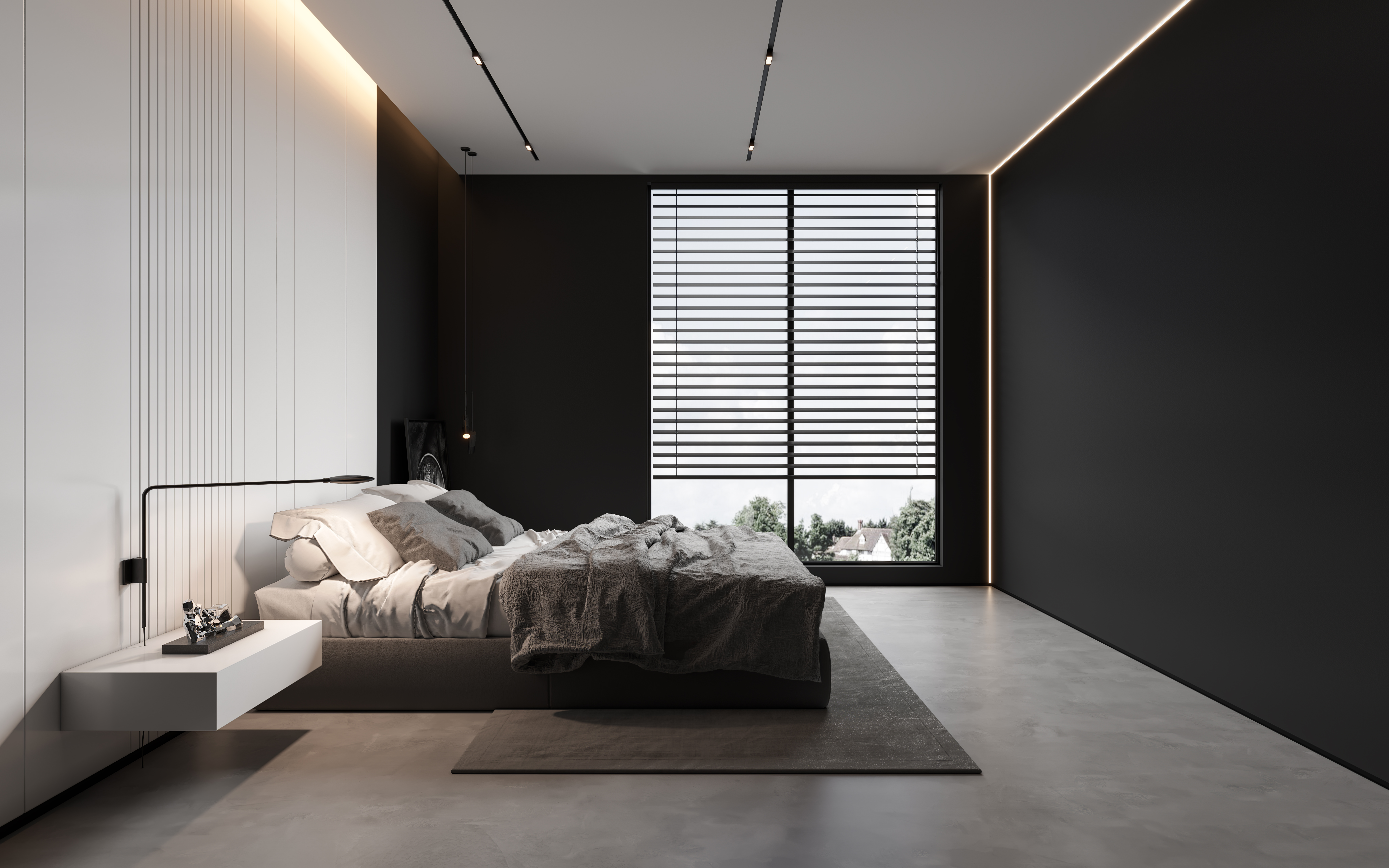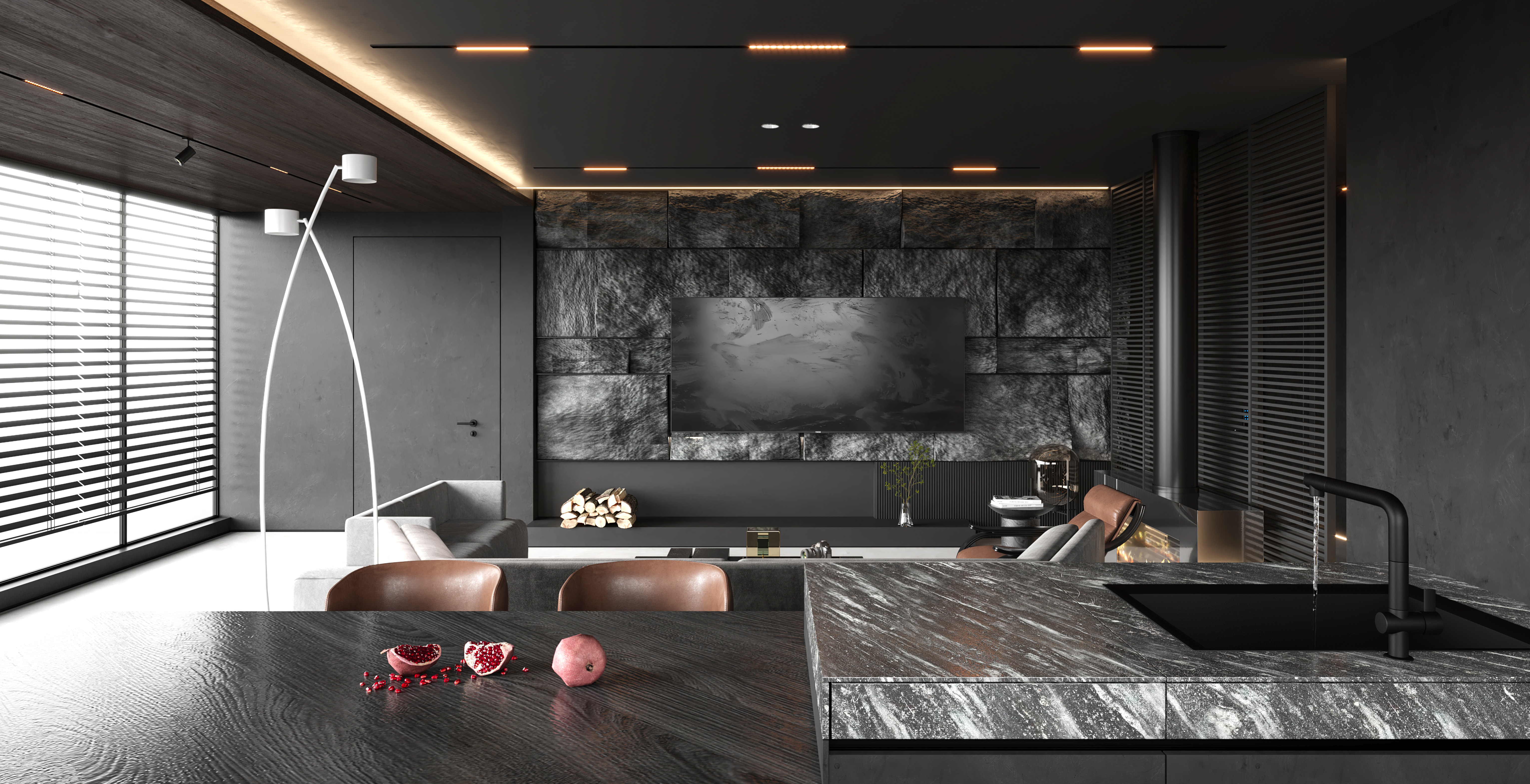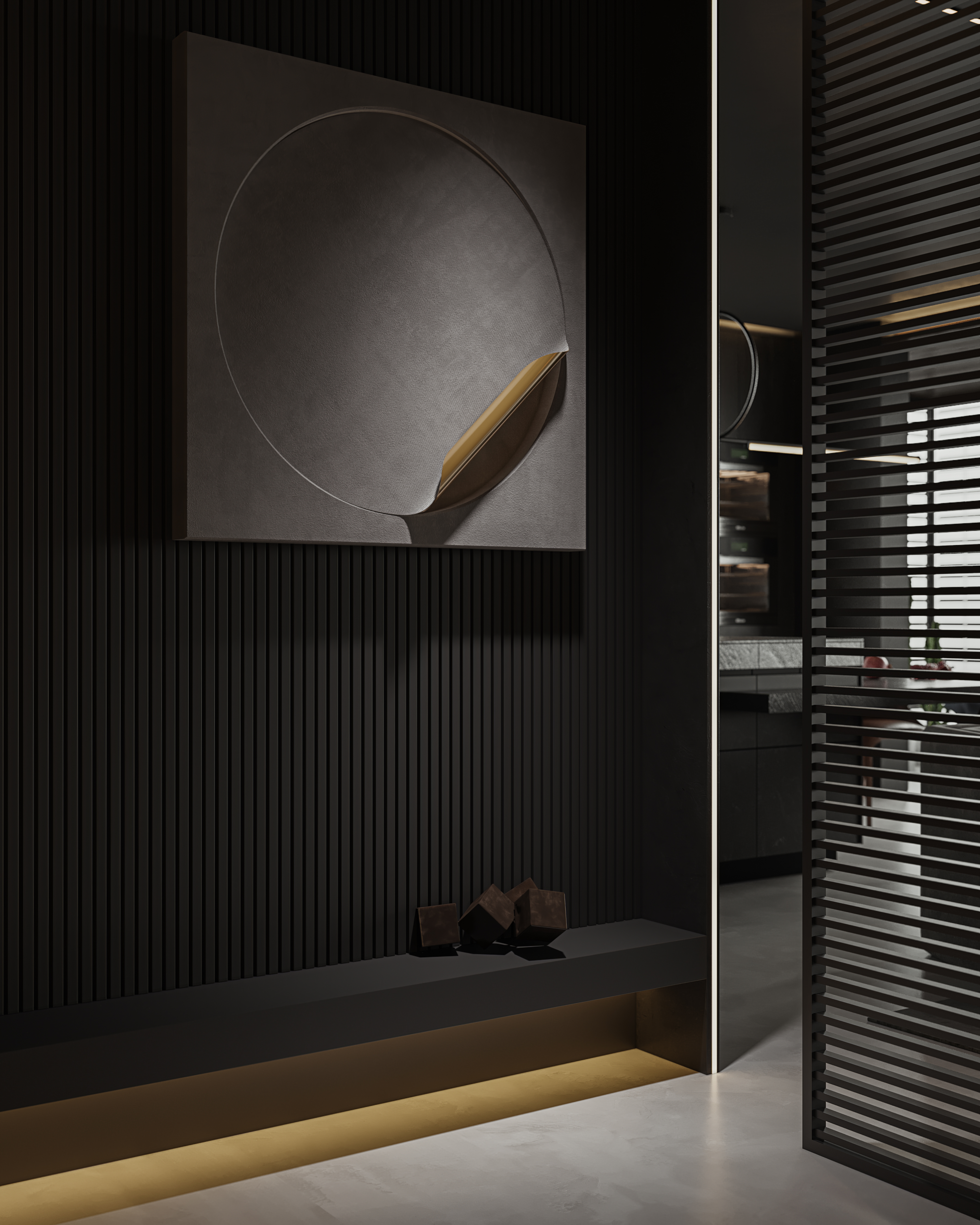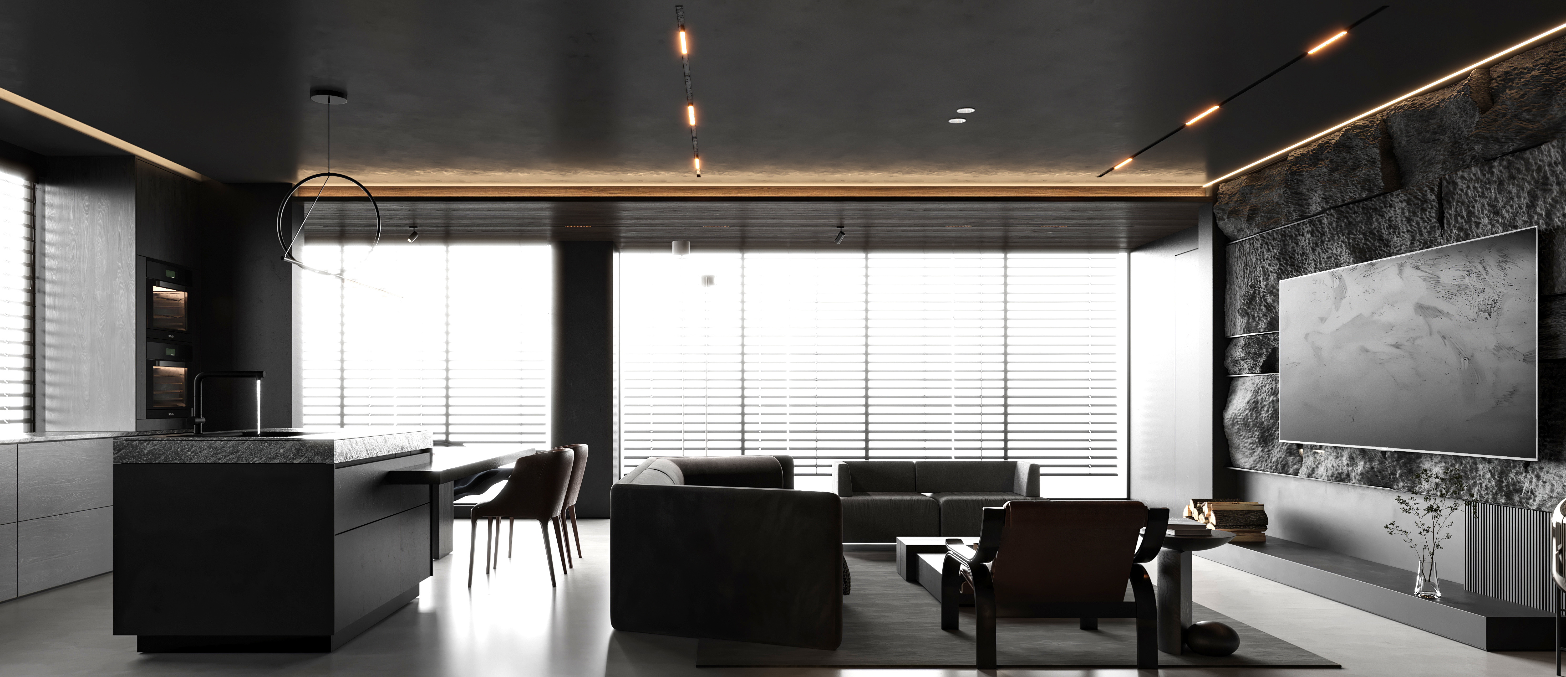 空间意境:作品中,大部分采用深色烘托整个空间的格调,少量浅色反衬托整体空间不是那么阴暗。