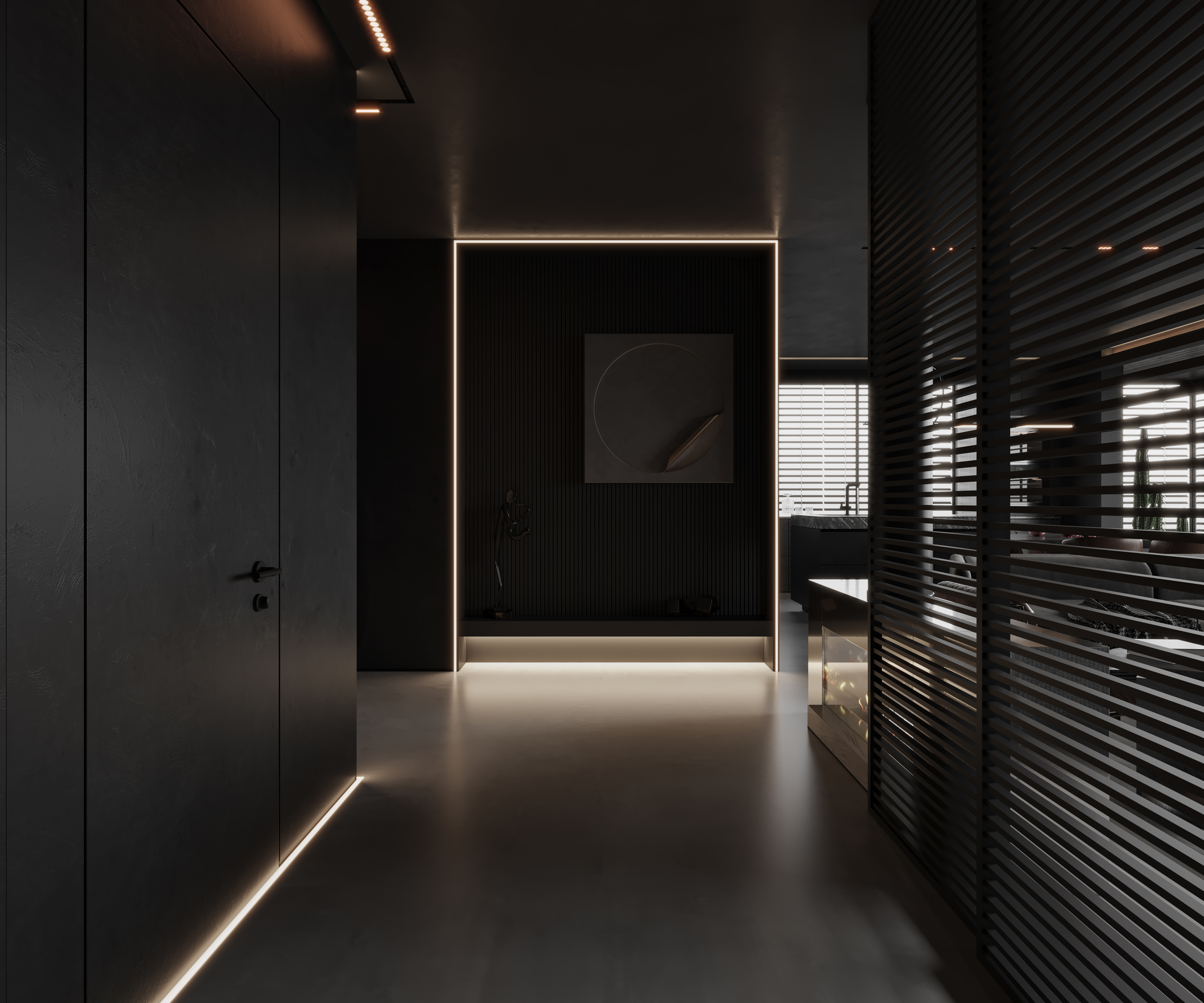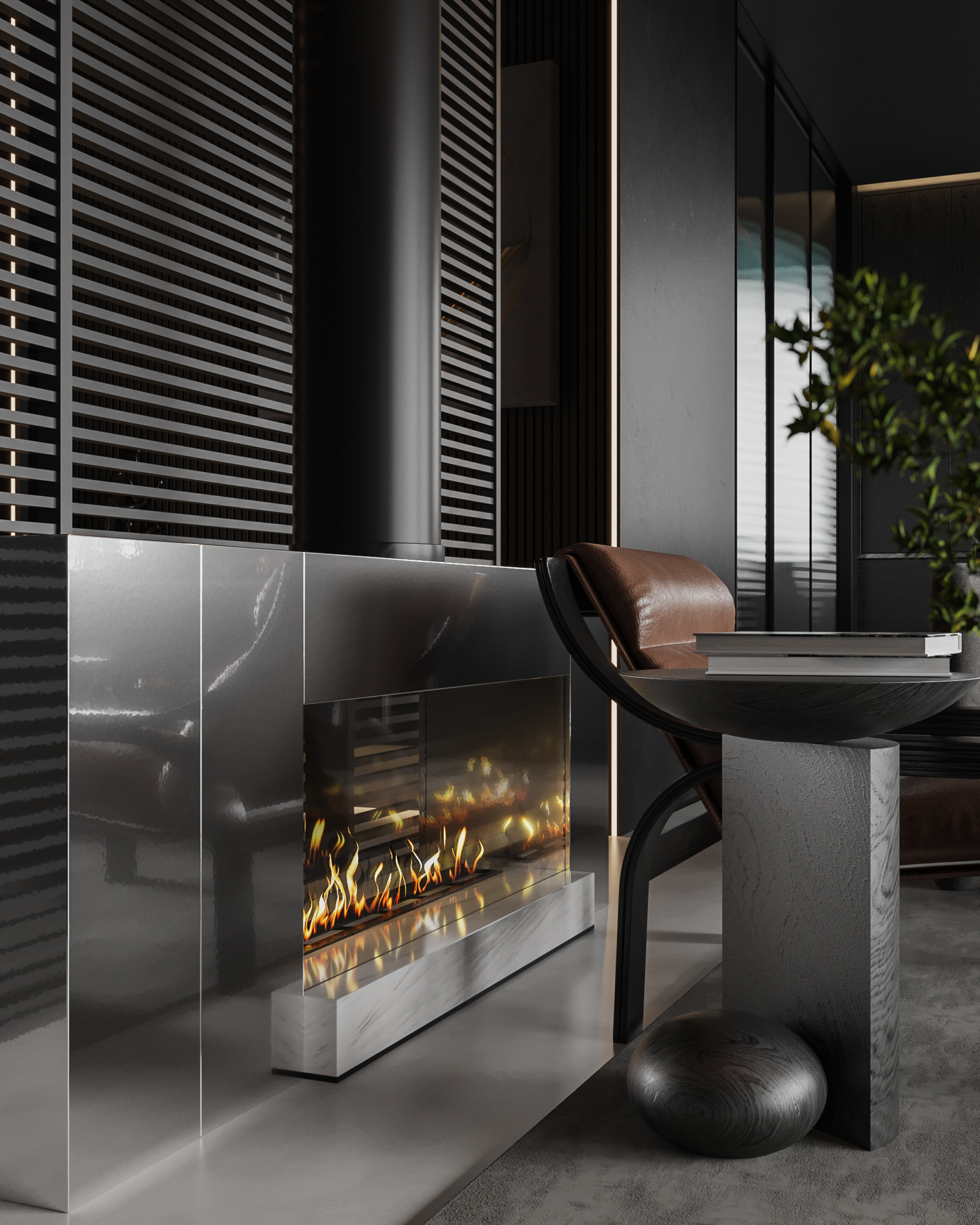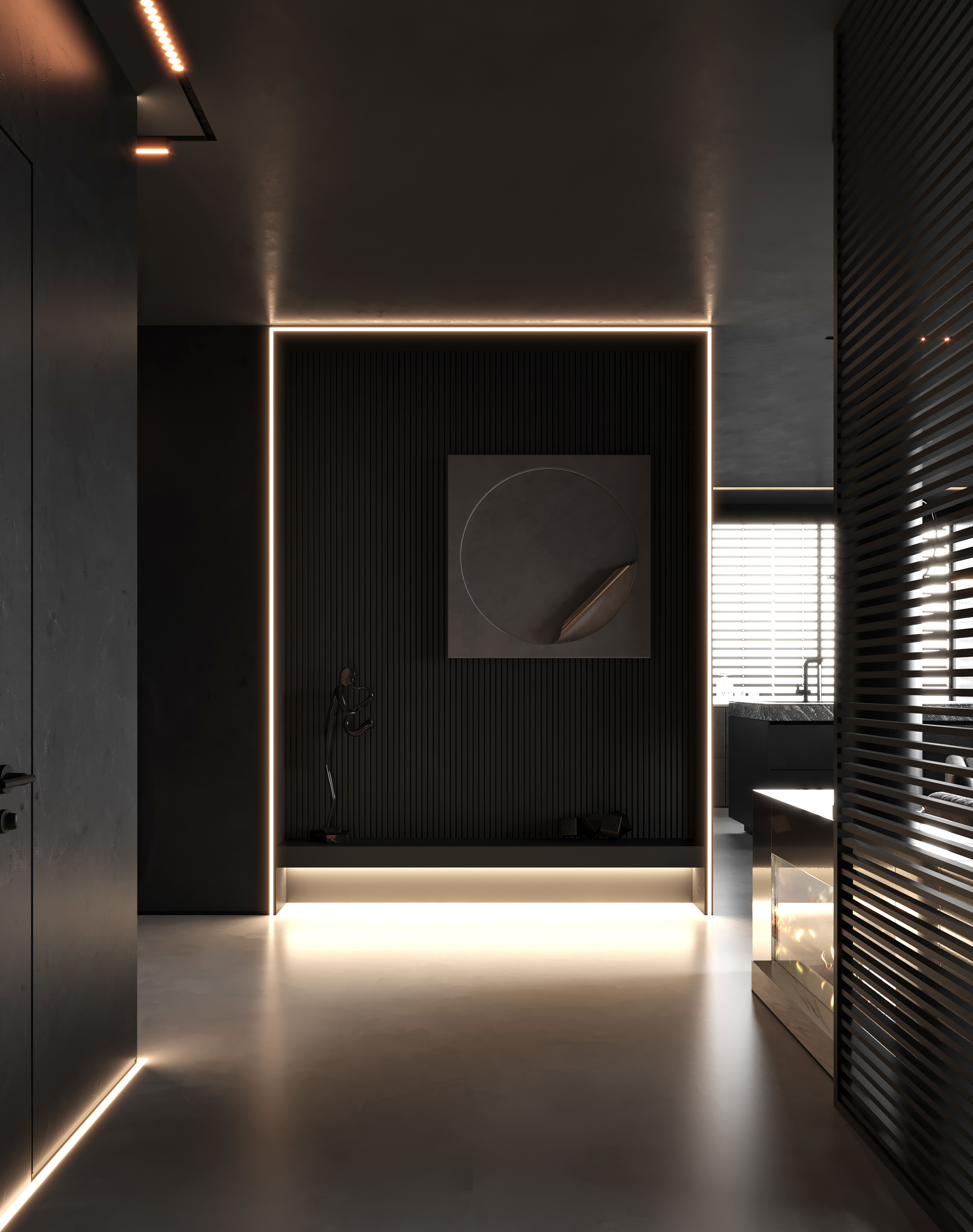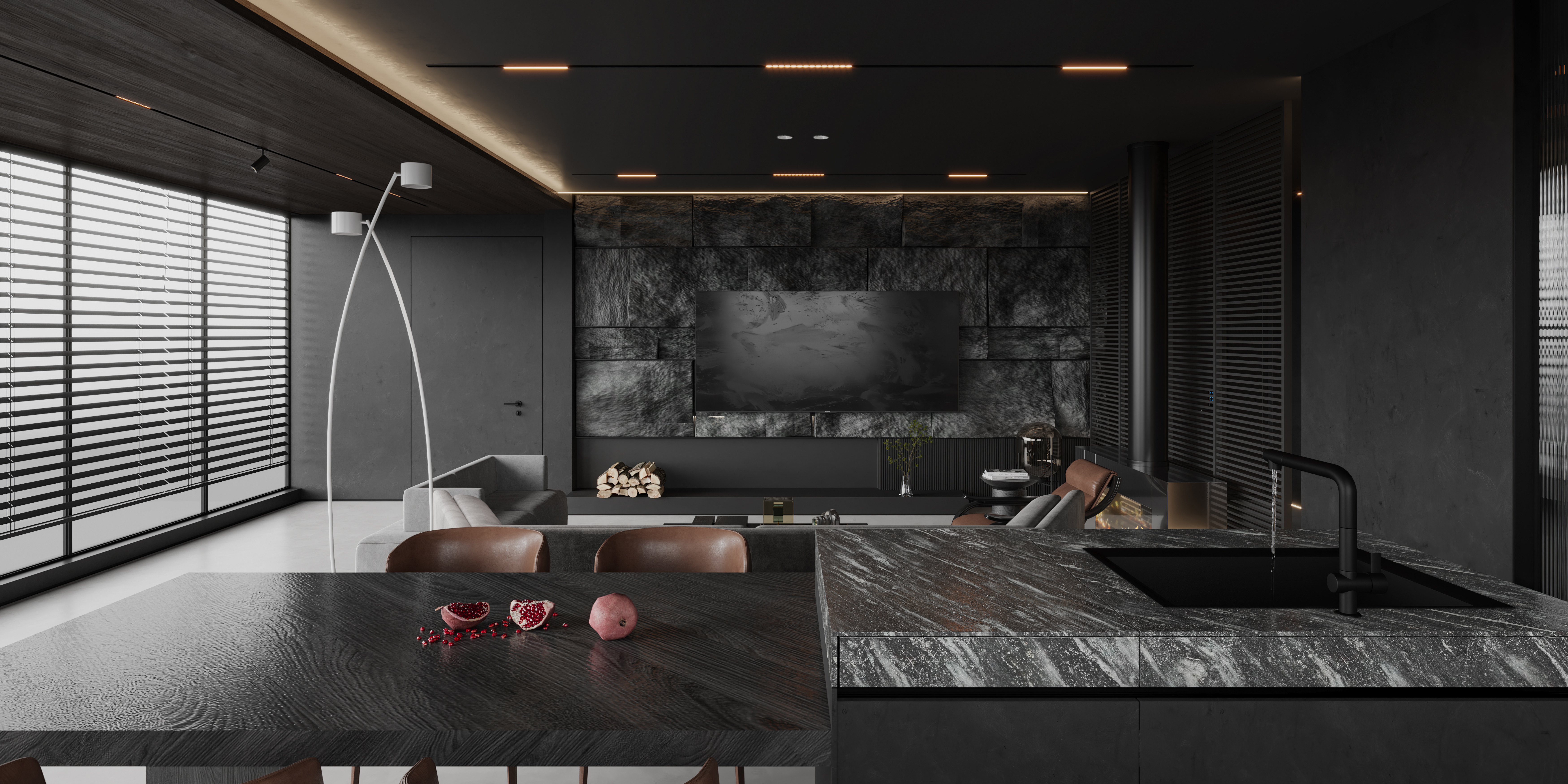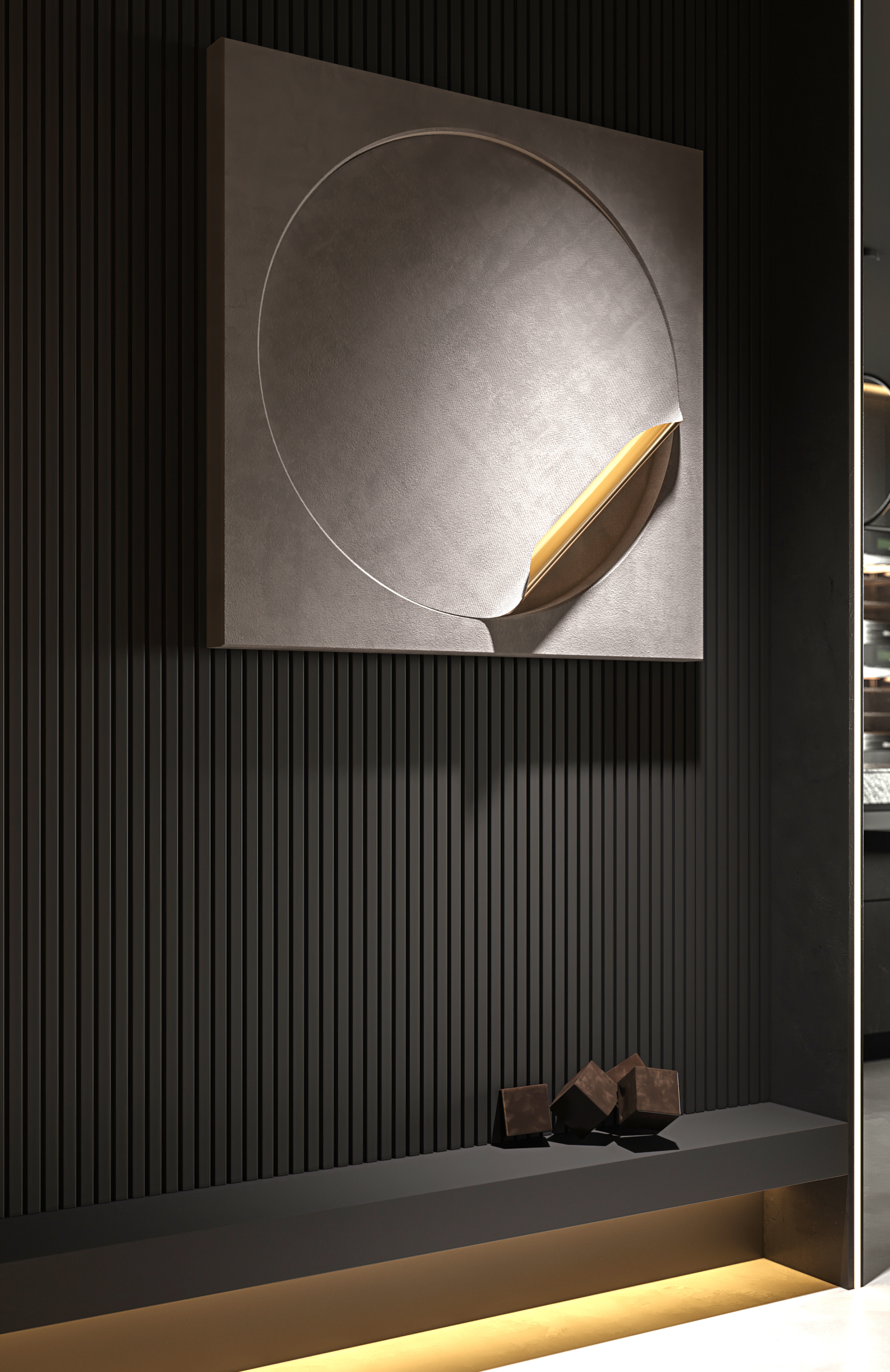 空间意境:作品中,大部分采用深色烘托整个空间的格调,少量浅色反衬托整体空间不是那么阴暗。