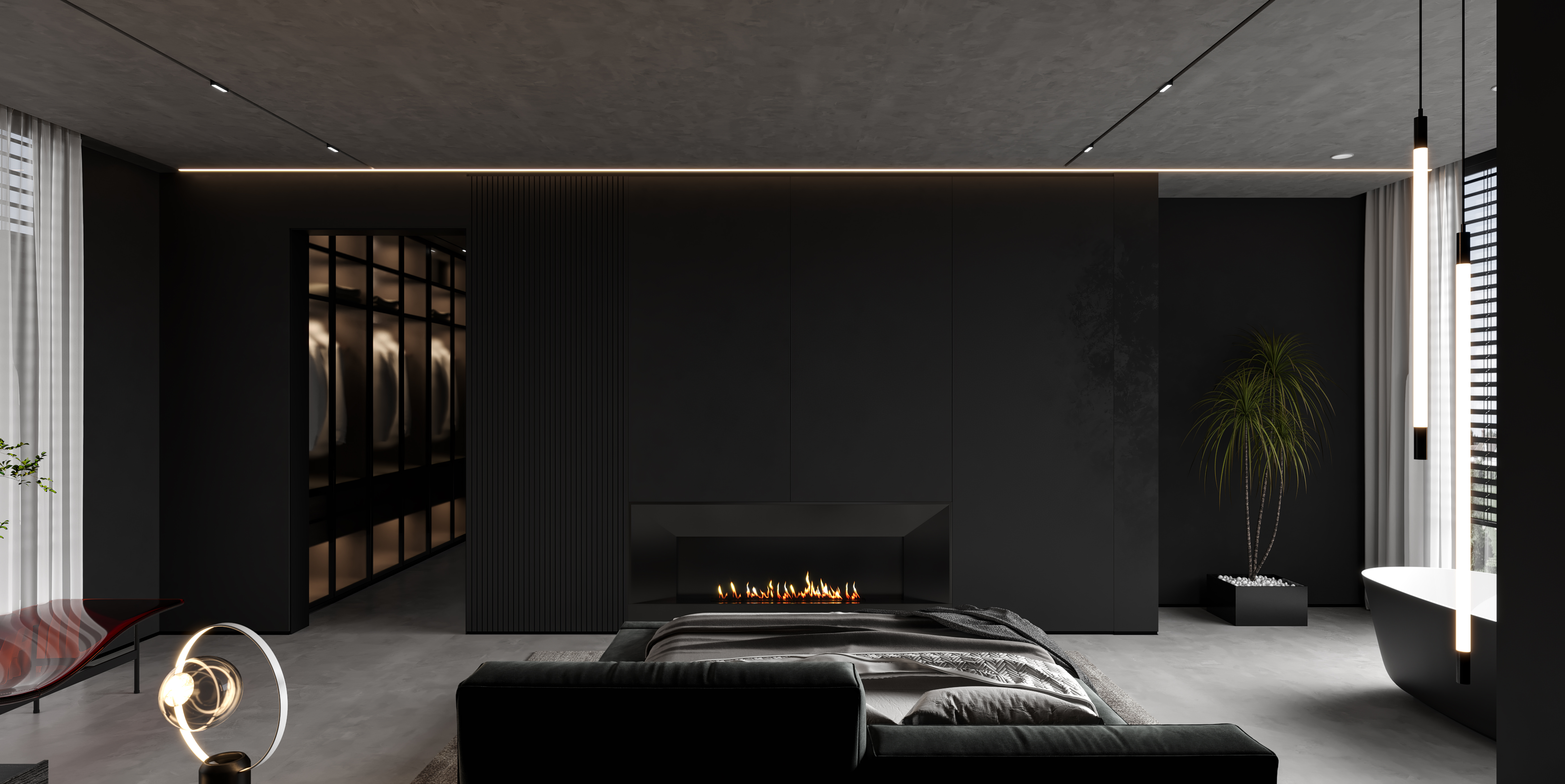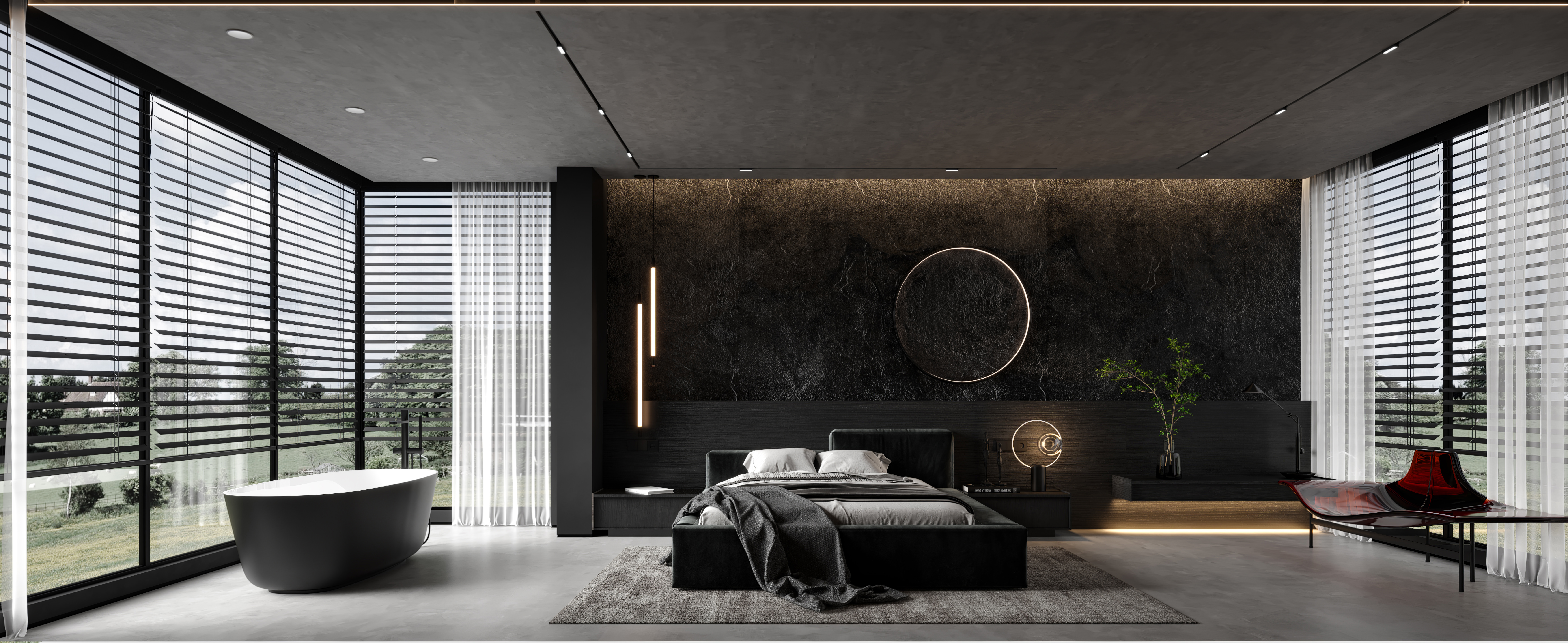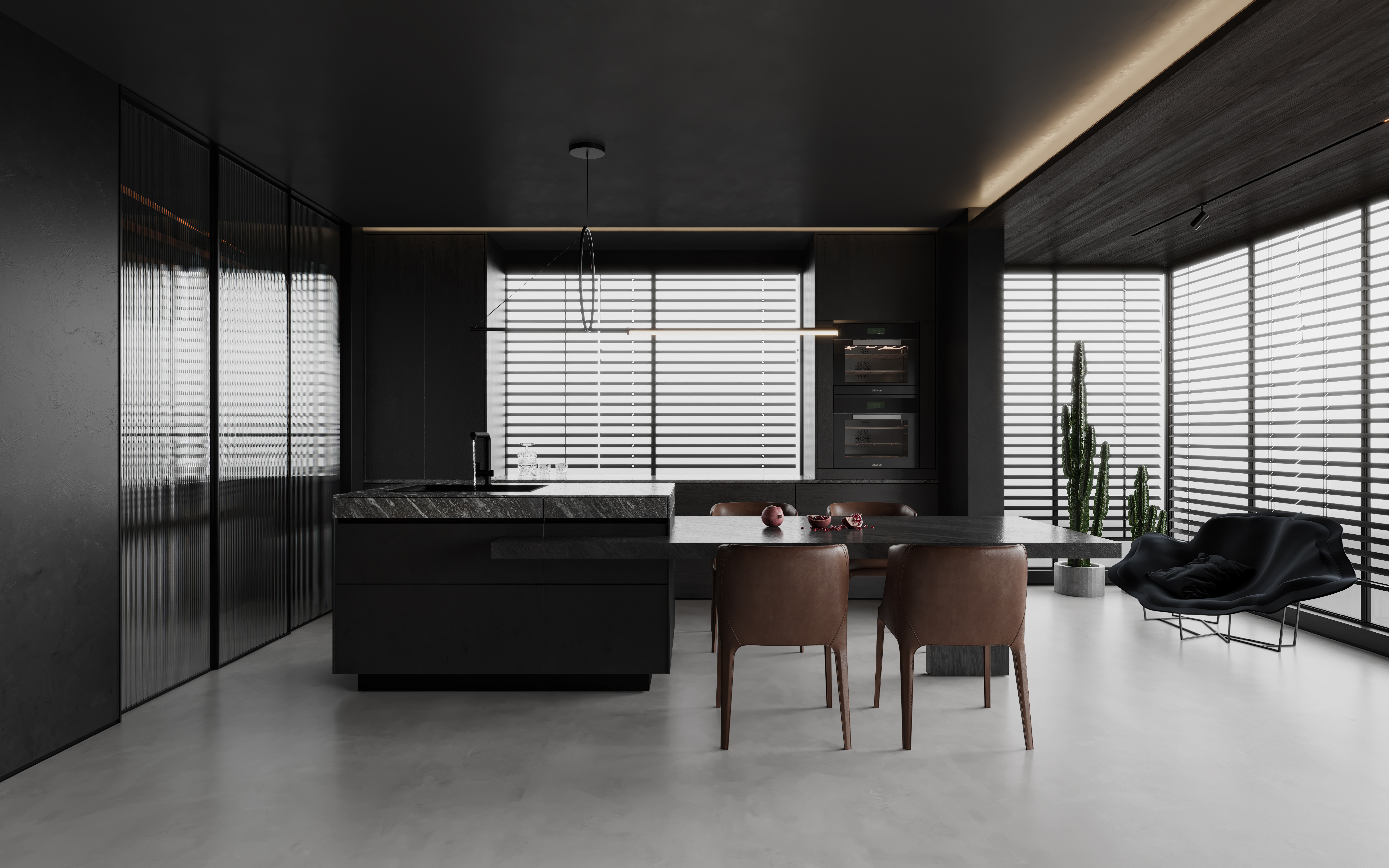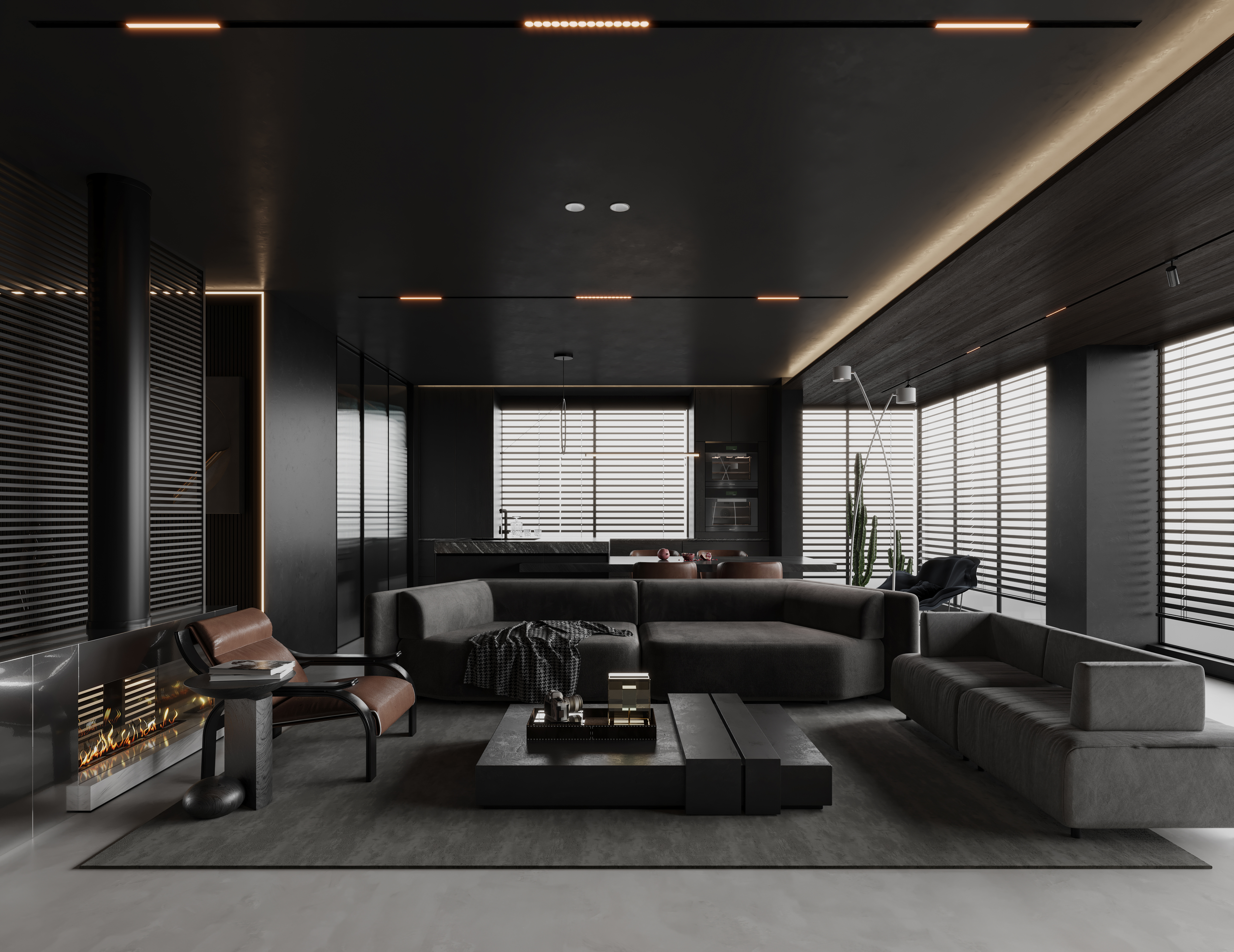 空间意境:作品中,大部分采用深色烘托整个空间的格调,少量浅色反衬托整体空间不是那么阴暗。
