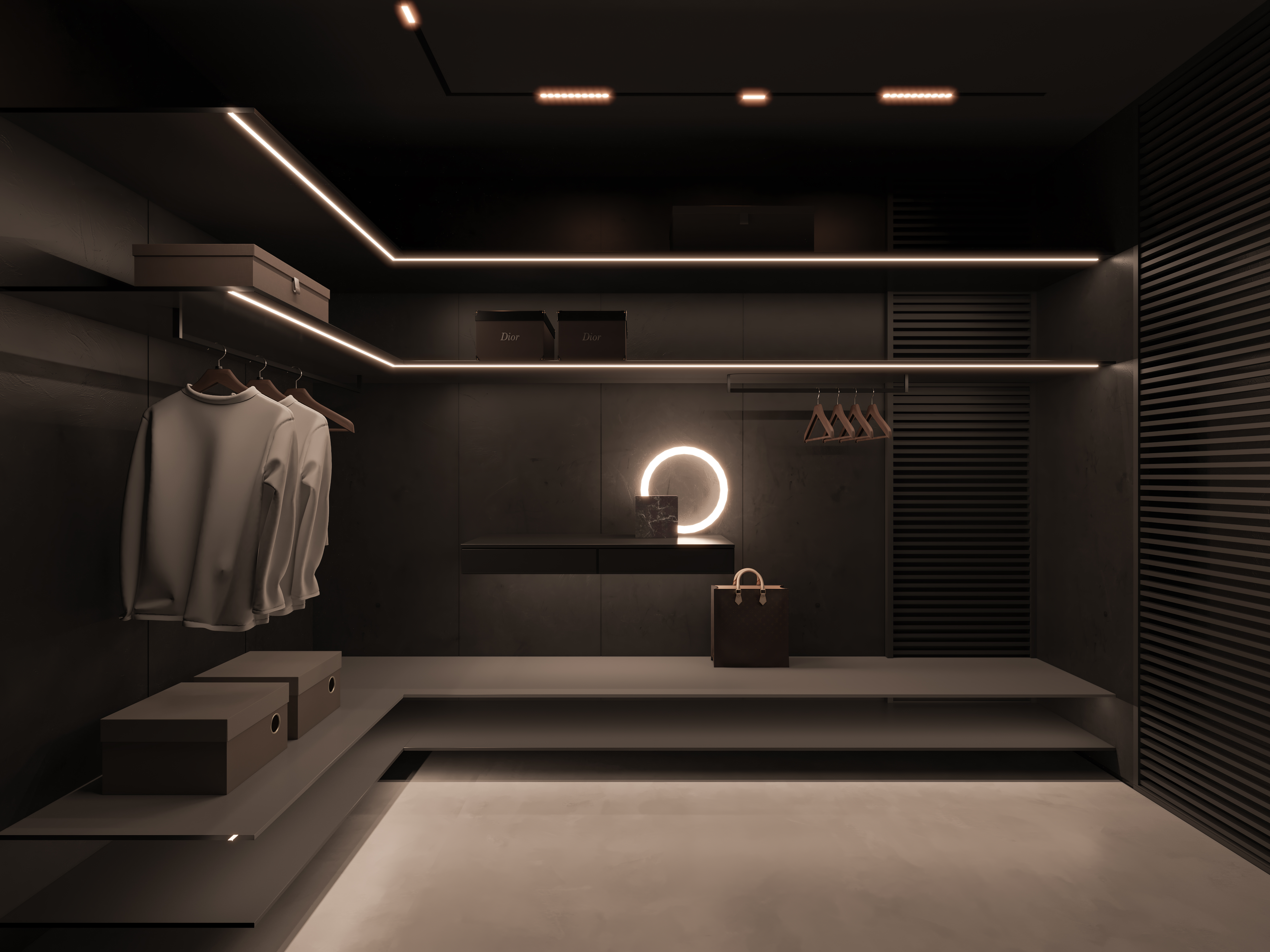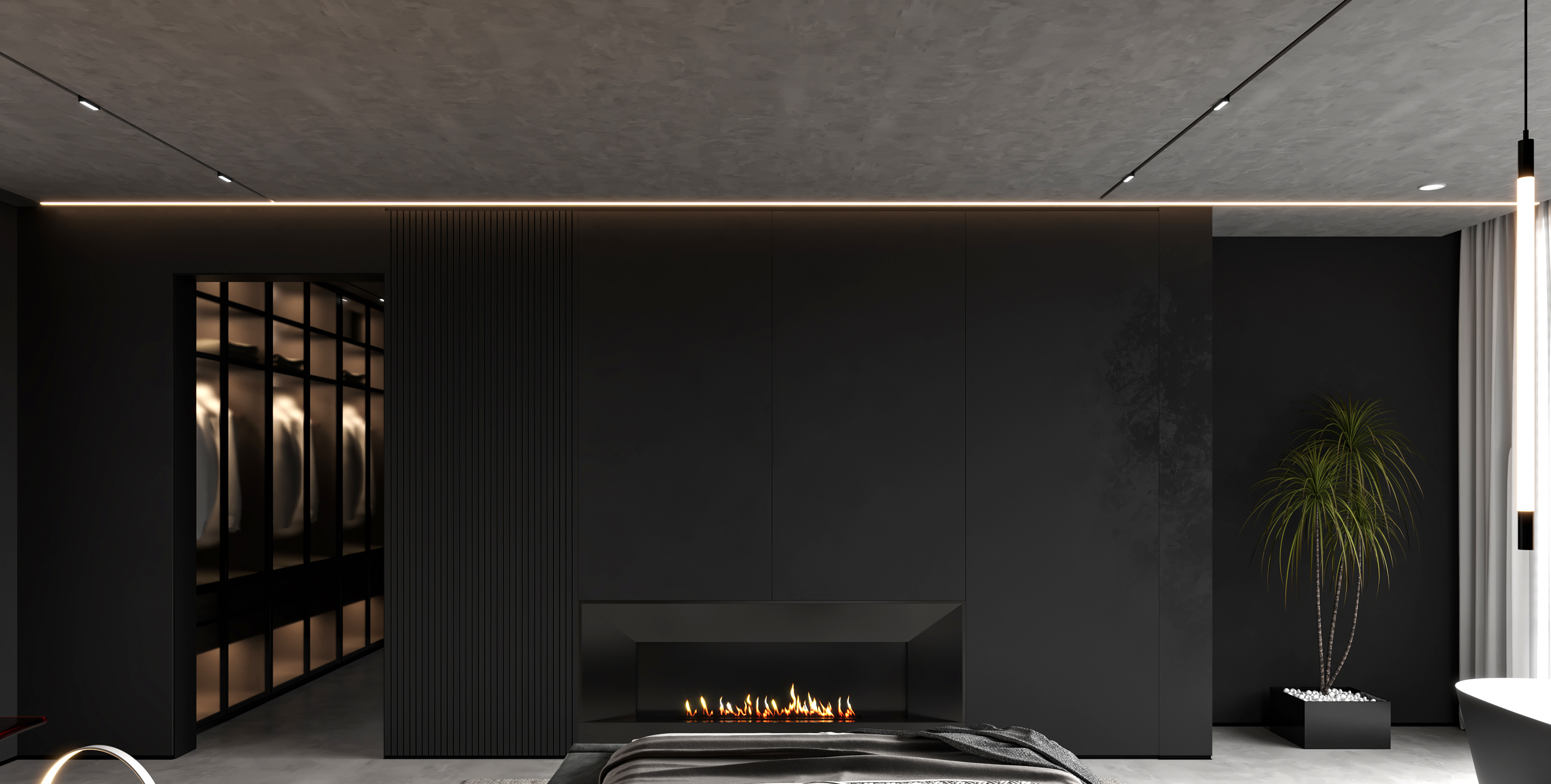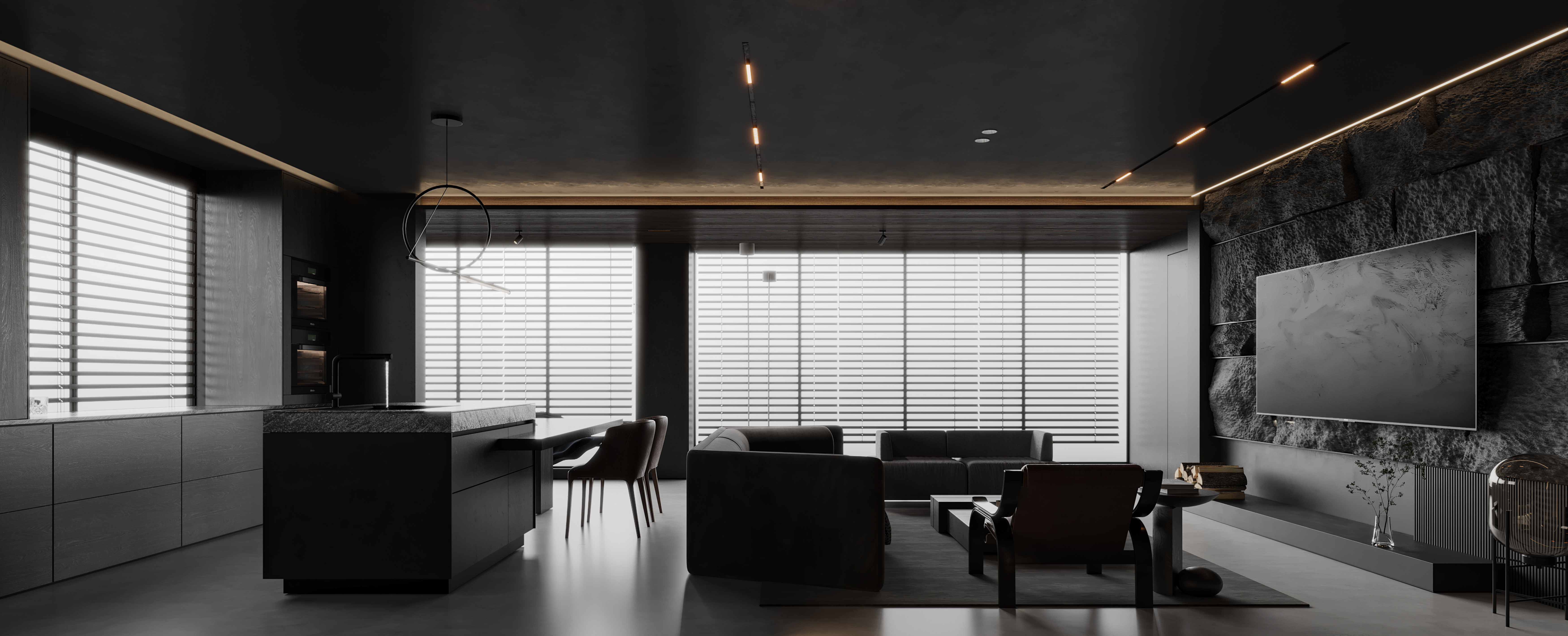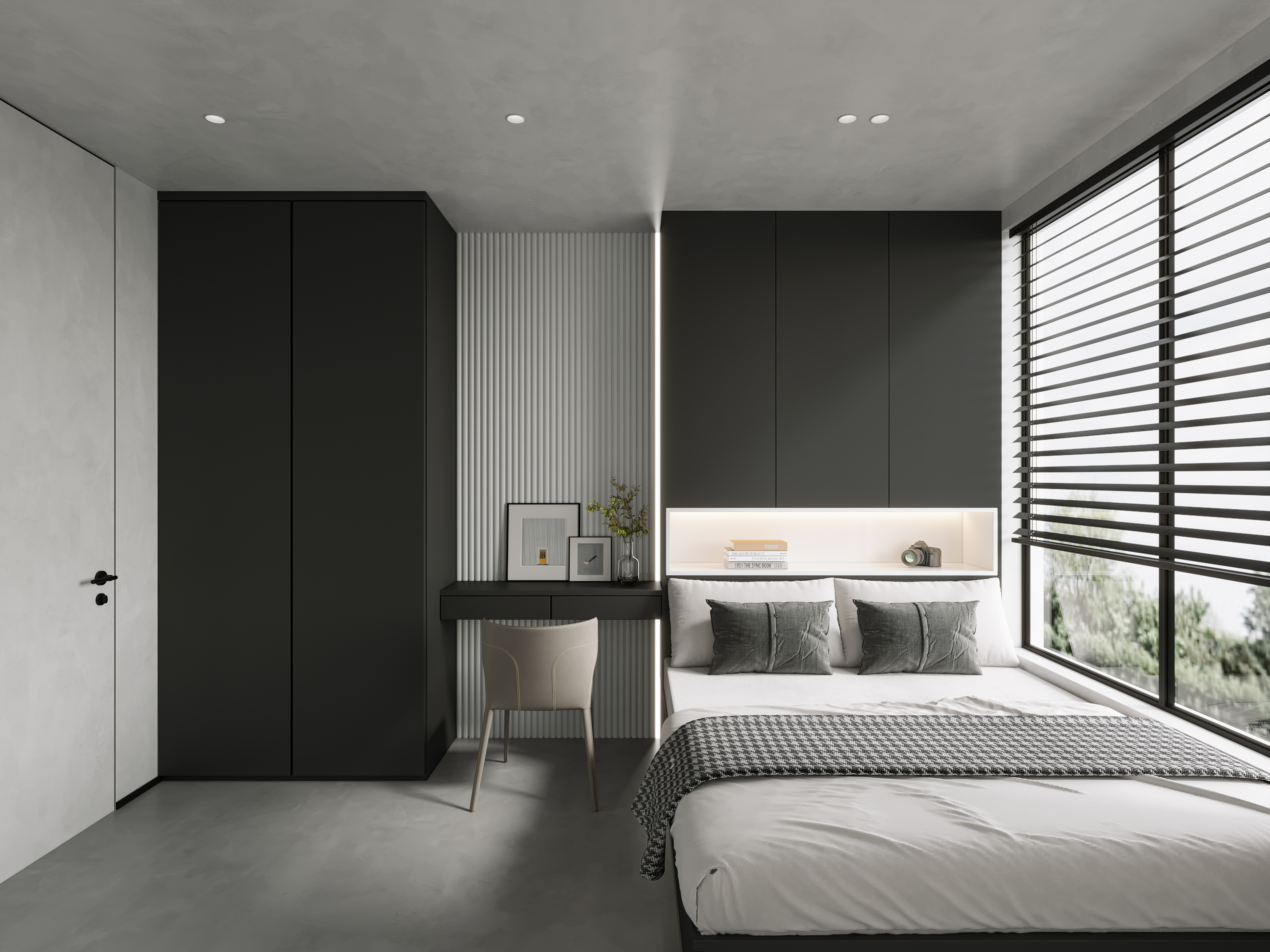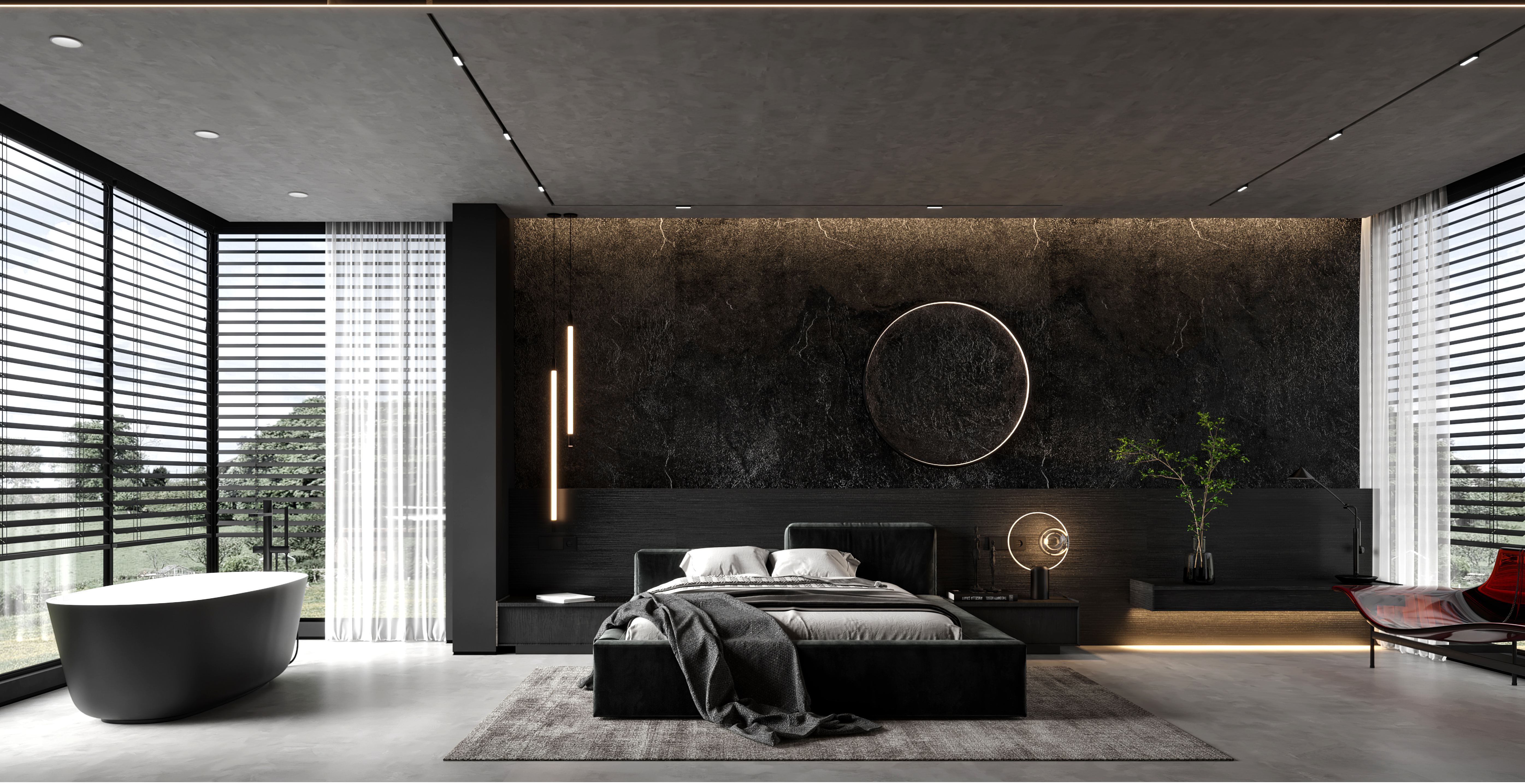 空间意境:作品中,大部分采用深色烘托整个空间的格调,少量浅色反衬托整体空间不是那么阴暗。