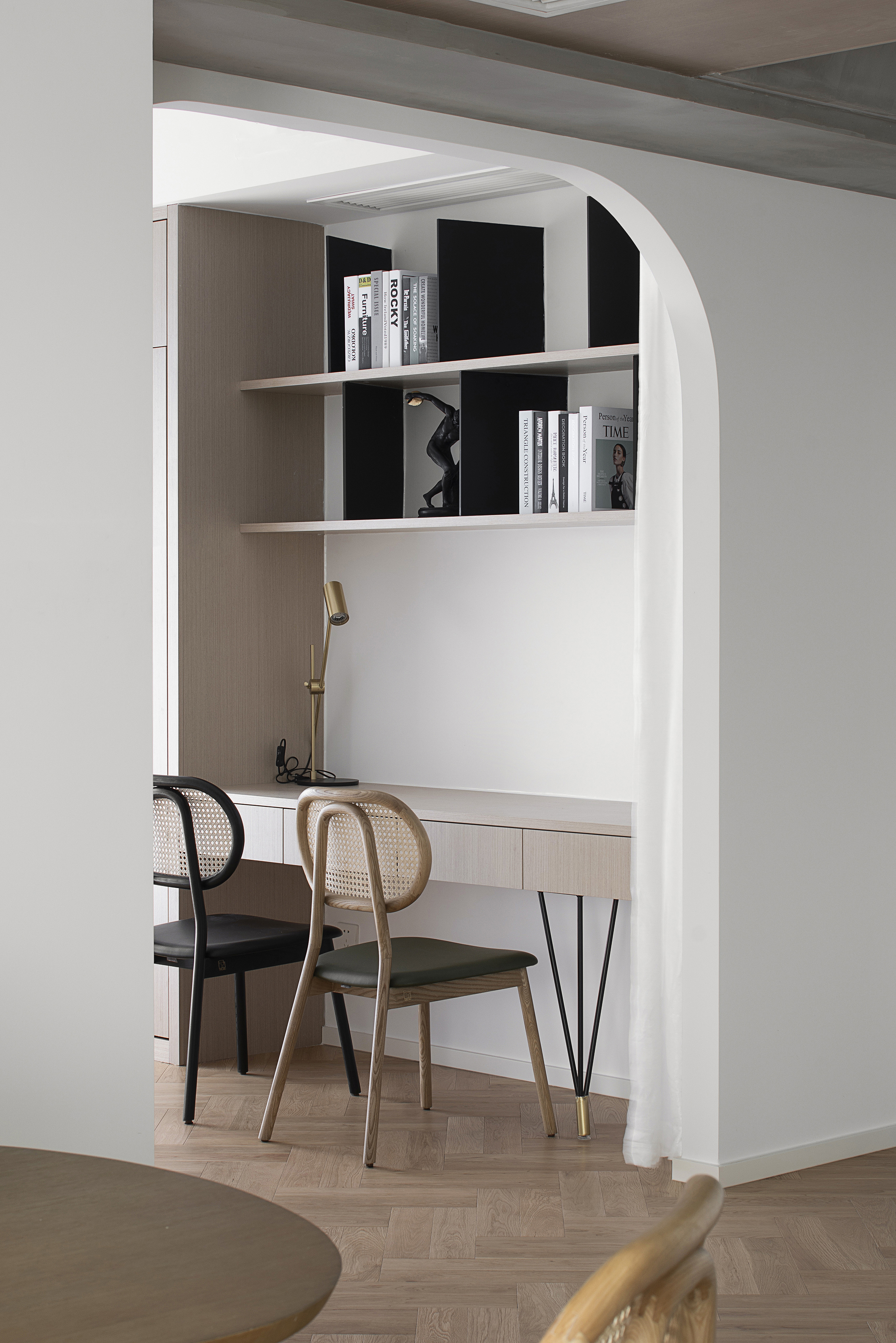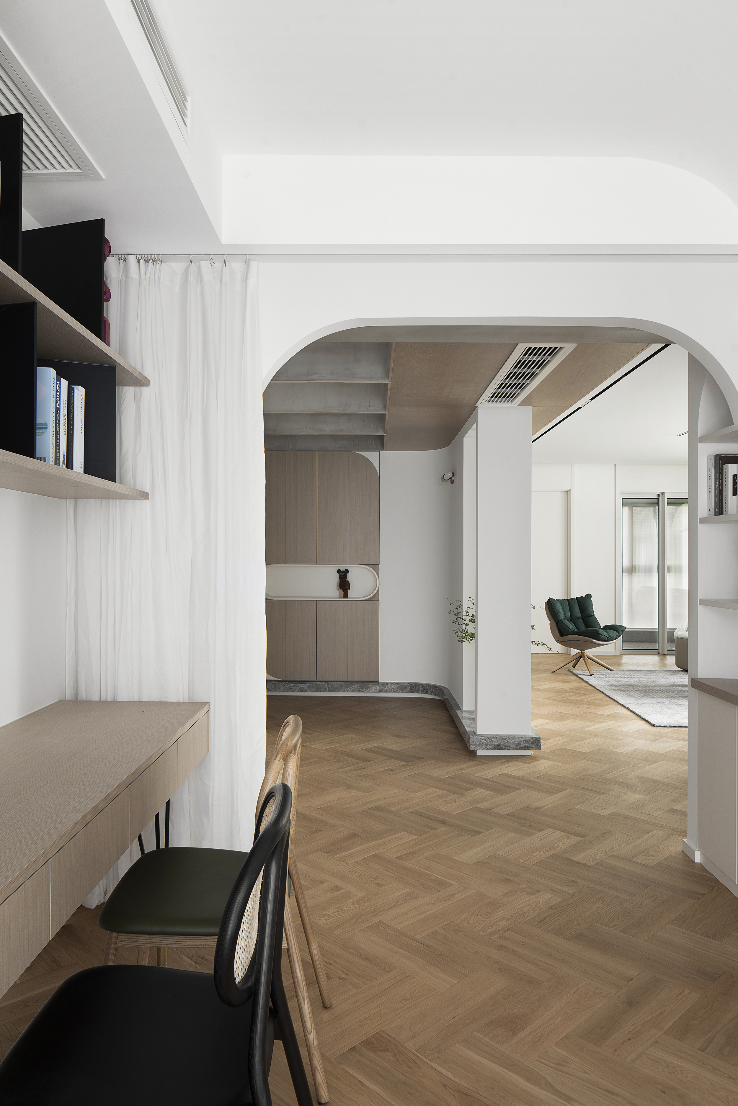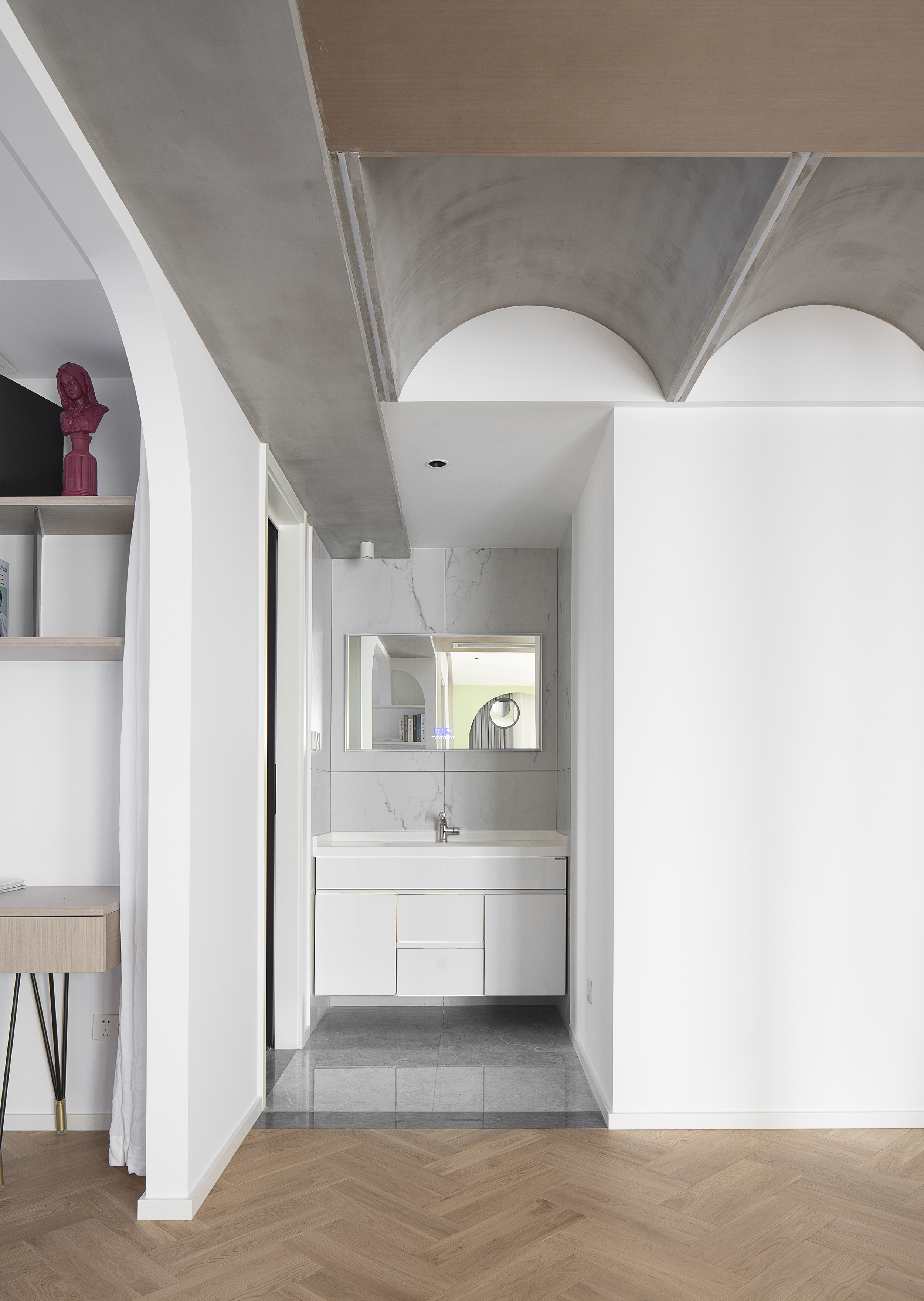 空间意境:运用了一些圆弧的造型来提升空间的柔美感,用自然的结构去形成体块感。