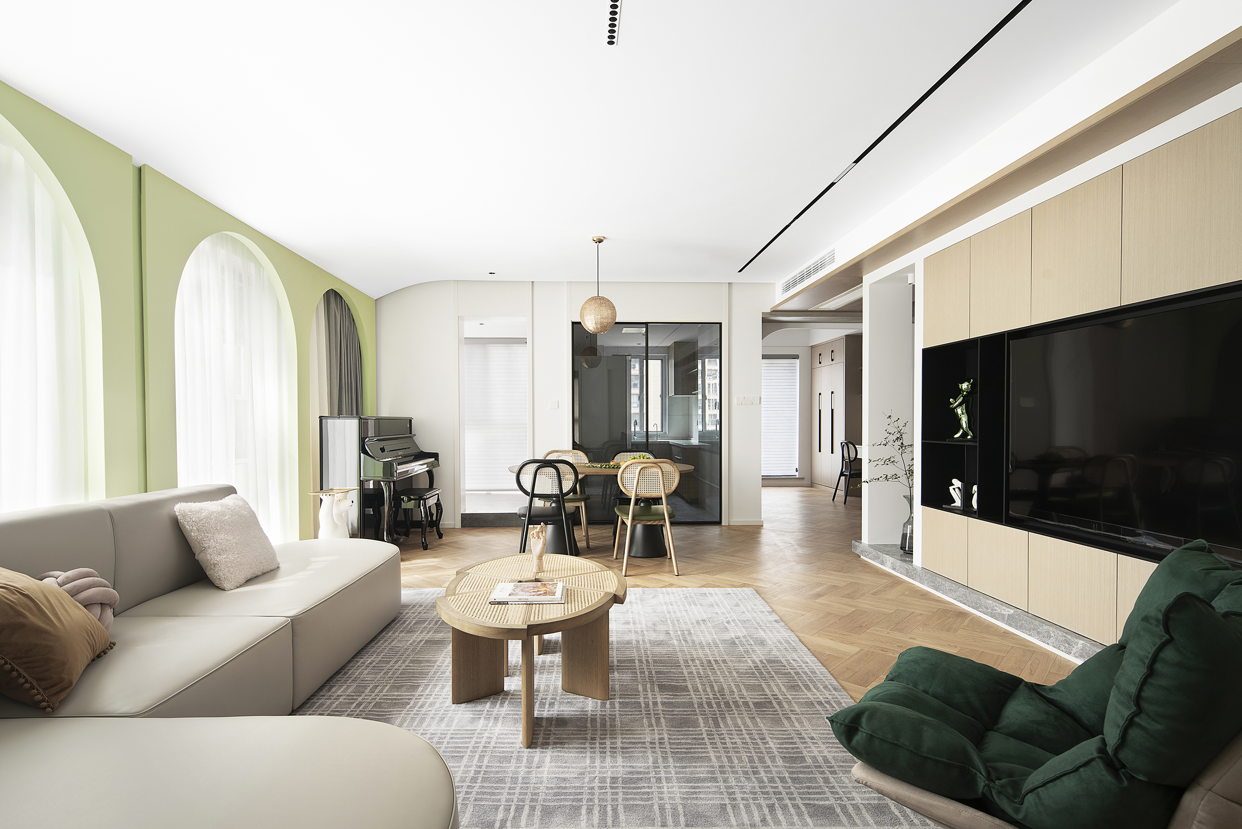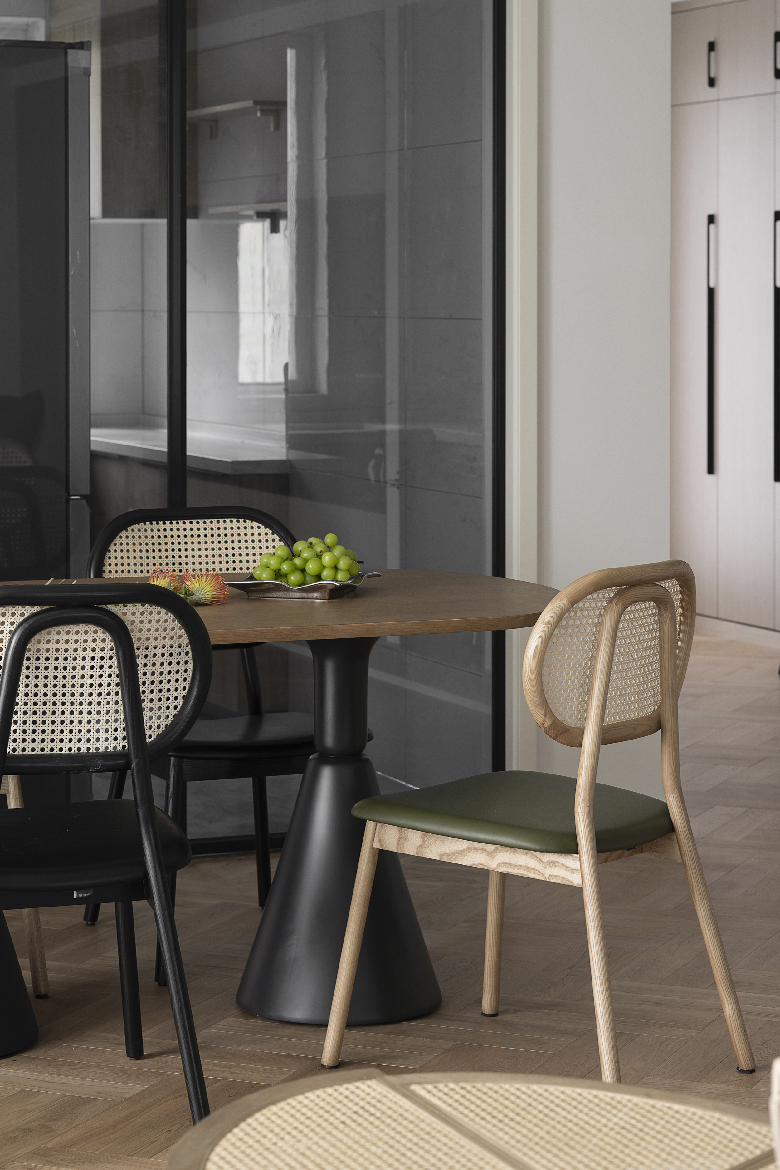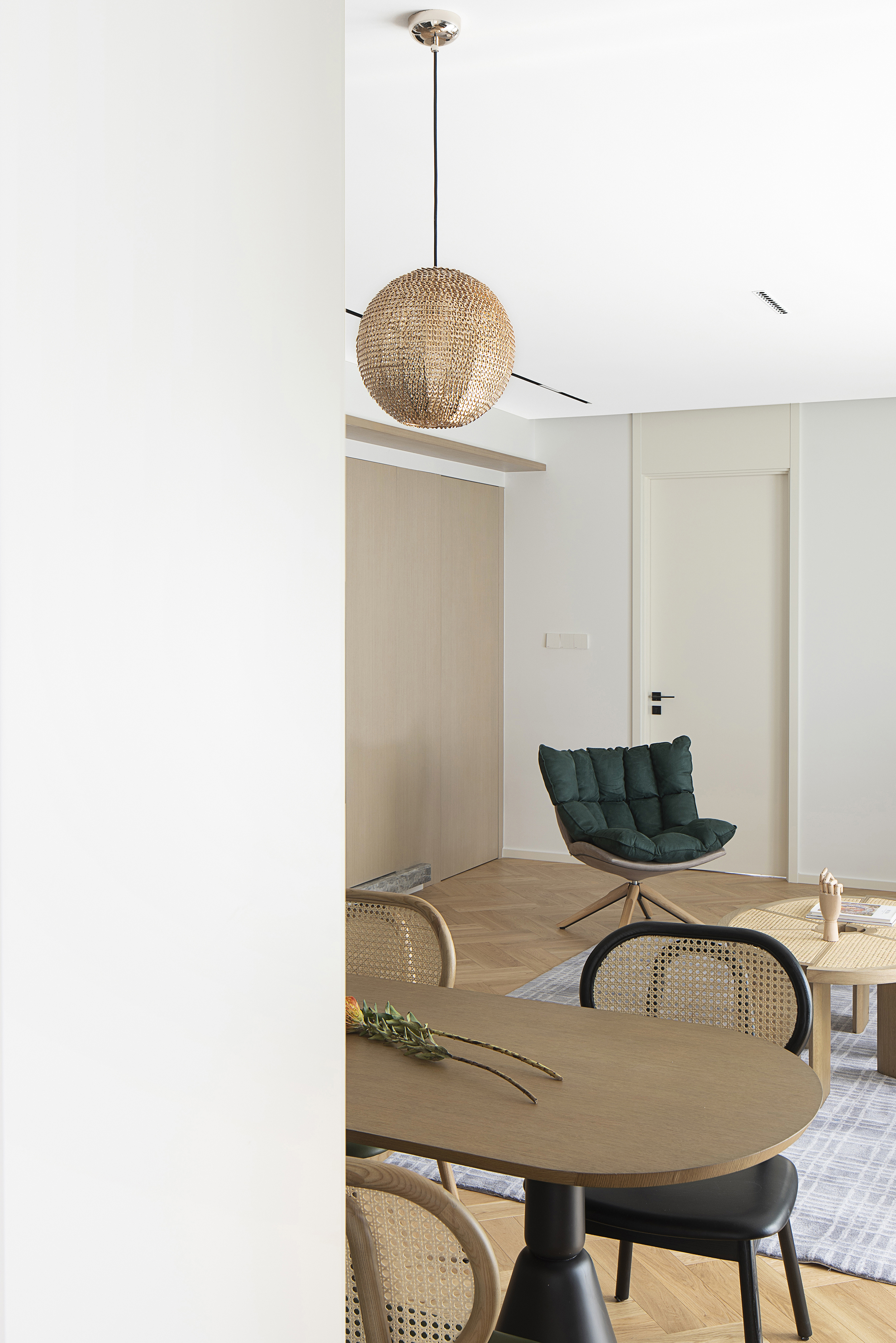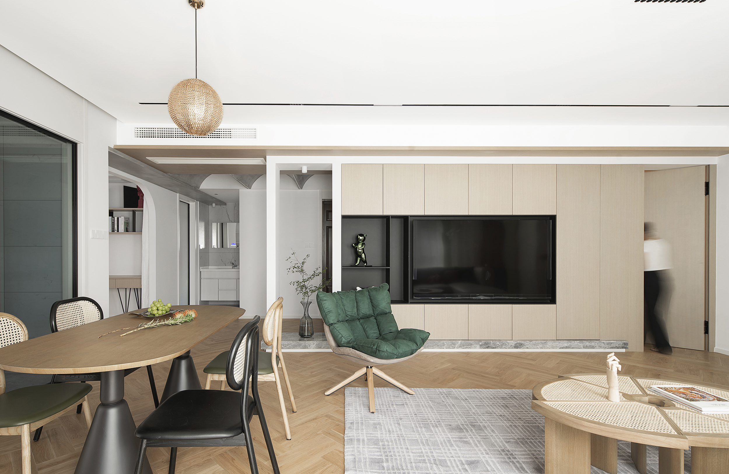 设计上的思路依旧是最大化打开公共空间,门厅,客餐厅,多功能房,休闲阳台,当所有区域在一块打开后又容易乱,所以我们在此基础进行了空间的区域划分,通过一些手法,达到都打开做大空间又不让其太乱,太杂。 设计也没有纯粹的什么风格,更多是一些元素跟审美调性的植入,每处内容都需要有点呼应,达到想要的整体感。 设计造型上用很多结构去设计,不做单独的各自背景,都是在原本这个建筑结构的基础上,进行解决痛点,跟优化结构的体块美。 生活不过是,一日三餐,一年四季。