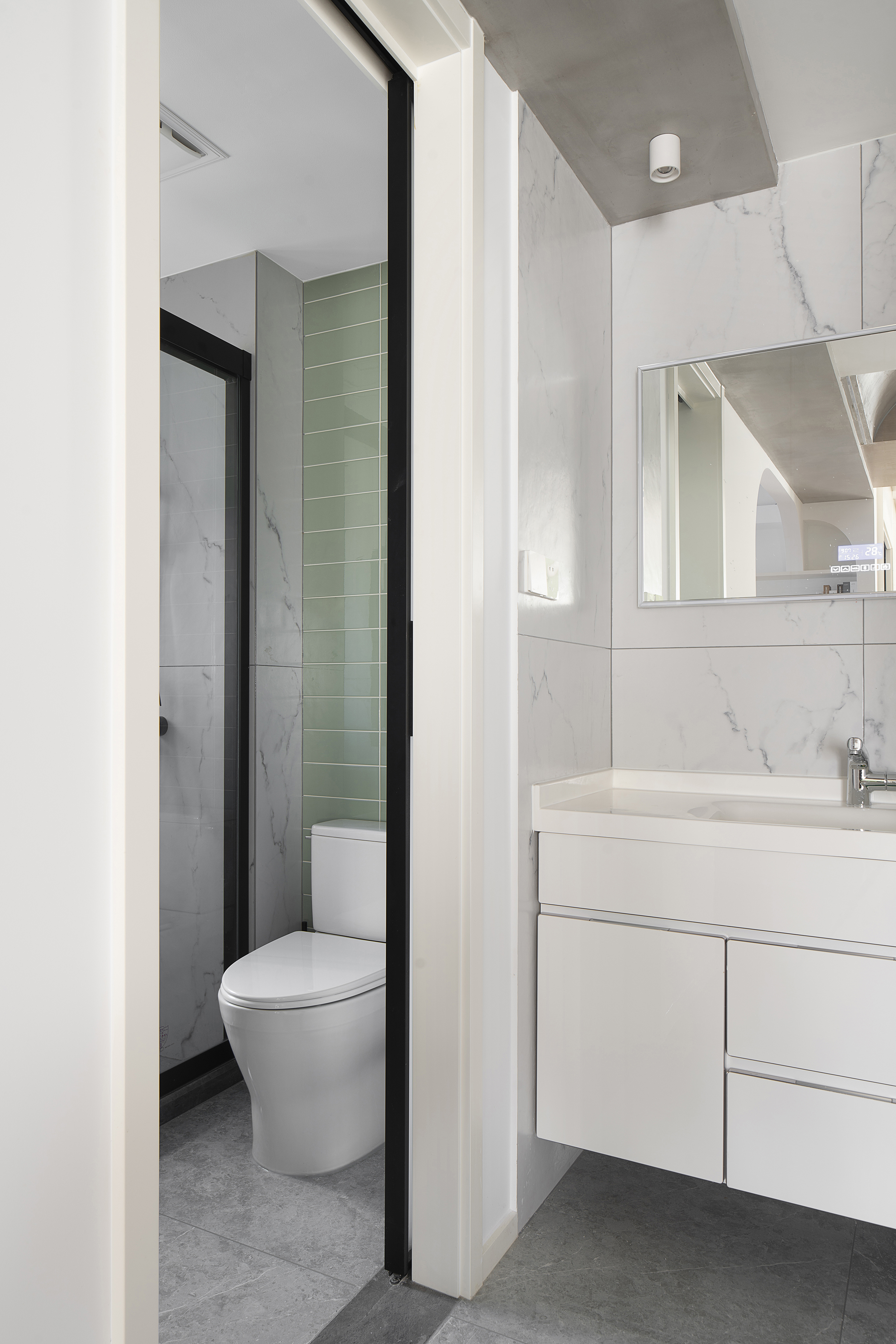 坐便器背面呼应着餐厅的跳色做了绿色小砖背景,增加一些小趣味性。