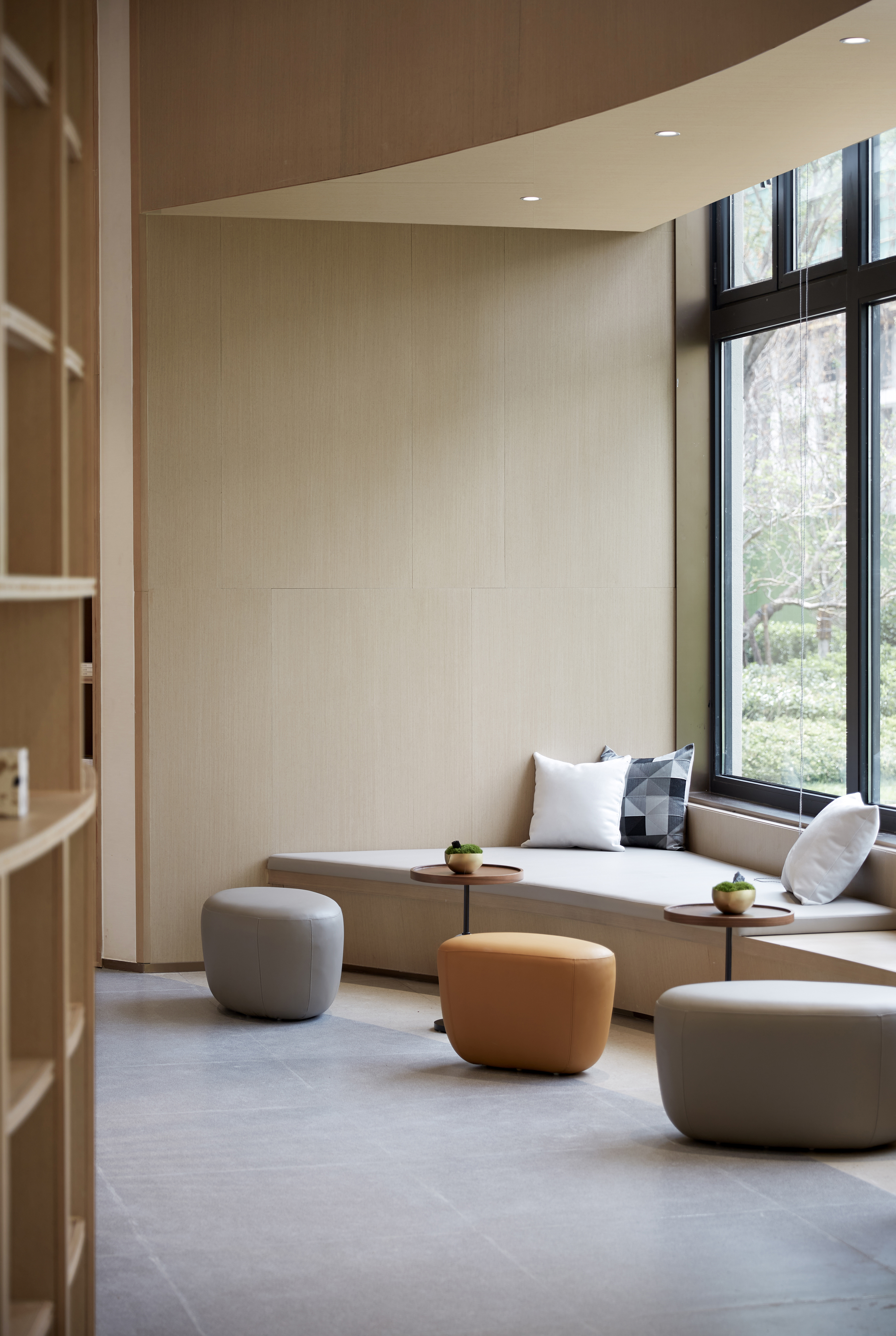 设计选材:浅色的基调、白色与木色的结合,取自自然界的流畅曲线,奠定了空间舒适与亲和的氛围。