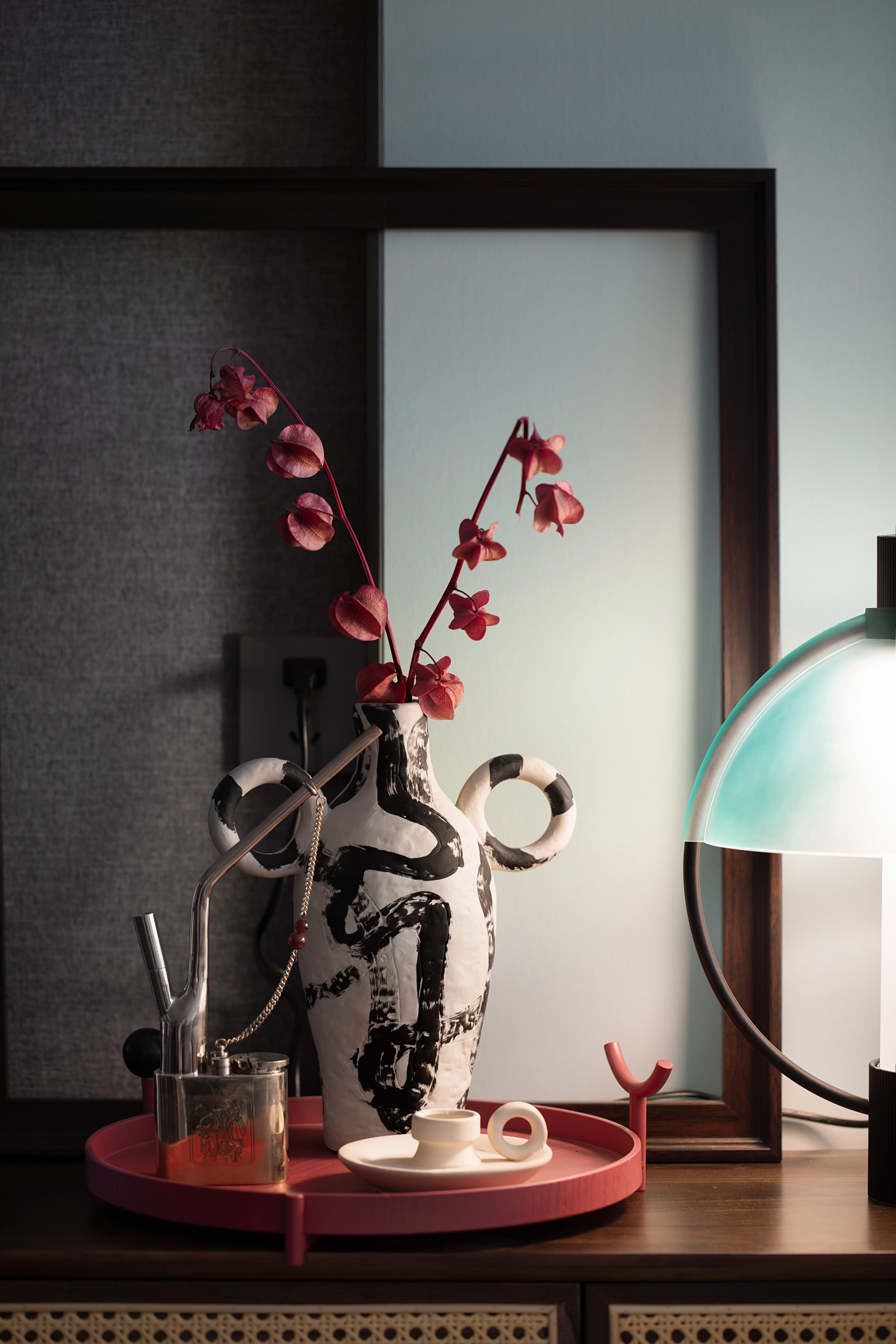 设计选材:选材中采用美丽的再生木材、竹编设计,与低碳金属、理石的碰撞,加入复古概念设计,将戏剧人物与国潮元素融入装饰物件设计中,给予人们带来轻松趣味性的同时又提升使用感。