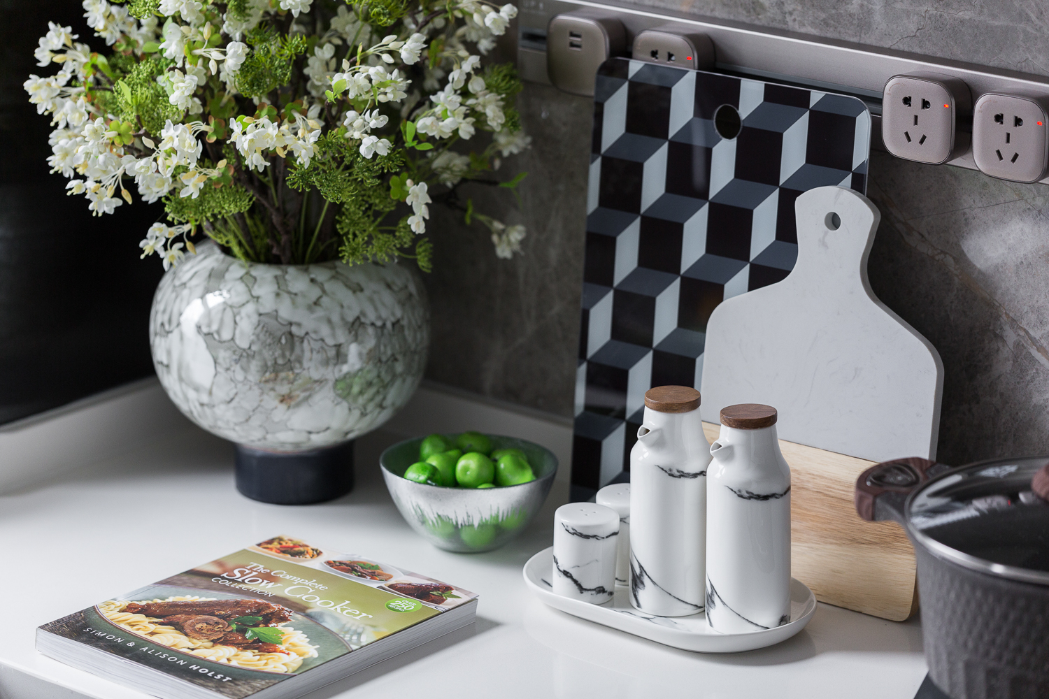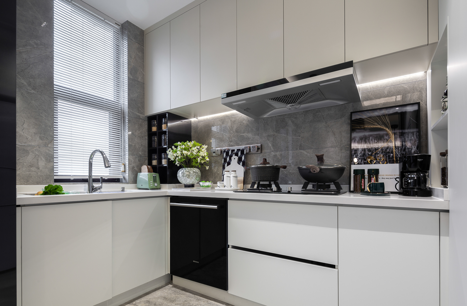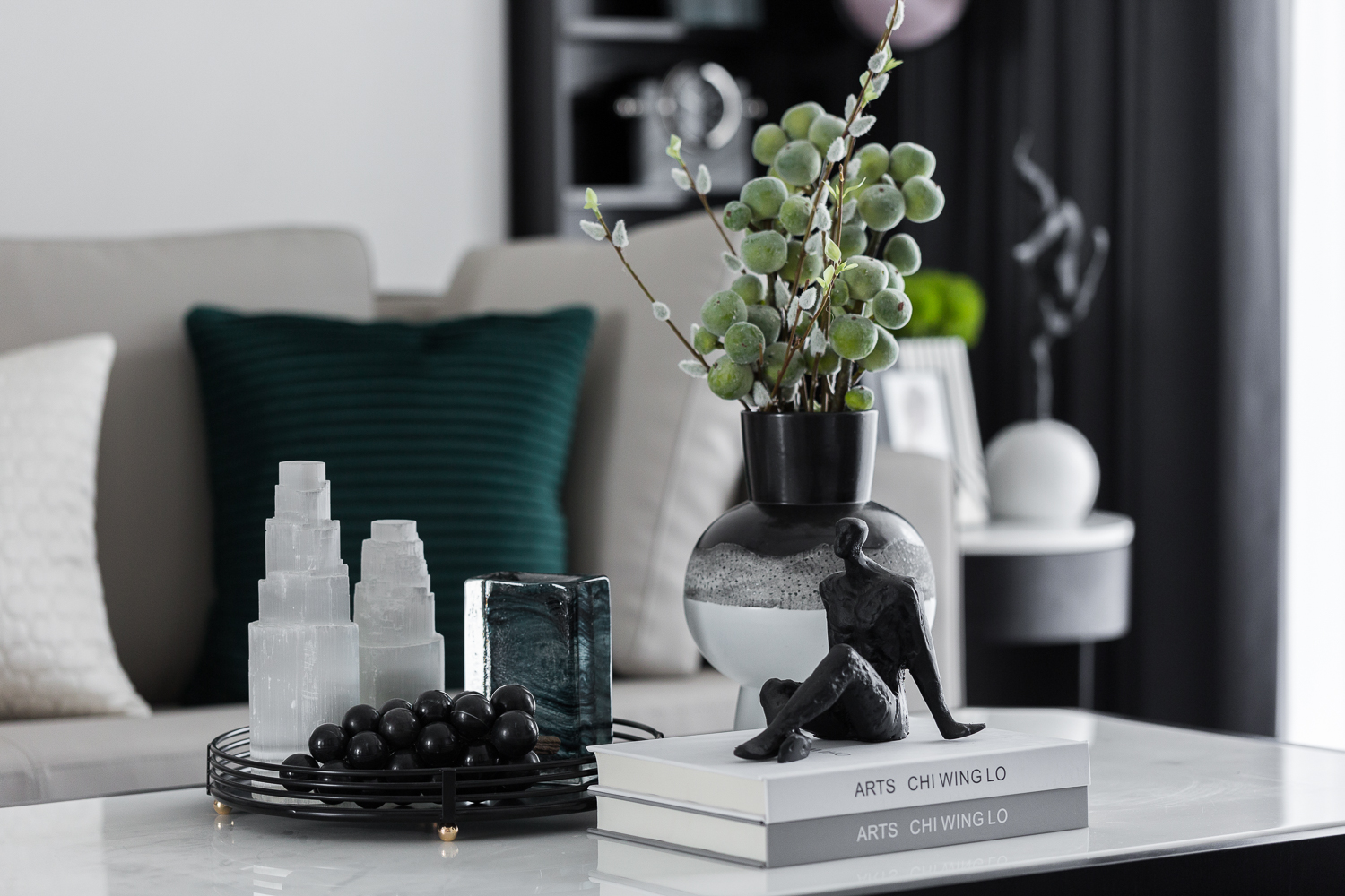 饰品采用树脂翻模表面大理石转印的形式,采用可实用的器具,样板间使用功能结束后可正常生活使用。