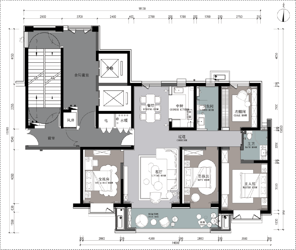 在户型改造的基础上,规避比较小的第四卧室,改造成更具备使用功能的衣帽间。