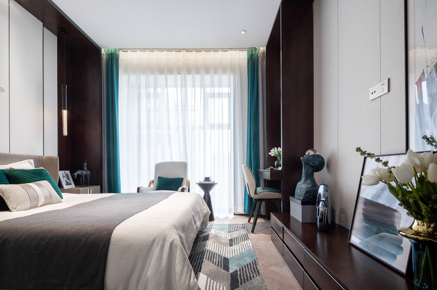 当户外的绿色延伸至室内,清新的空气弥漫整个午后,自然的色彩是生活最美的调节剂,让人与自然无隔阂的相拥在一起,自然的符号和现代的线条融合在一起,打造绿色小城的美丽篇章。