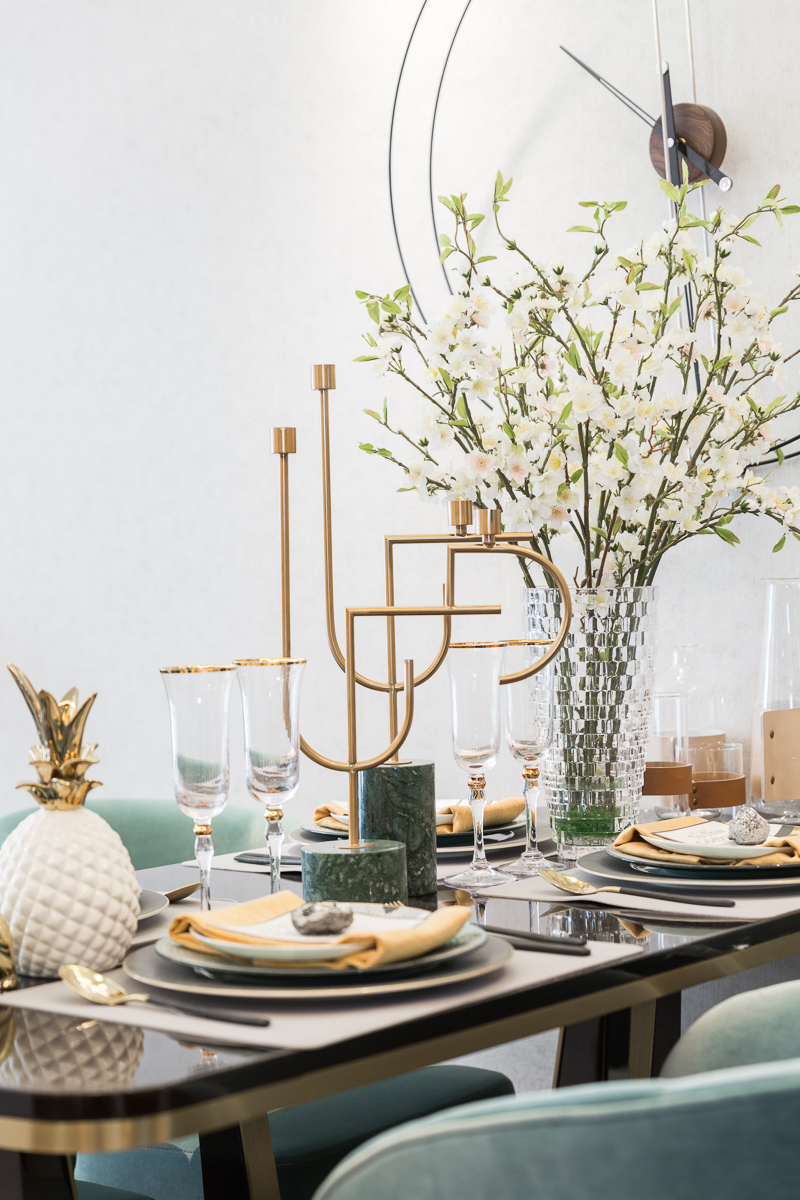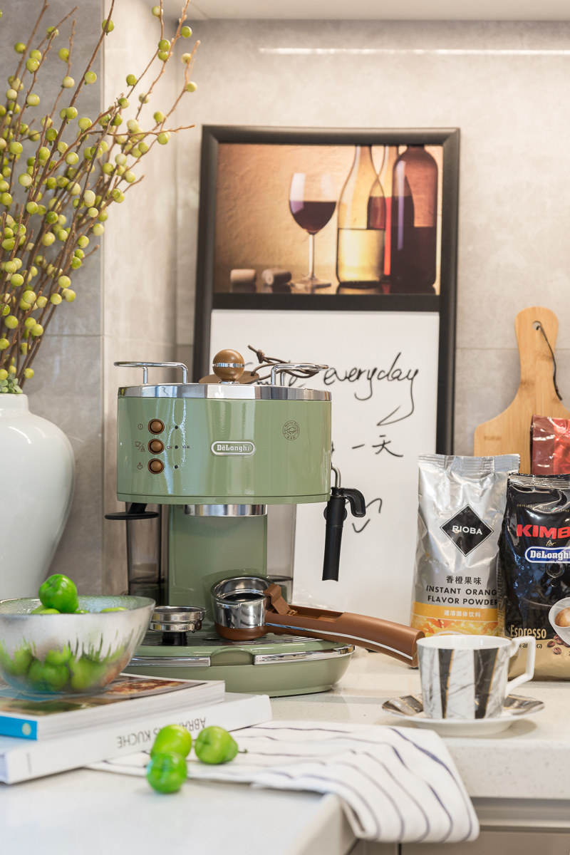 黑檀木纹贴面、人造大理石、树脂的摆件,无一不体现选材的经济性和低碳环保。