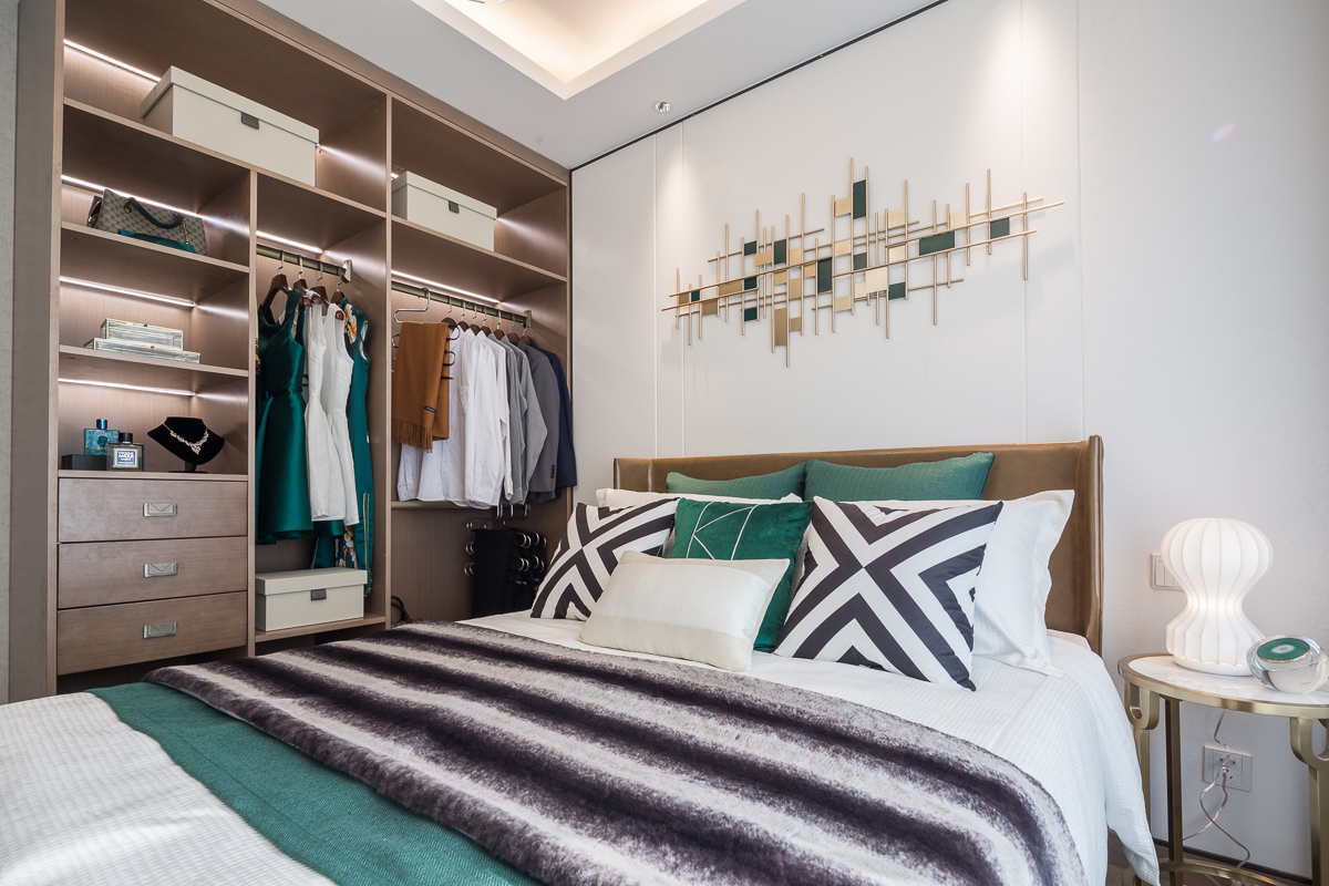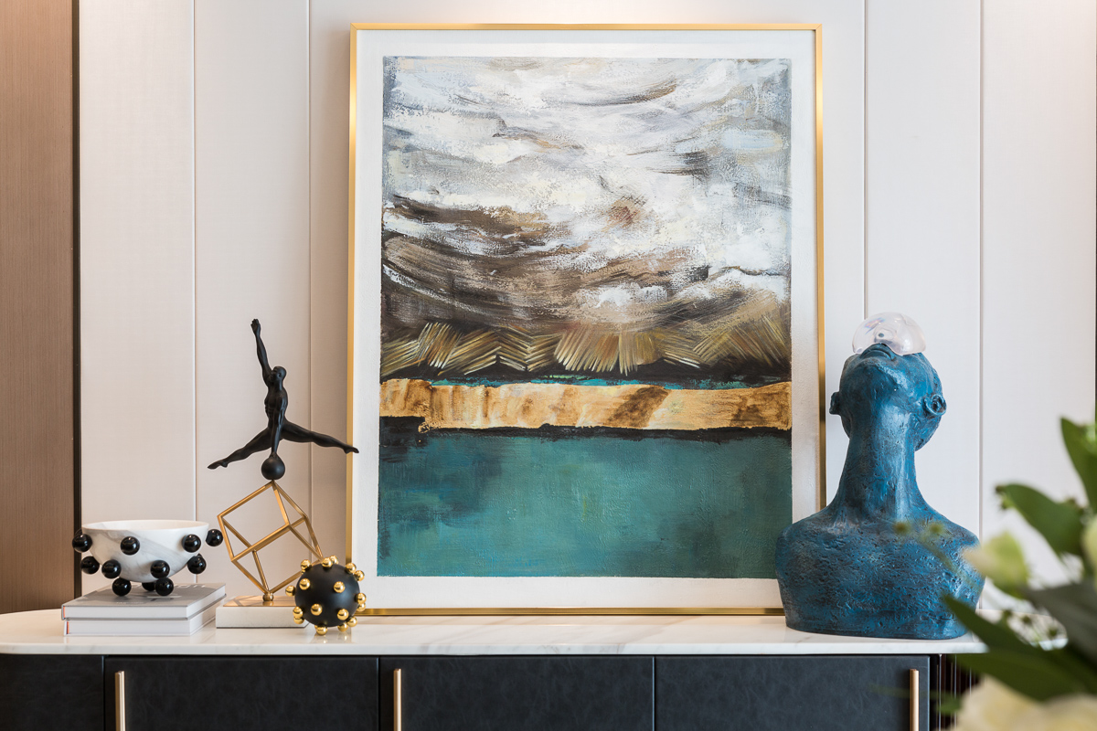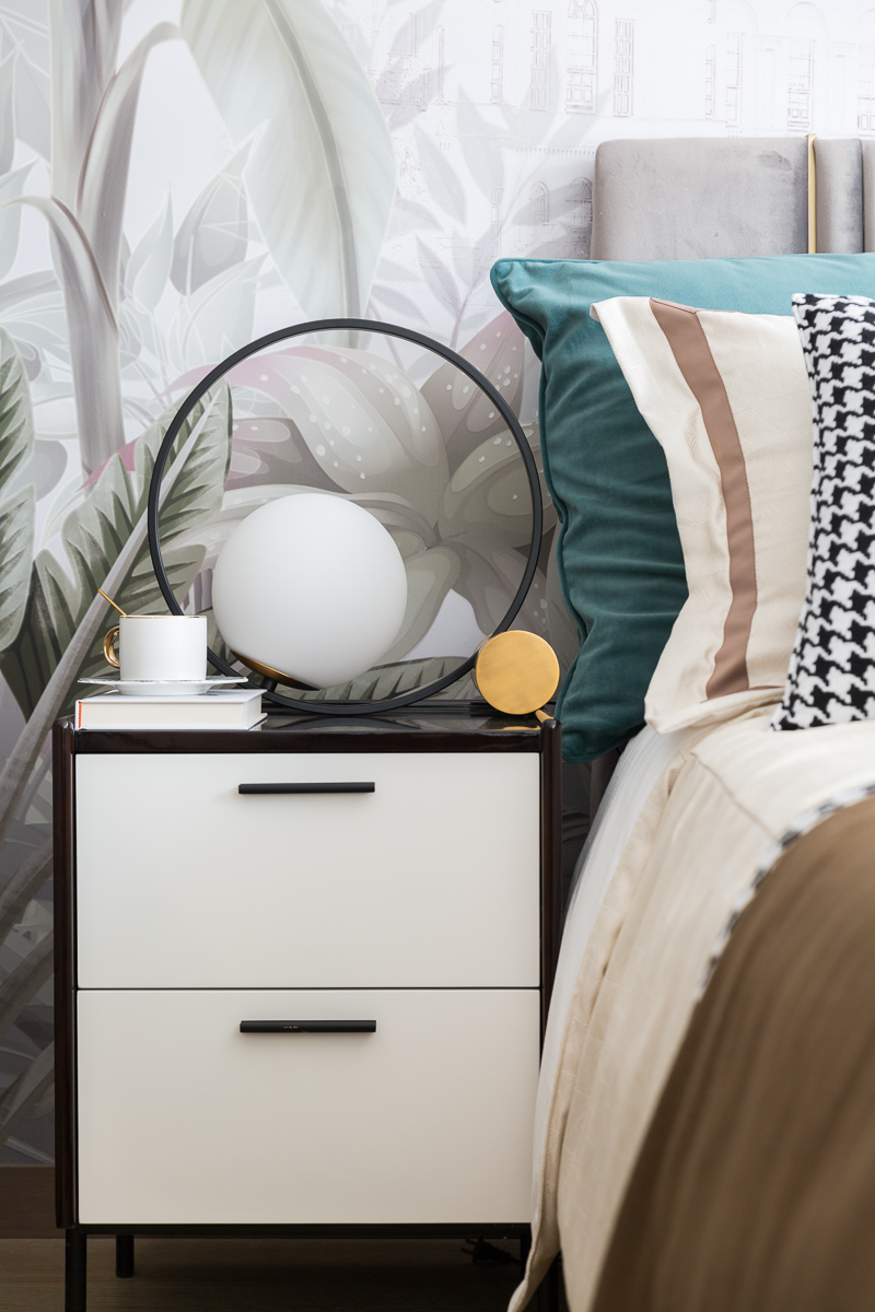 海风拂过松石绿的窗帘与轻纱,让浅色调的空间更添一分清新舒适,简约的线条勾勒之下,体现出整体的时尚感。冷色调的松石绿并没有让家失去温暖,反而在衬托之下使整个家有了温度。